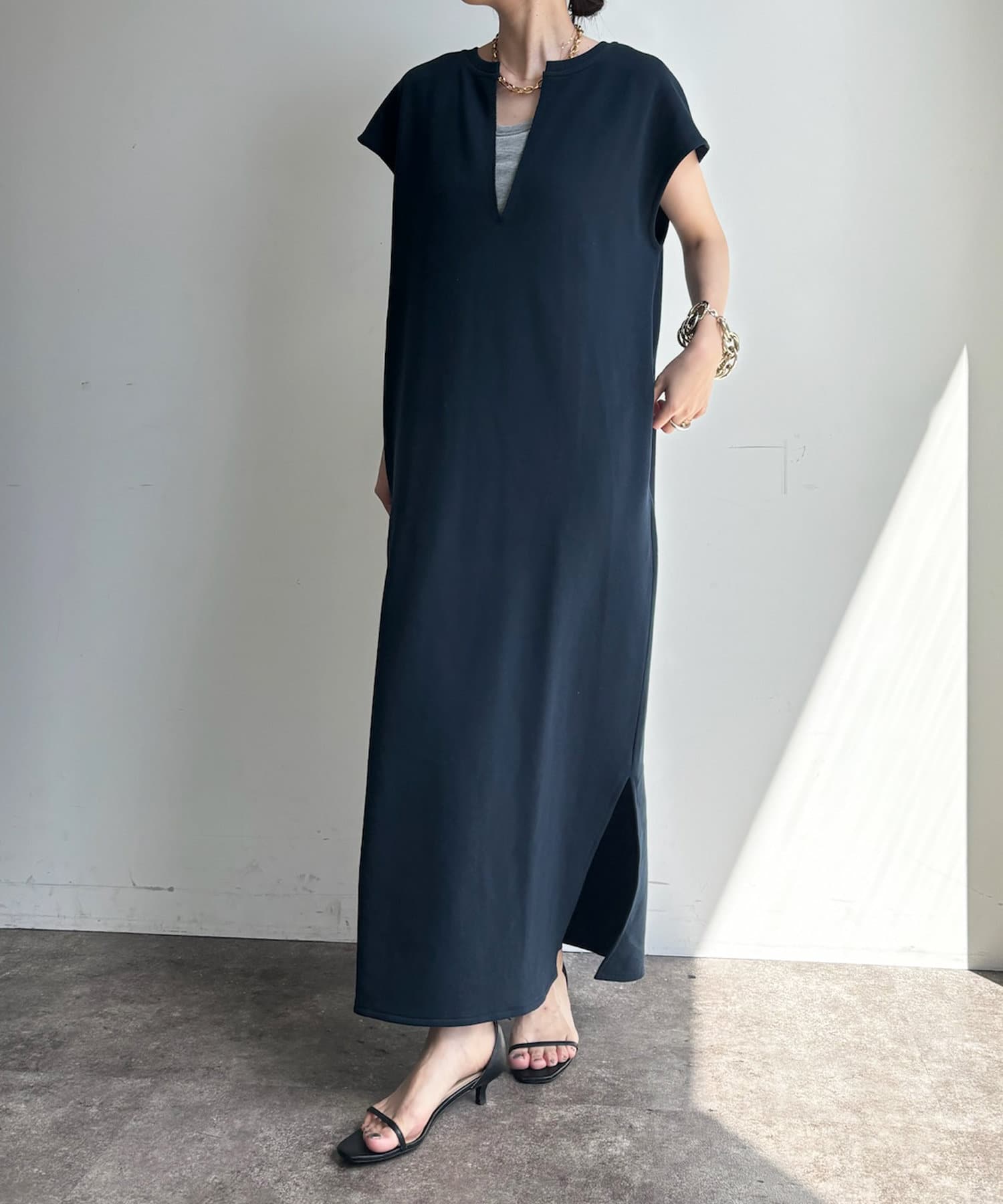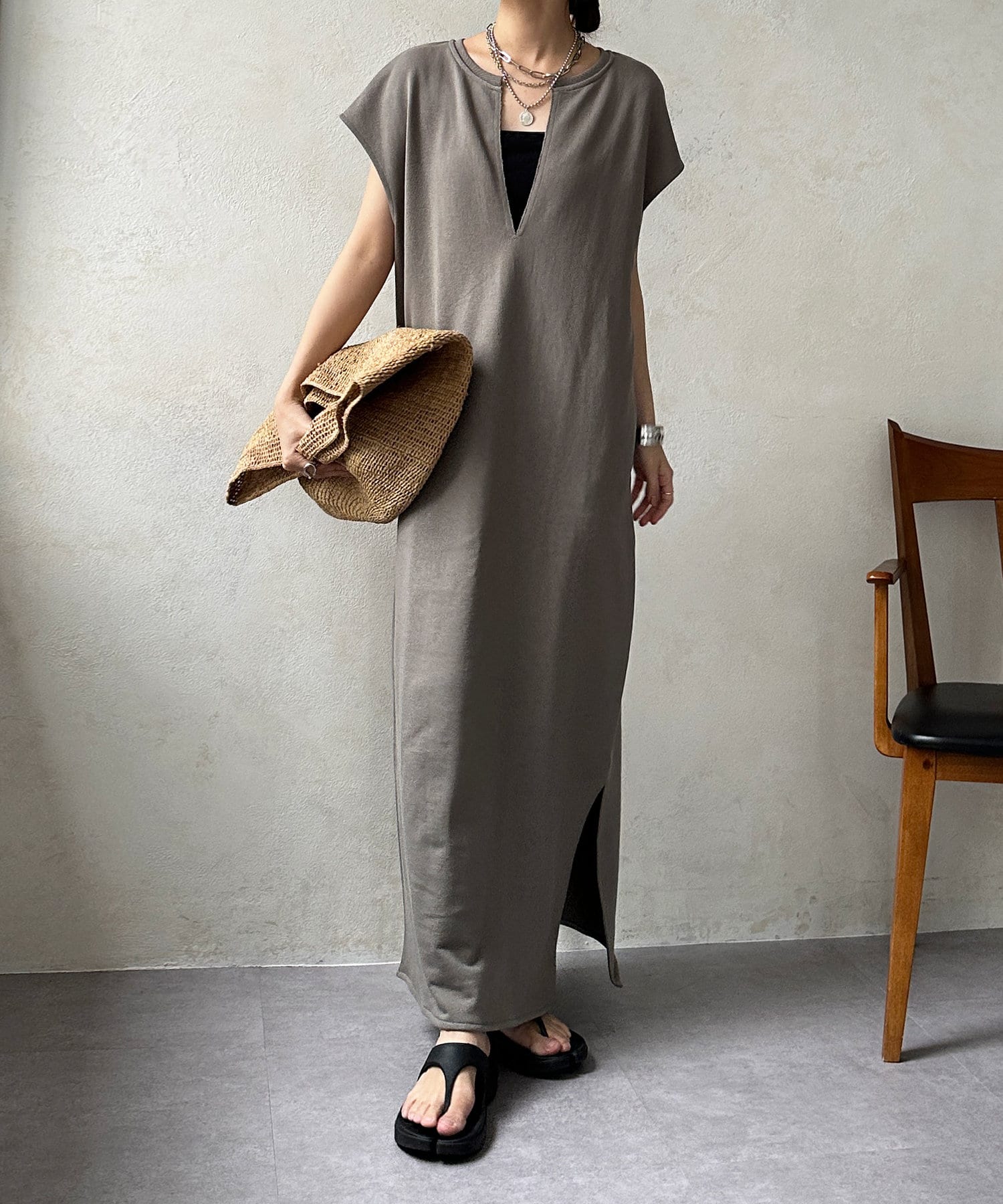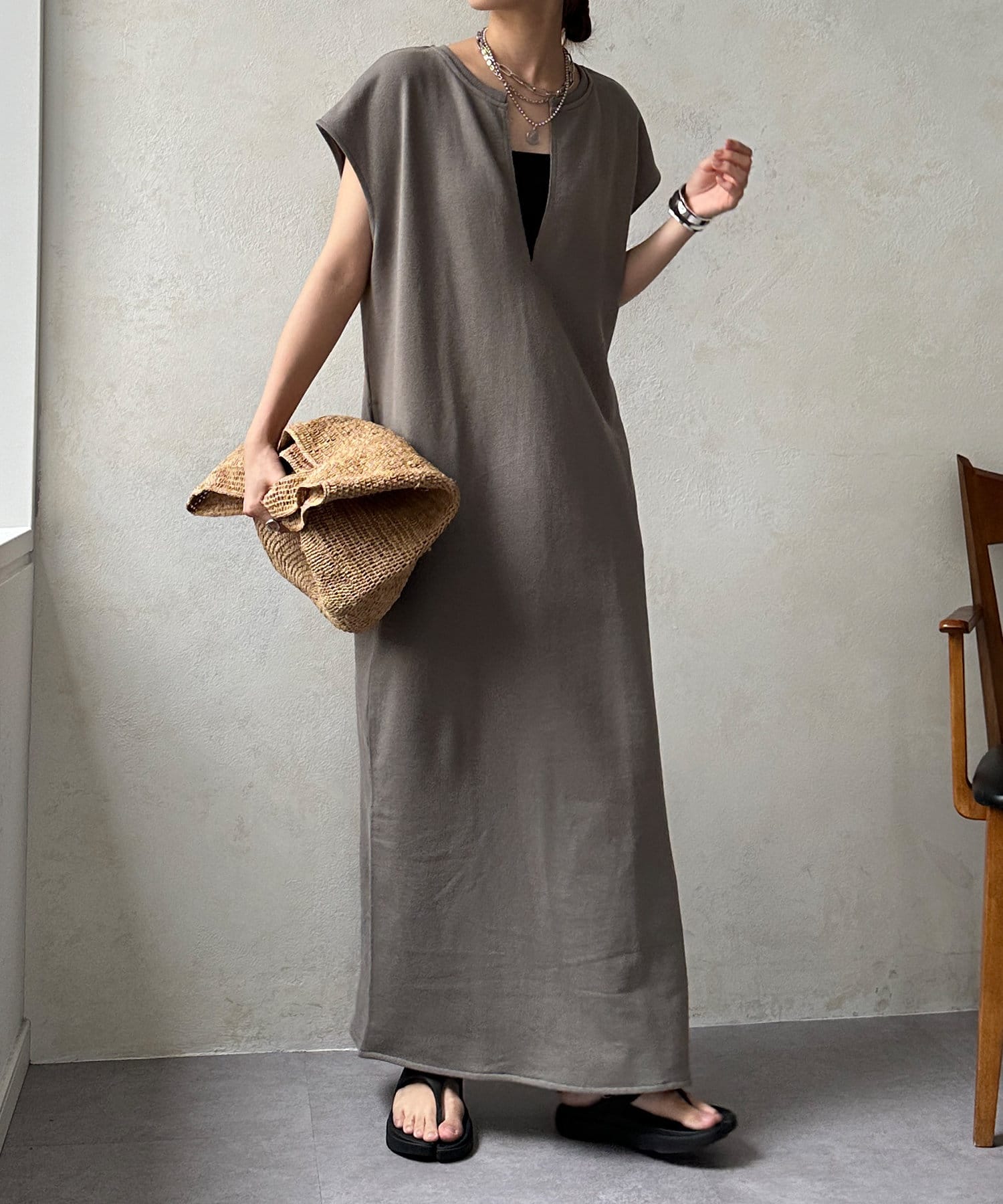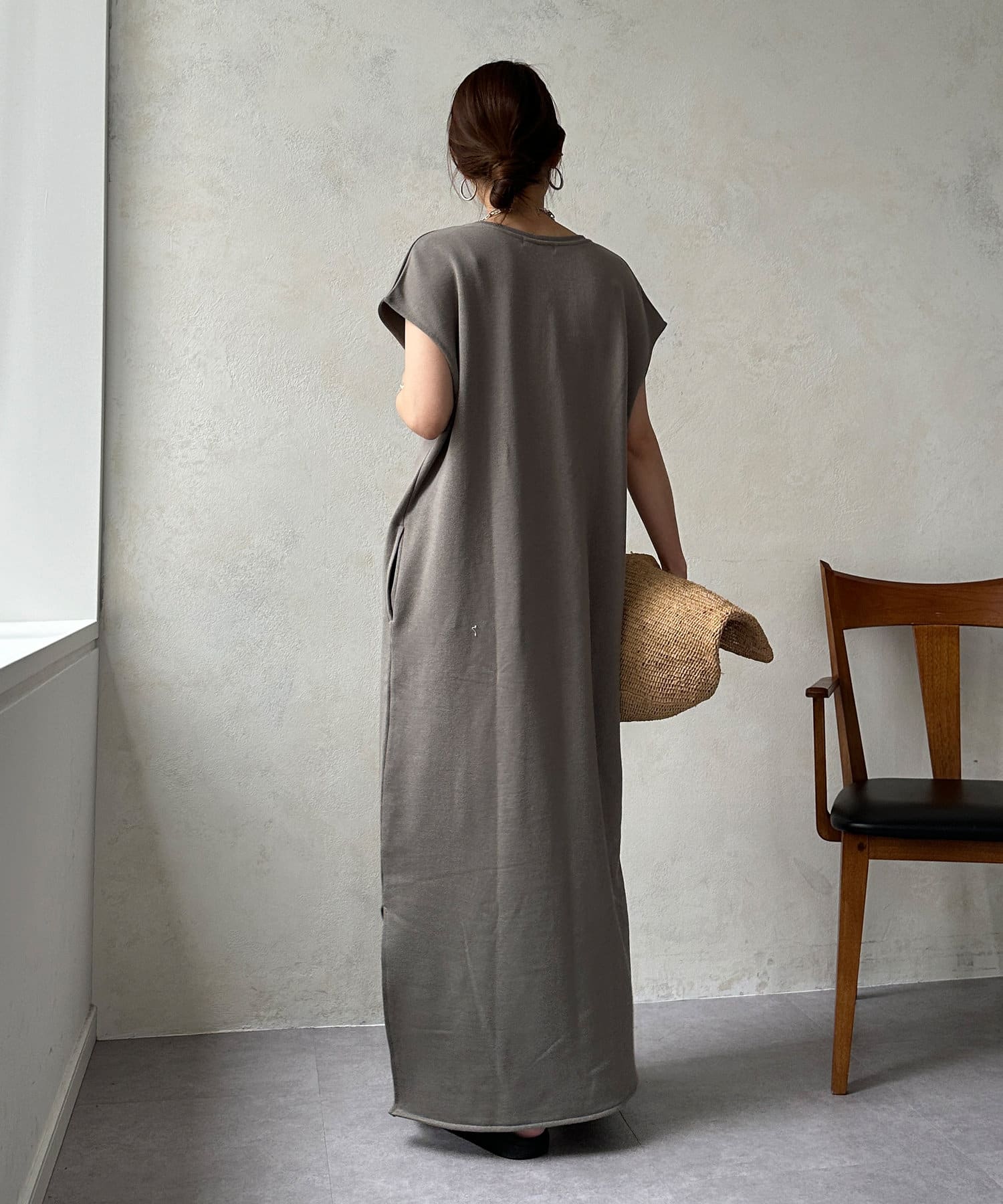 前後2WAYイージーに着られる、スウェットロングワンピース
