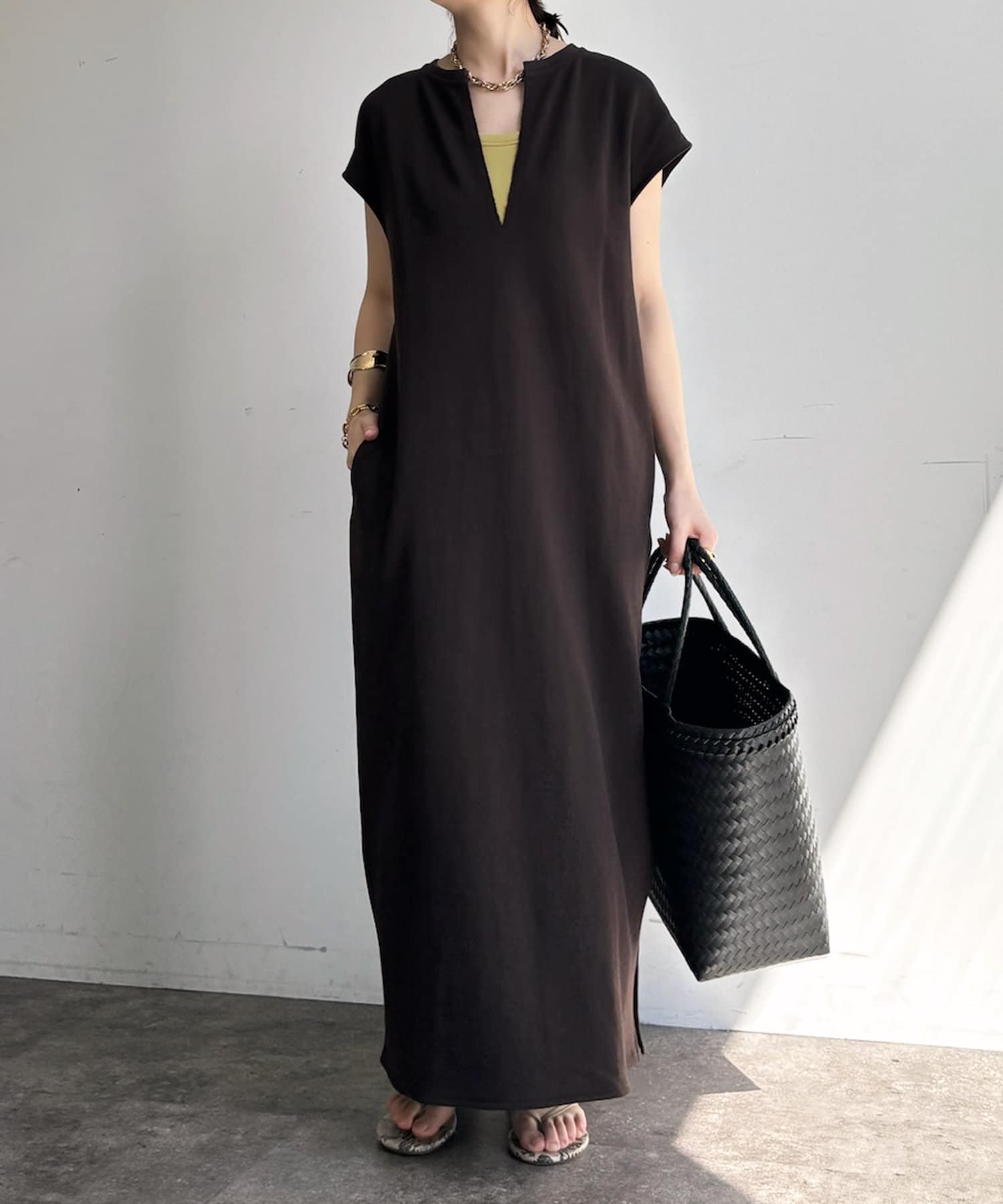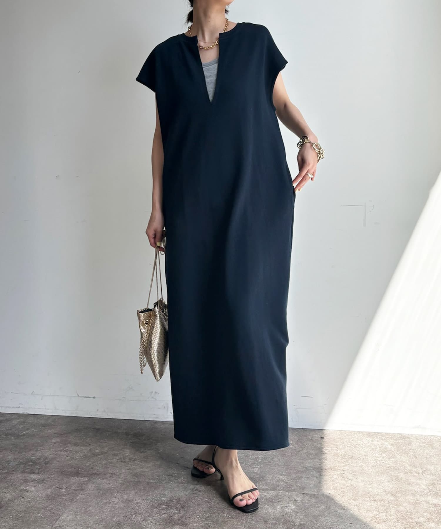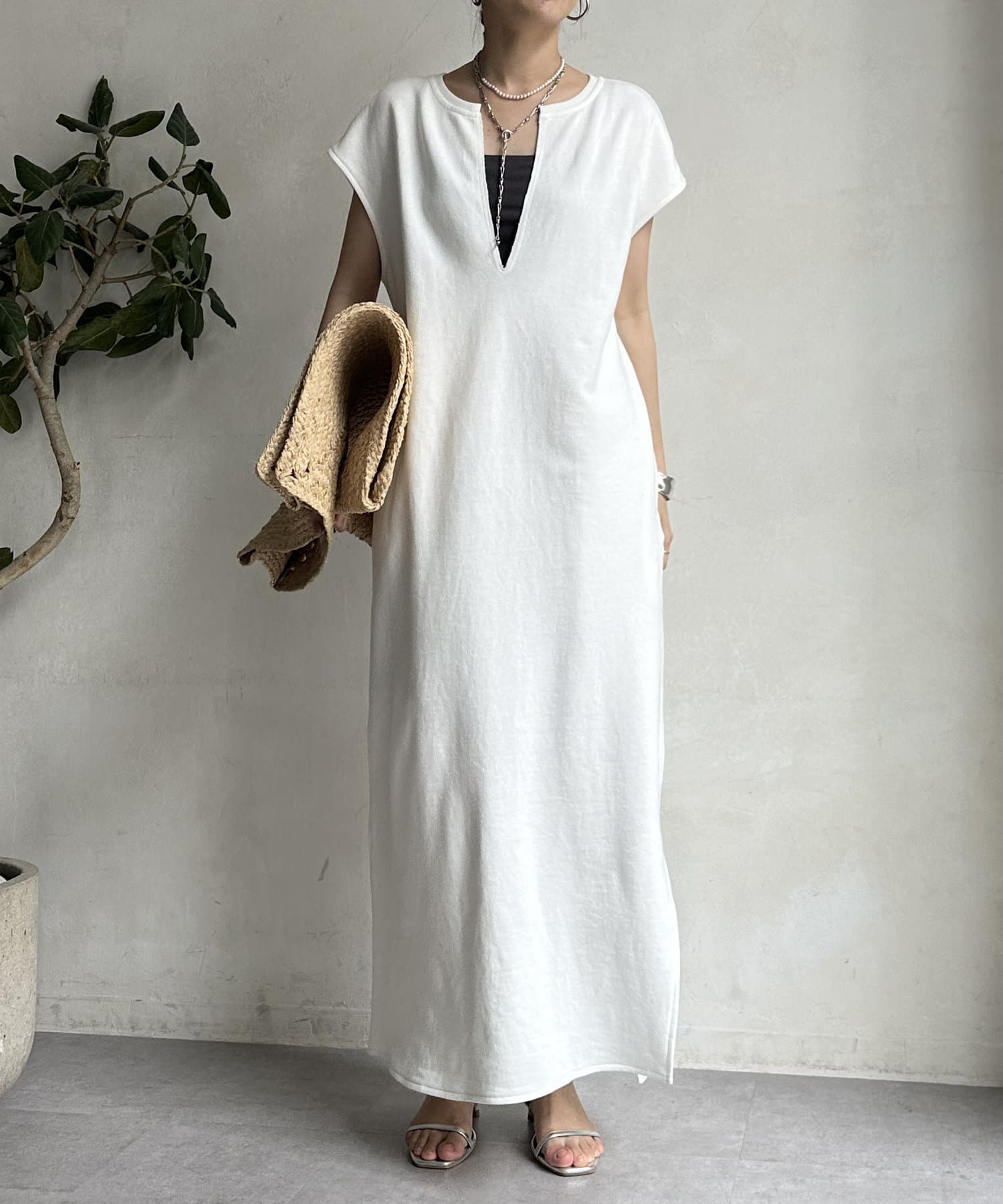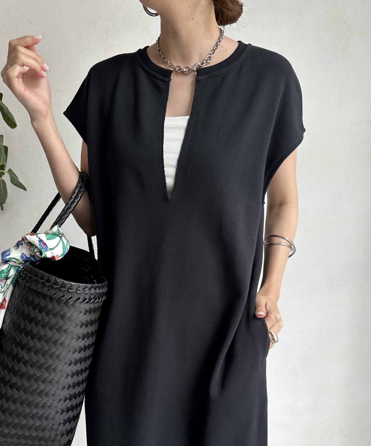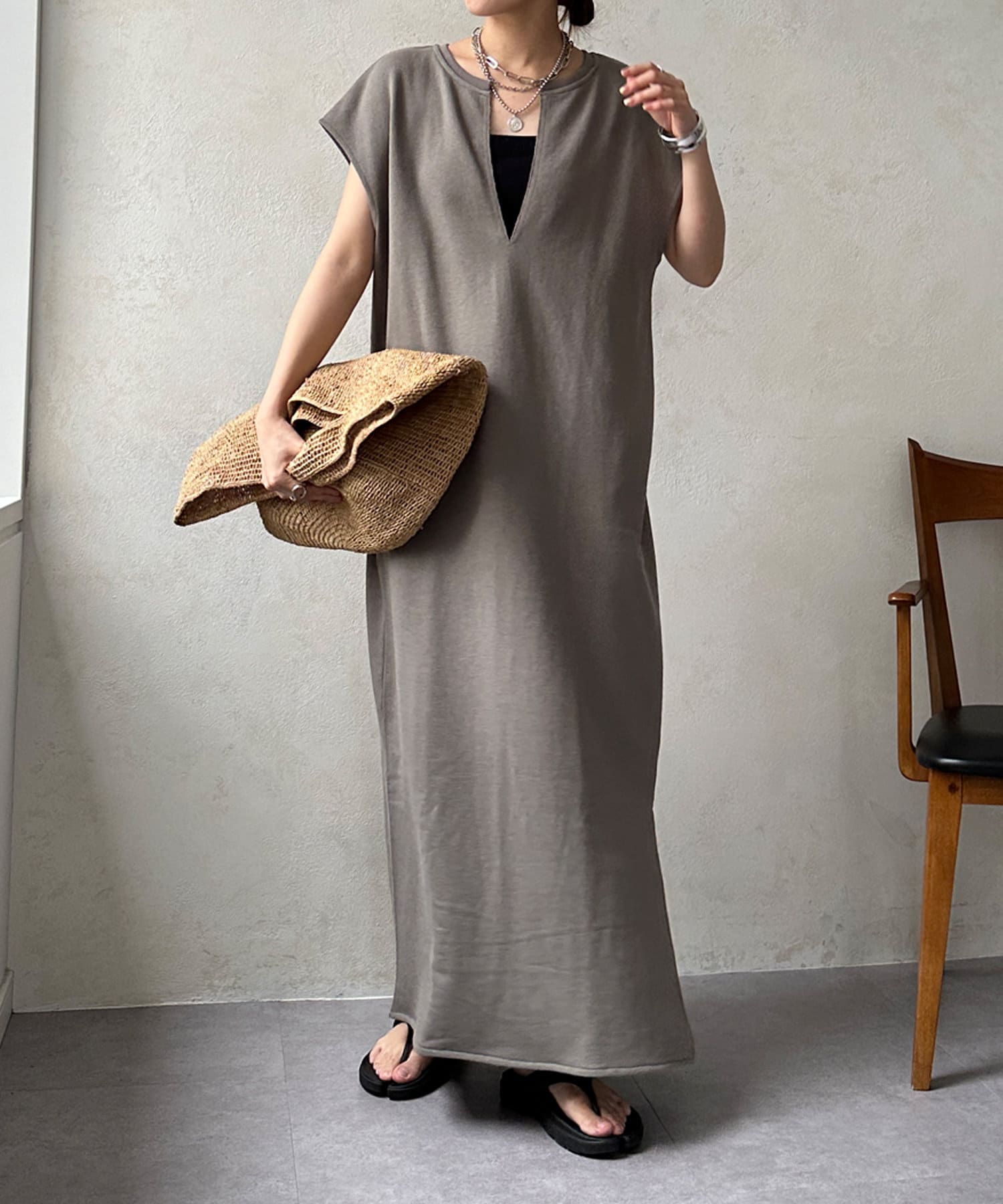 【SAKURA 企画】【一部WEB限定カラー】深Vスウェットワンピース