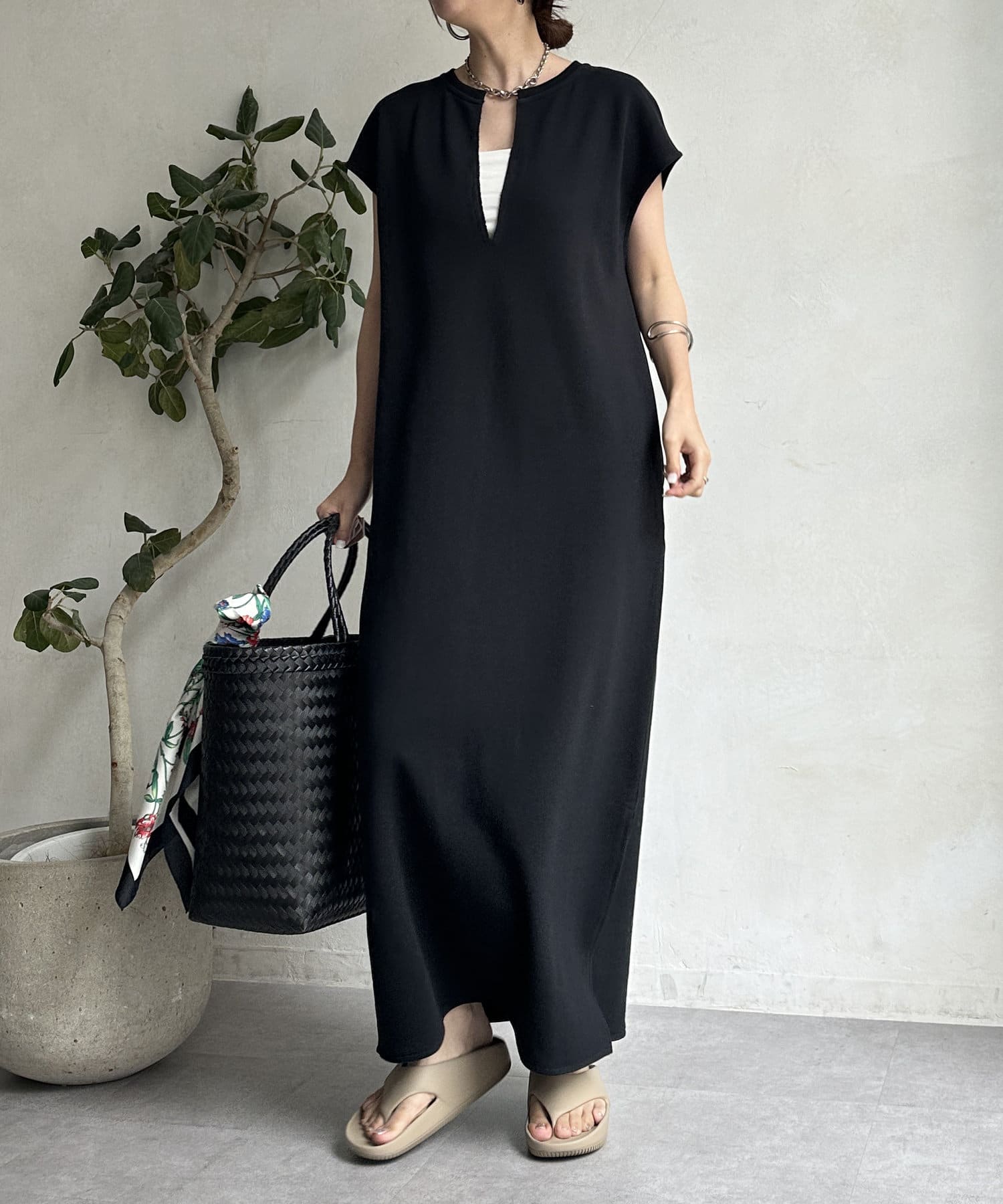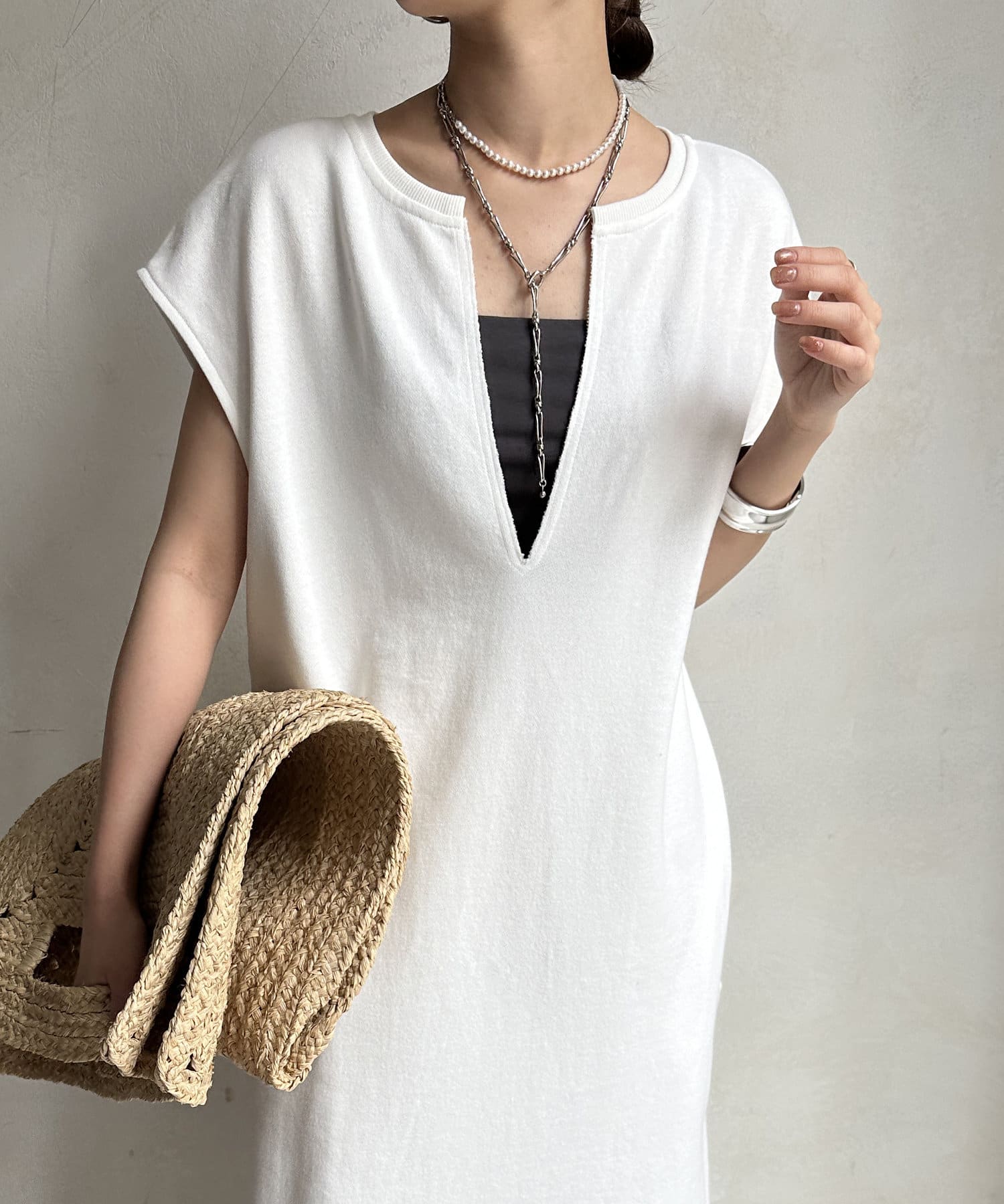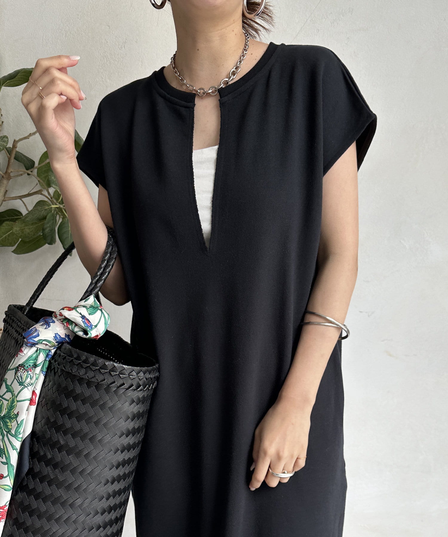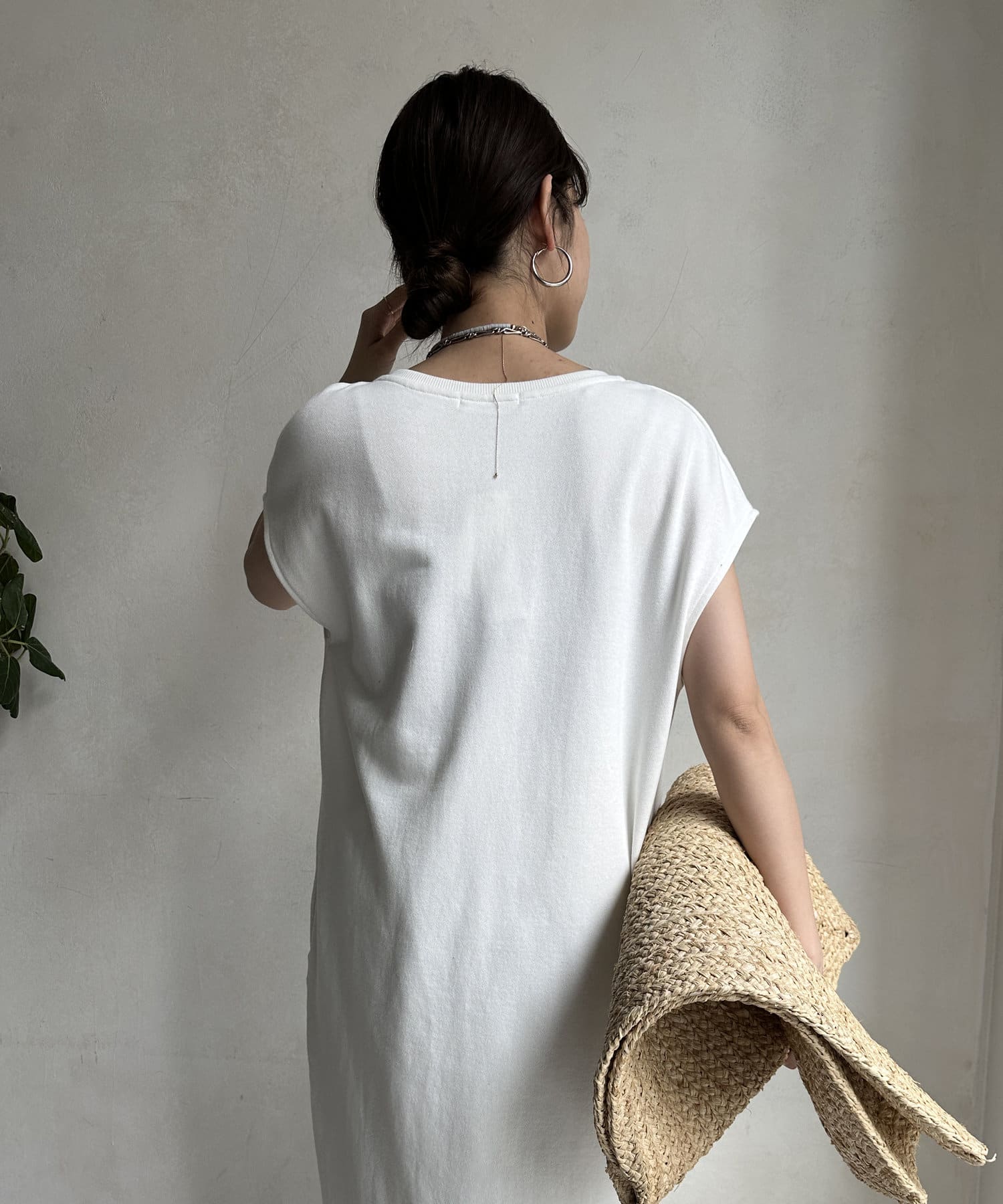 身体のラインをすっぽりと隠し、自然と肩のラインをカバーしてくれるシルエットは、華奢見せ効果をサポート。