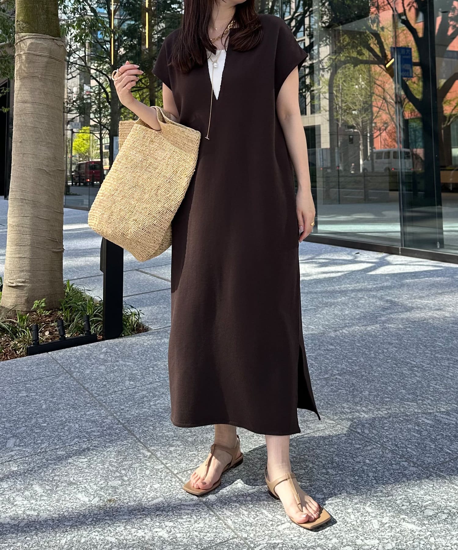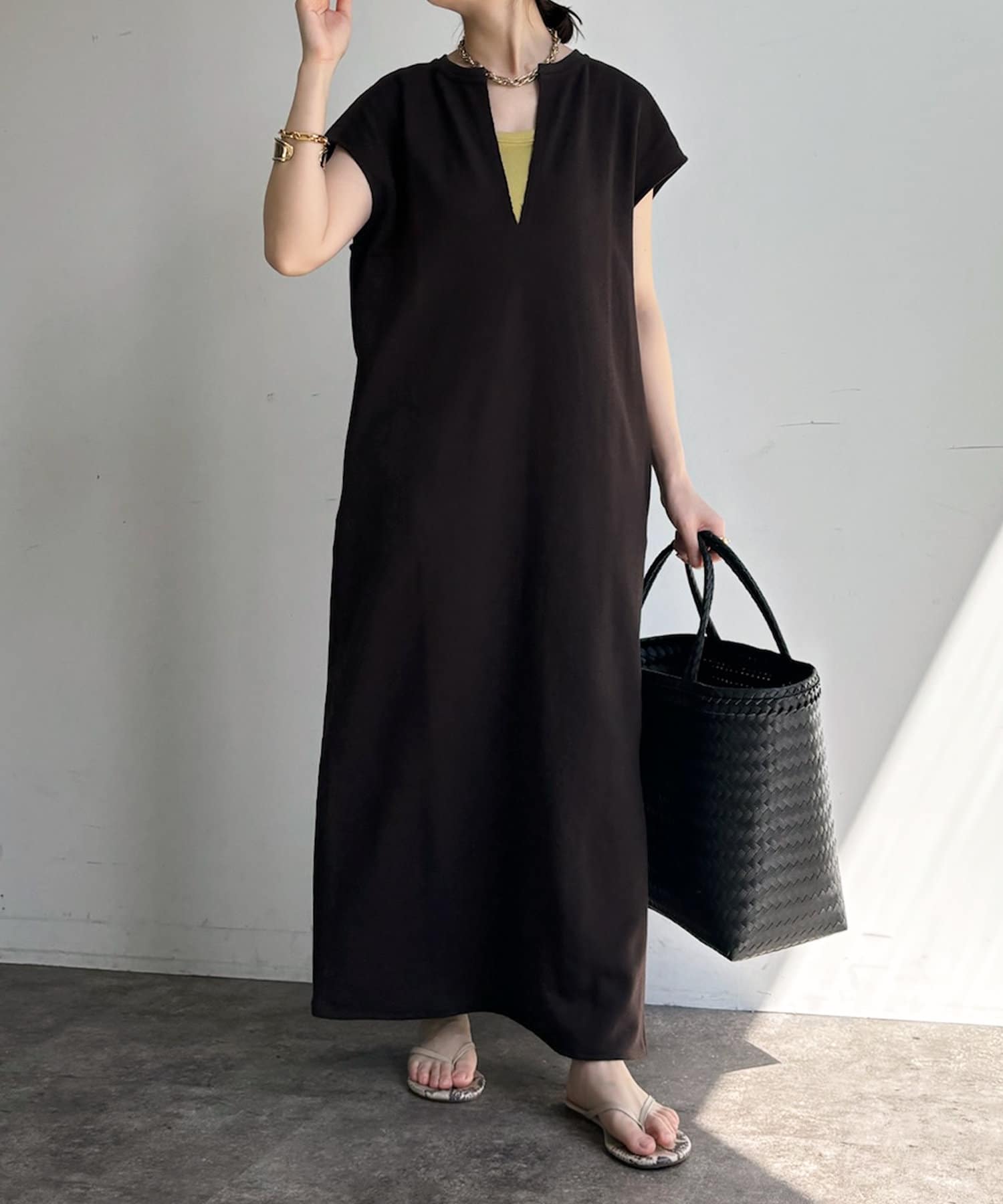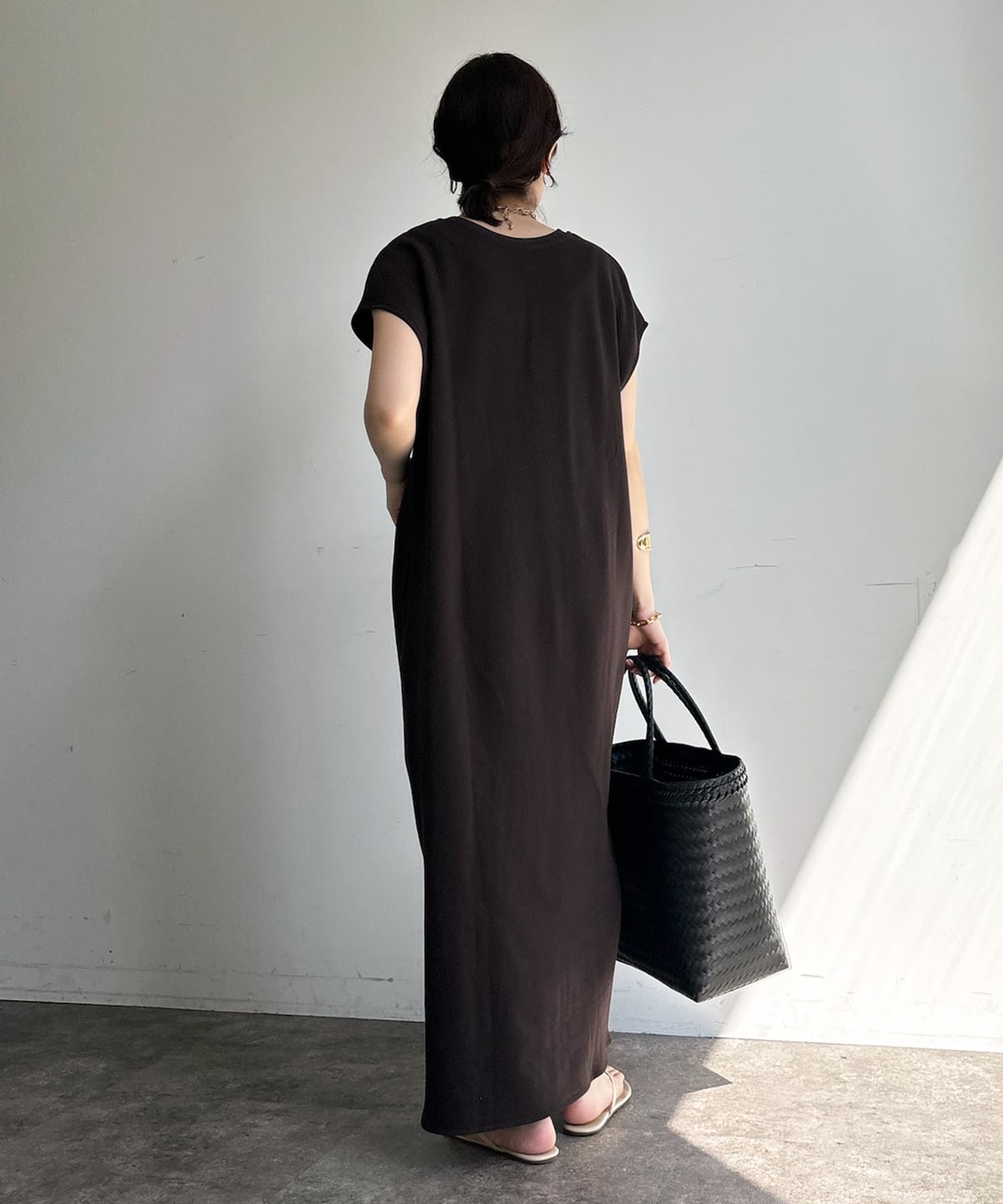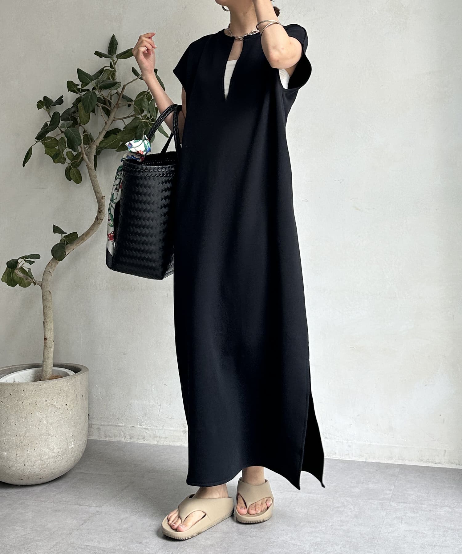 身体のラインをすっぽりと隠し、自然と肩のラインをカバーしてくれるシルエットは、華奢見せ効果をサポート。