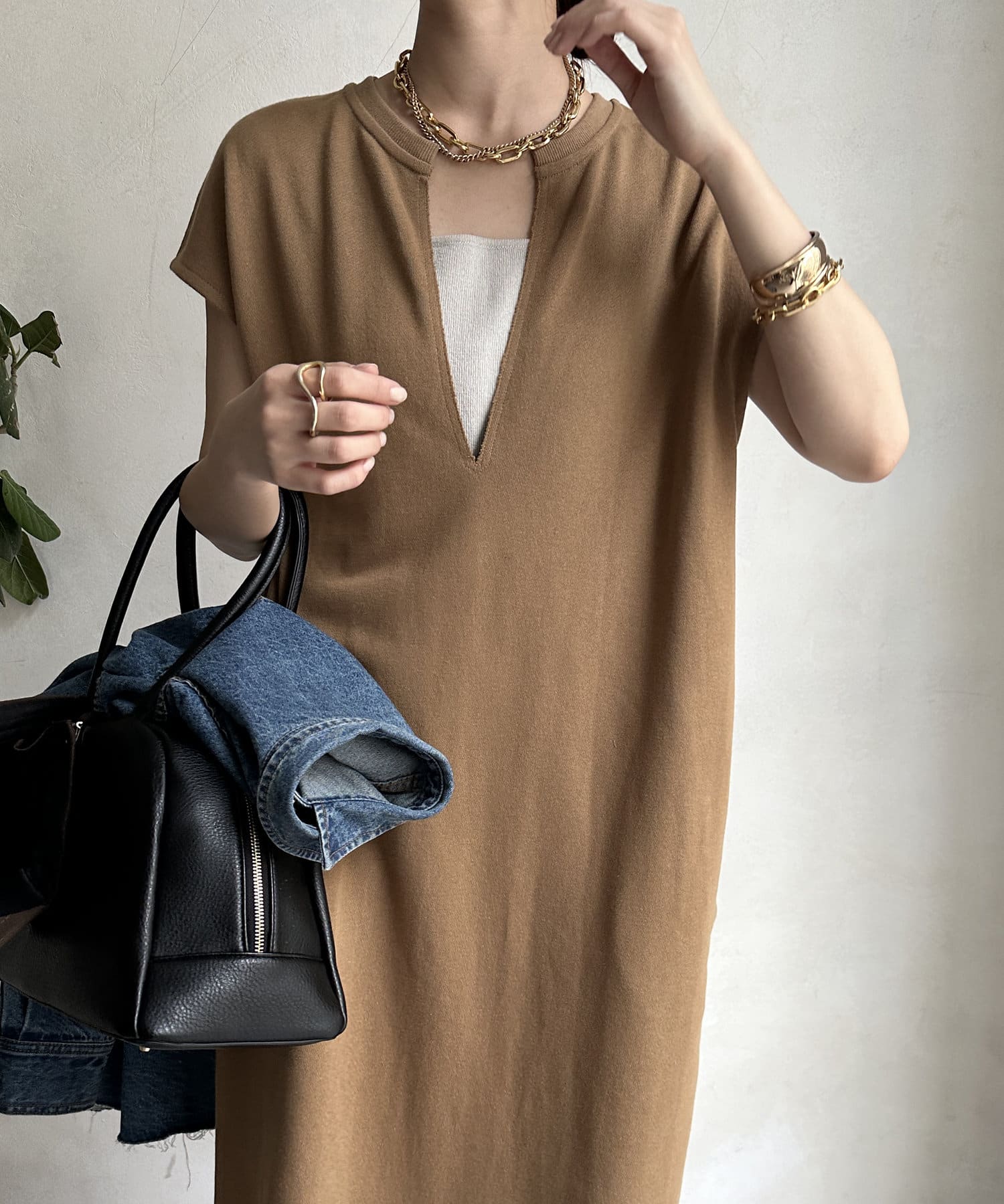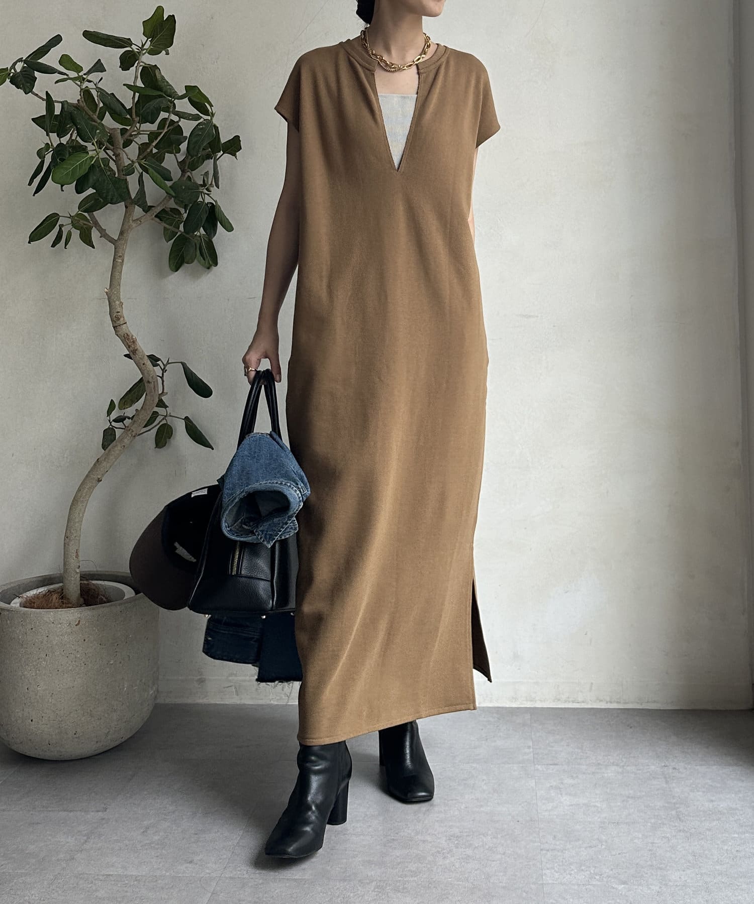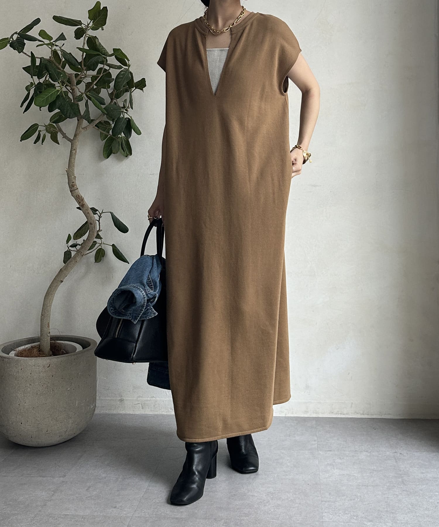 シンプルなデザインを活かした、小物やアクセサリー使いで様々なスタイリングを楽しんでいただけますよ。
