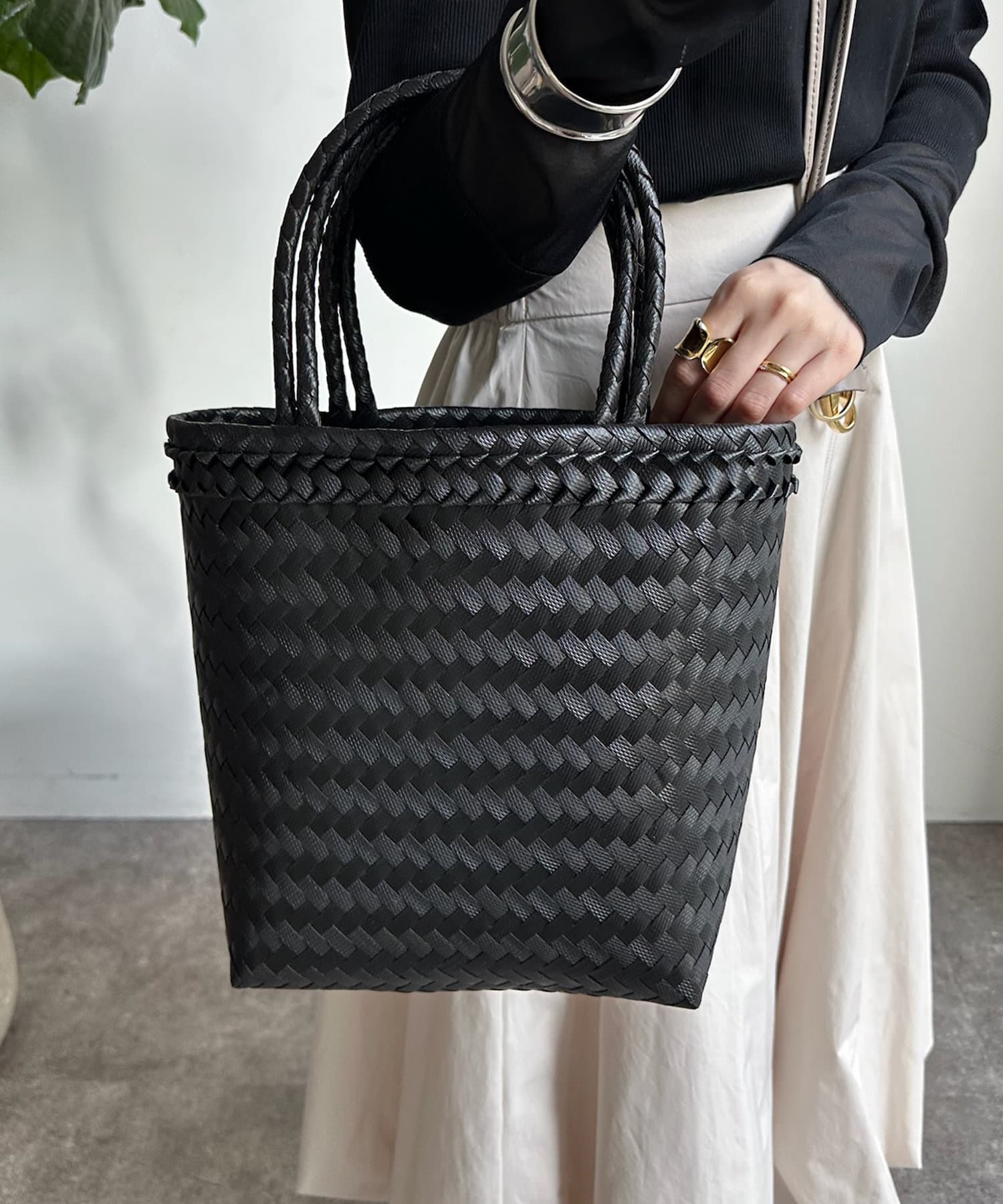 コーディネートのポイントに!大人かごバッグ