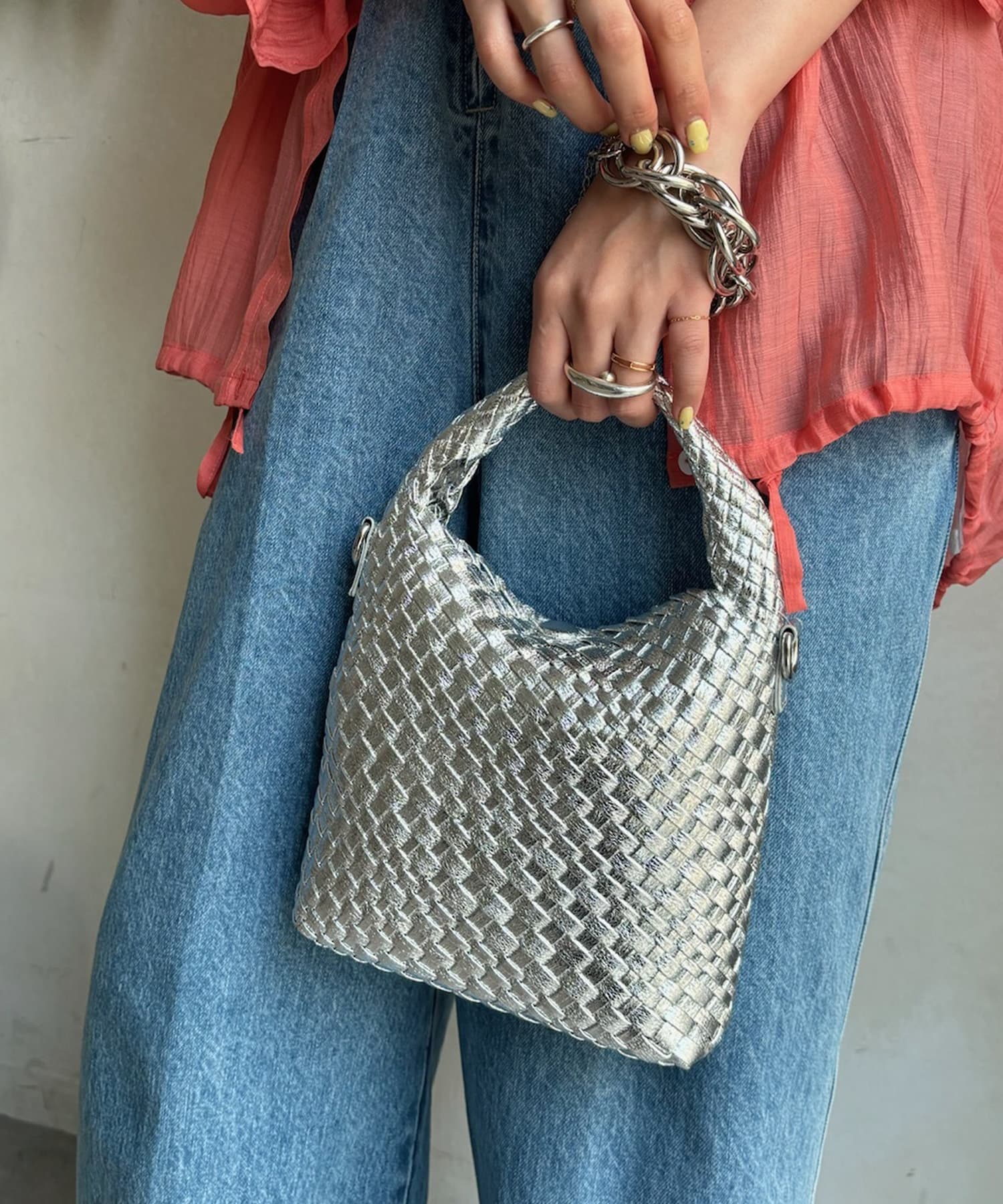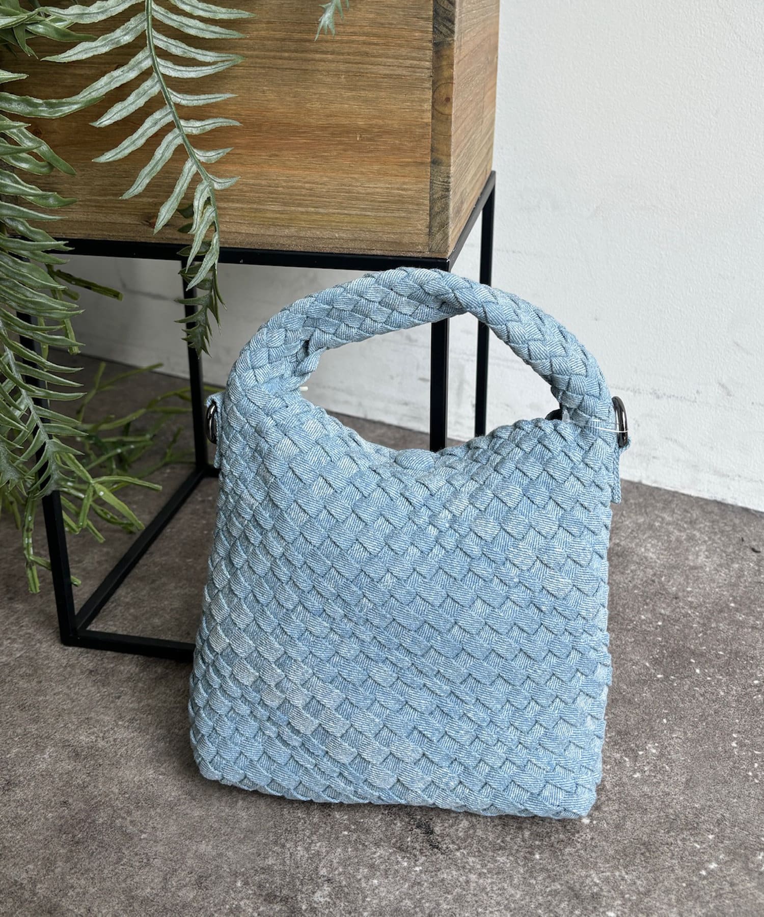 太さの異なるブレードを編みこみ、立体感がオシャレなメッシュバッグです!