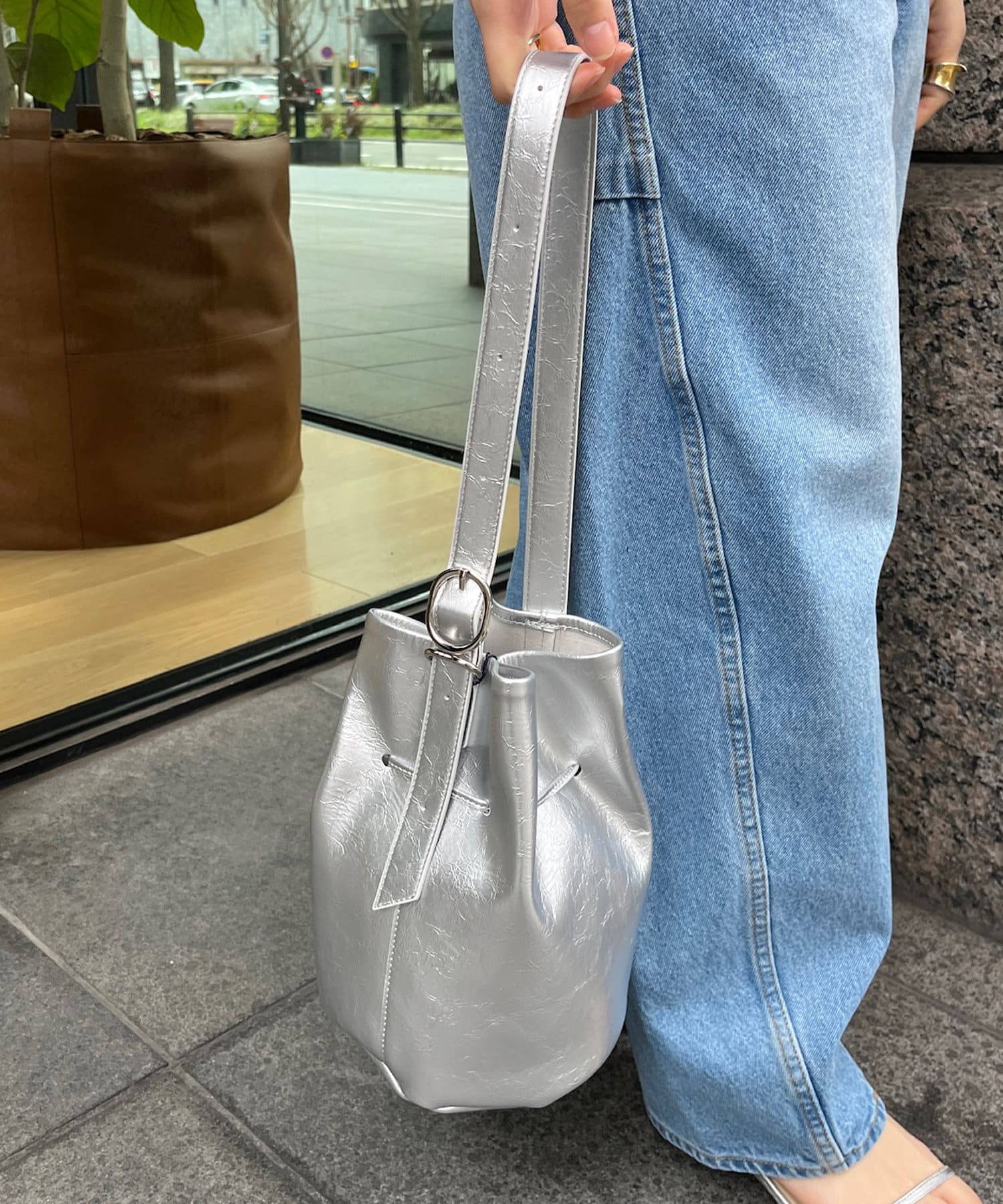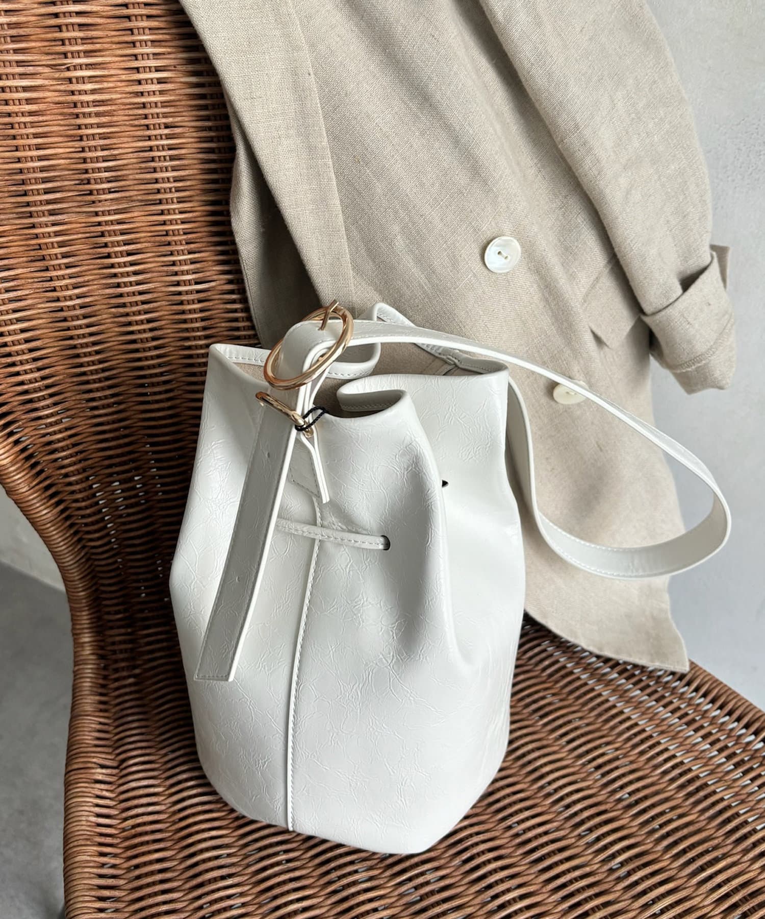 表面に表情のある素材を使ったバケットバッグ