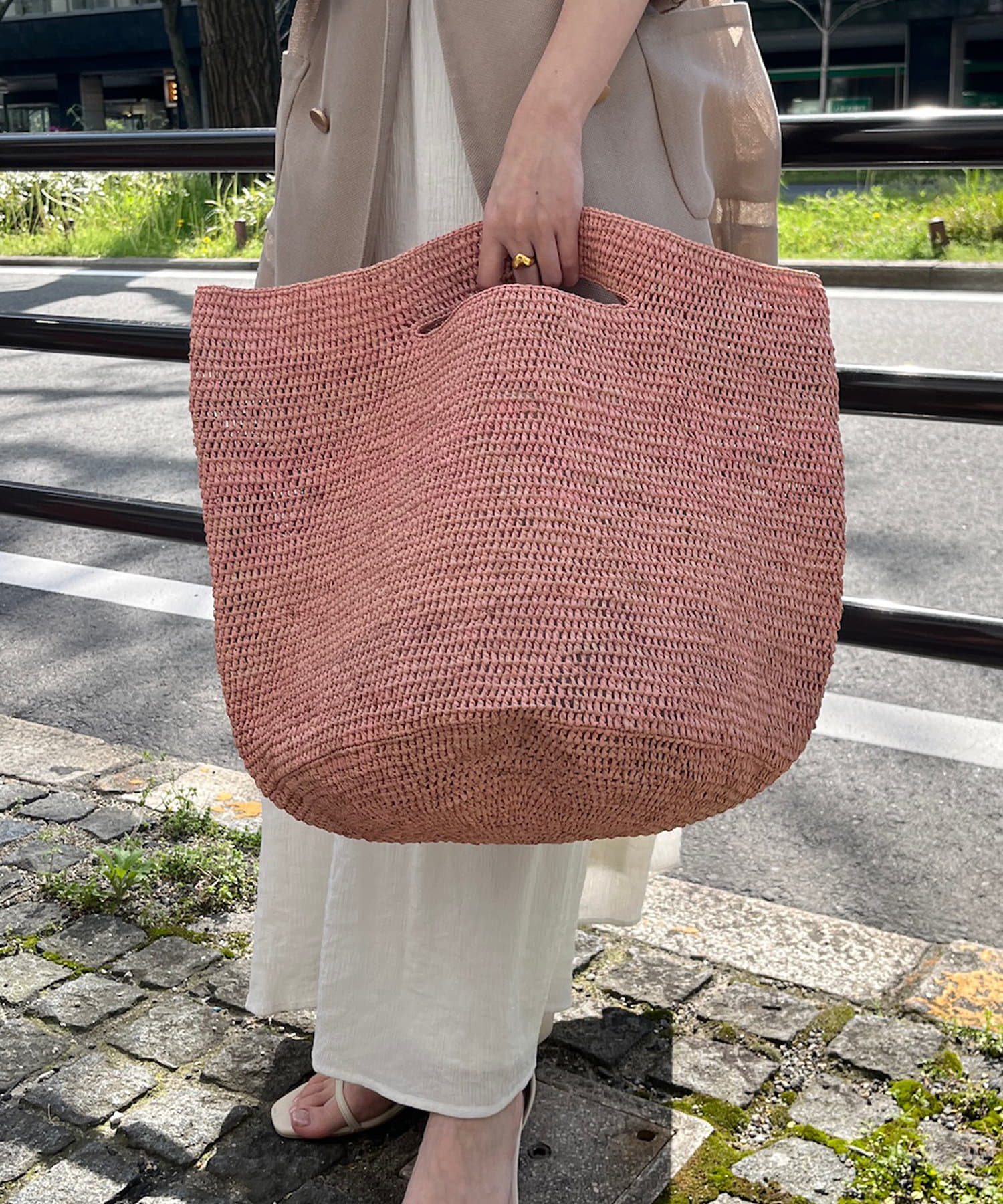 夏のコーディネートに欠かせない、天然素材のバッグ。
