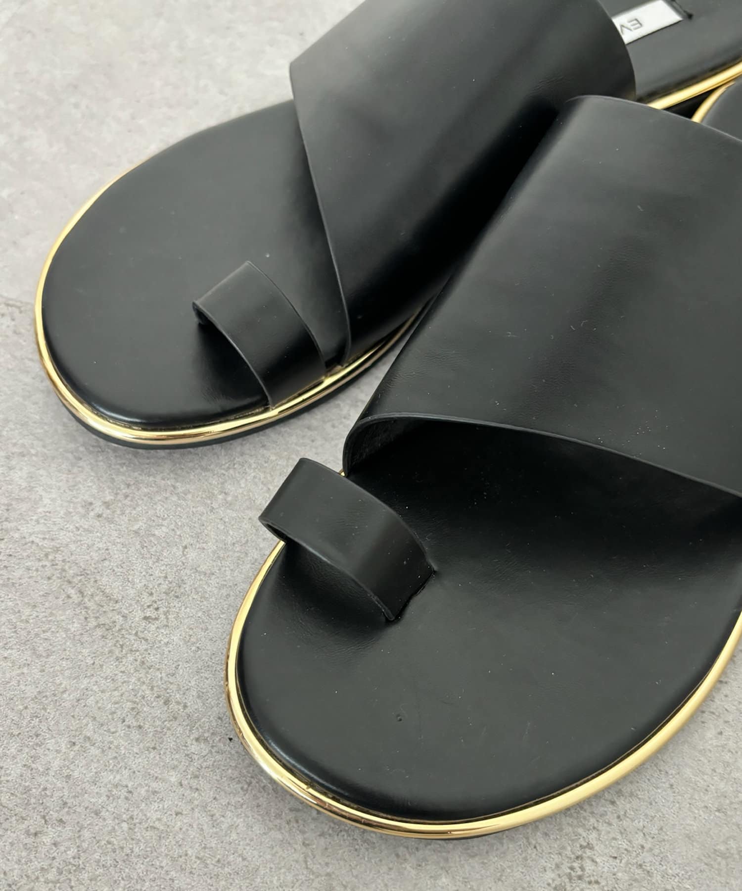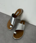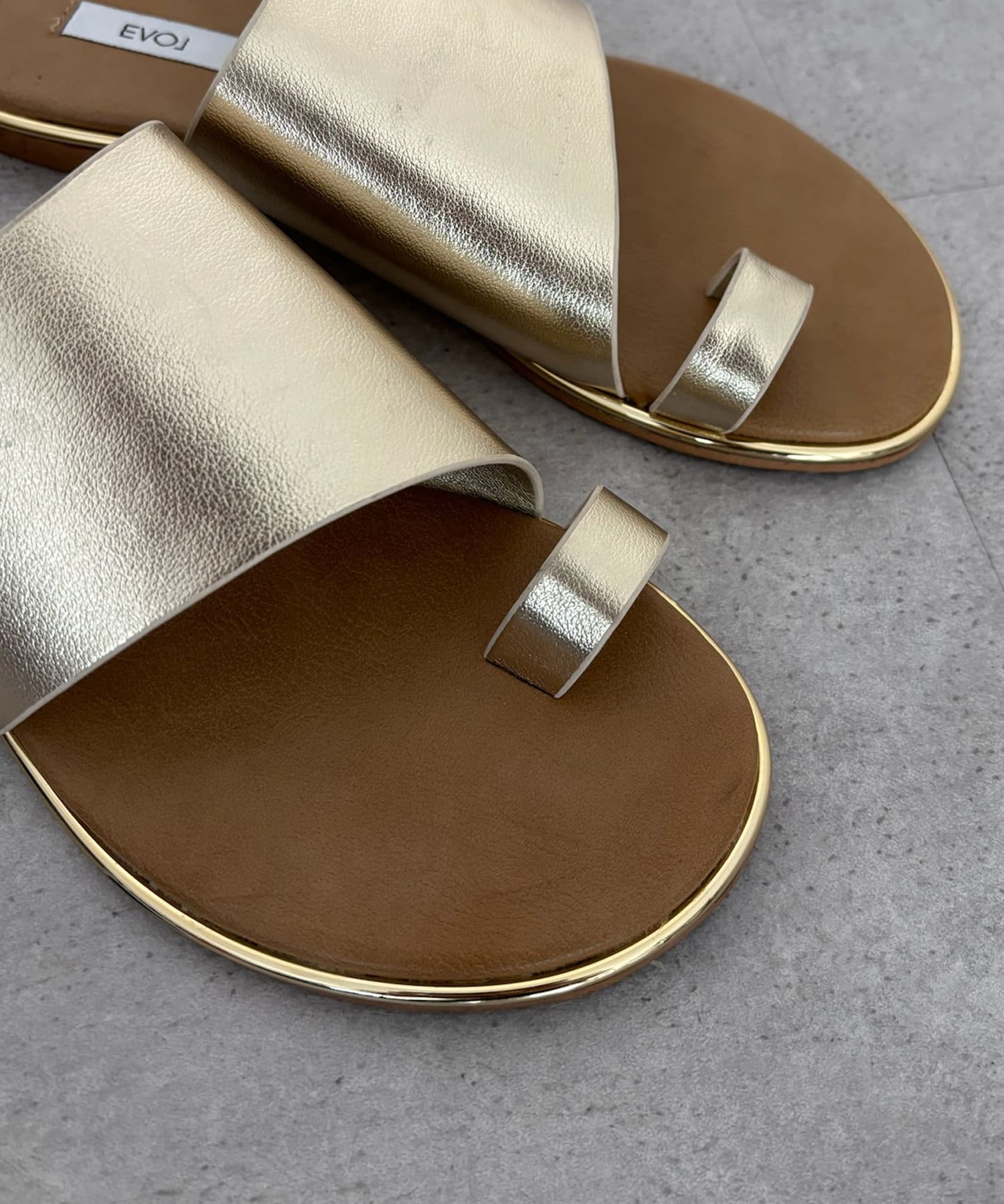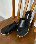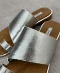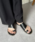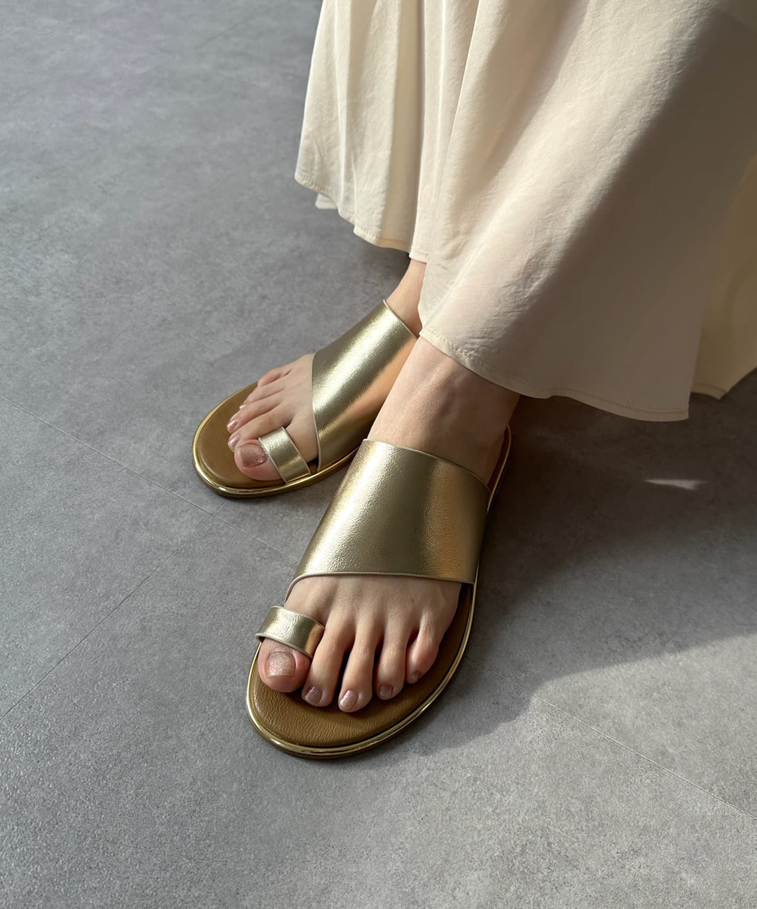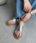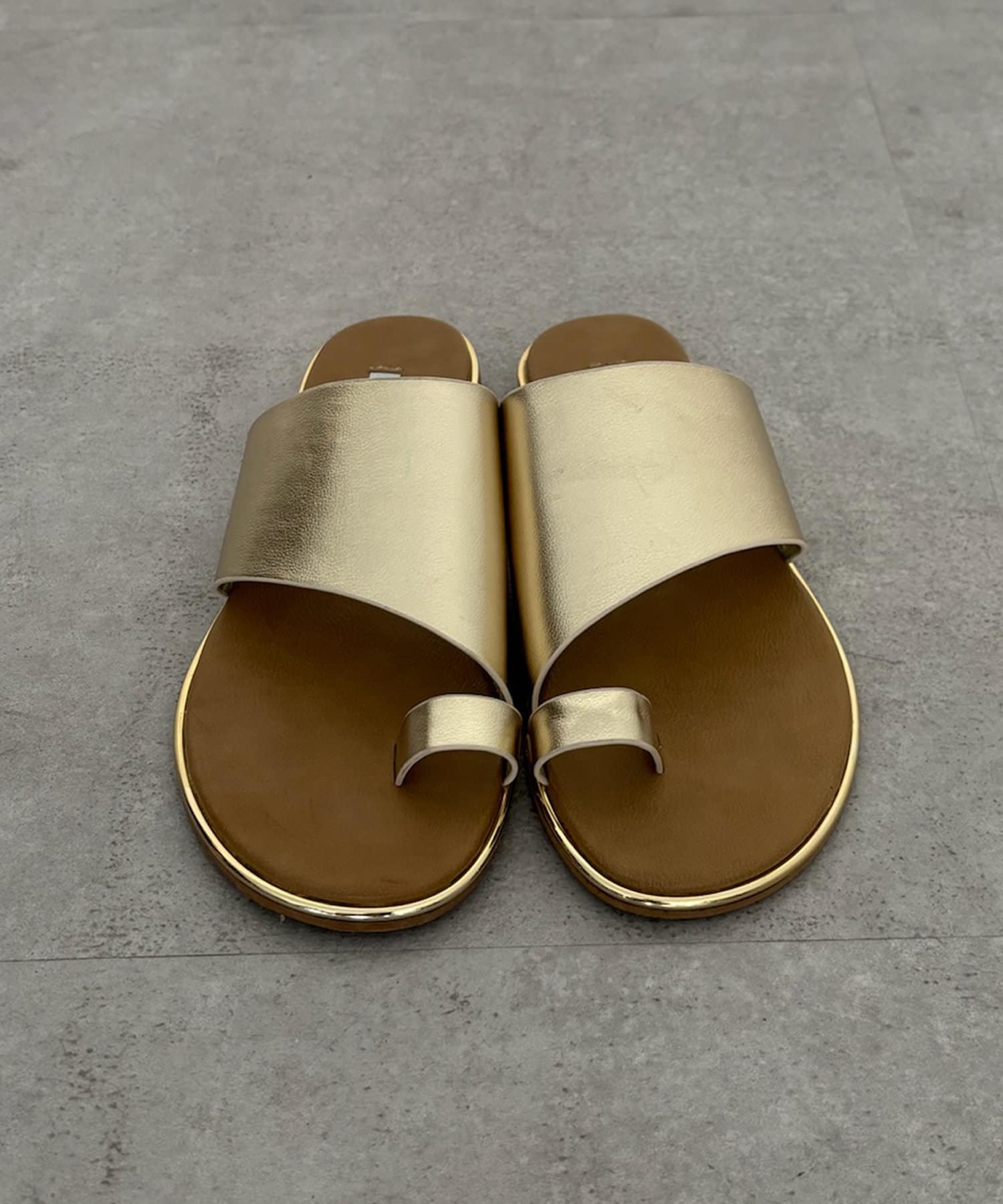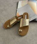 フラットサンダルは安く見えがちですが、ゴールドの縁部分で高級感をプラス。
