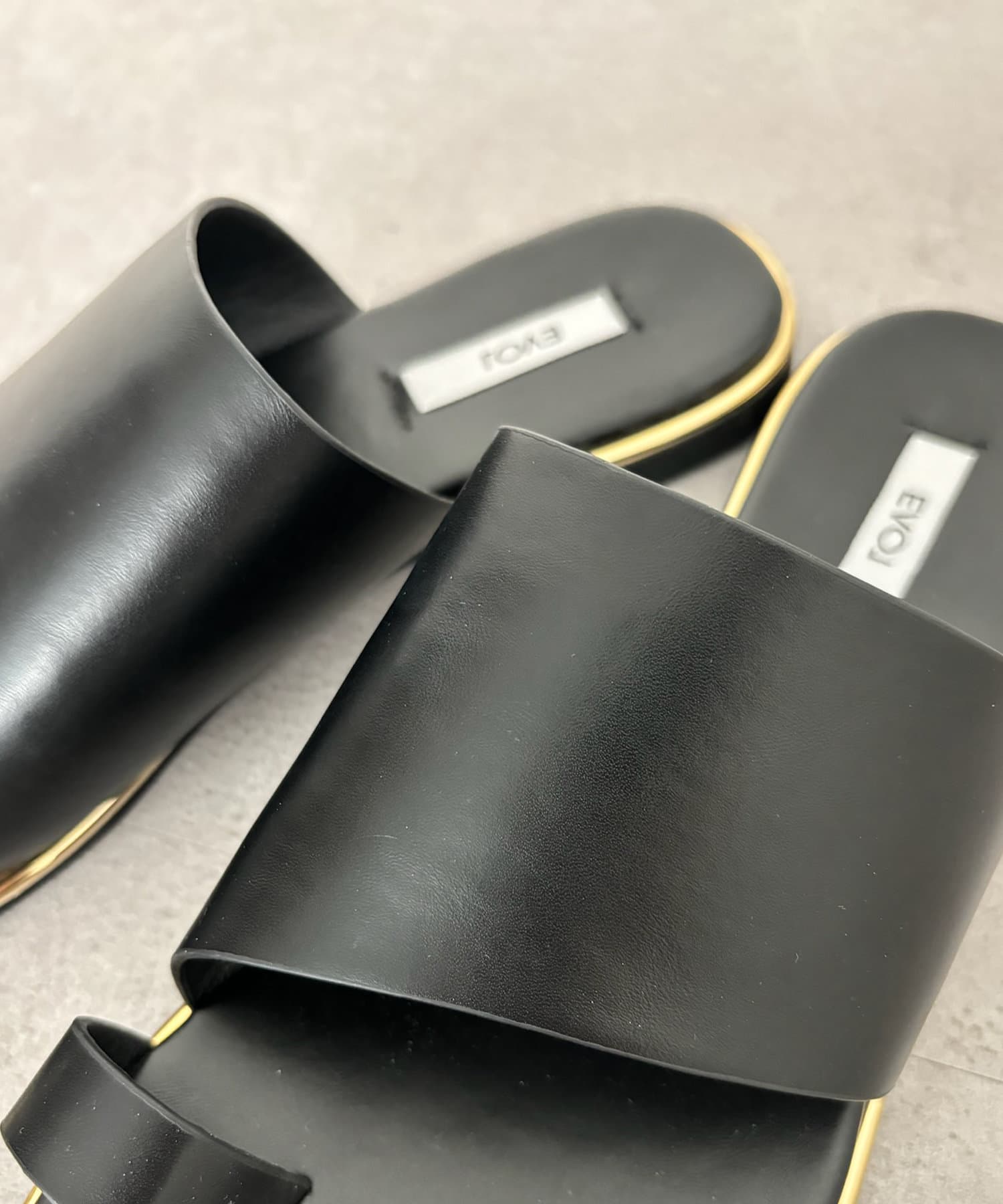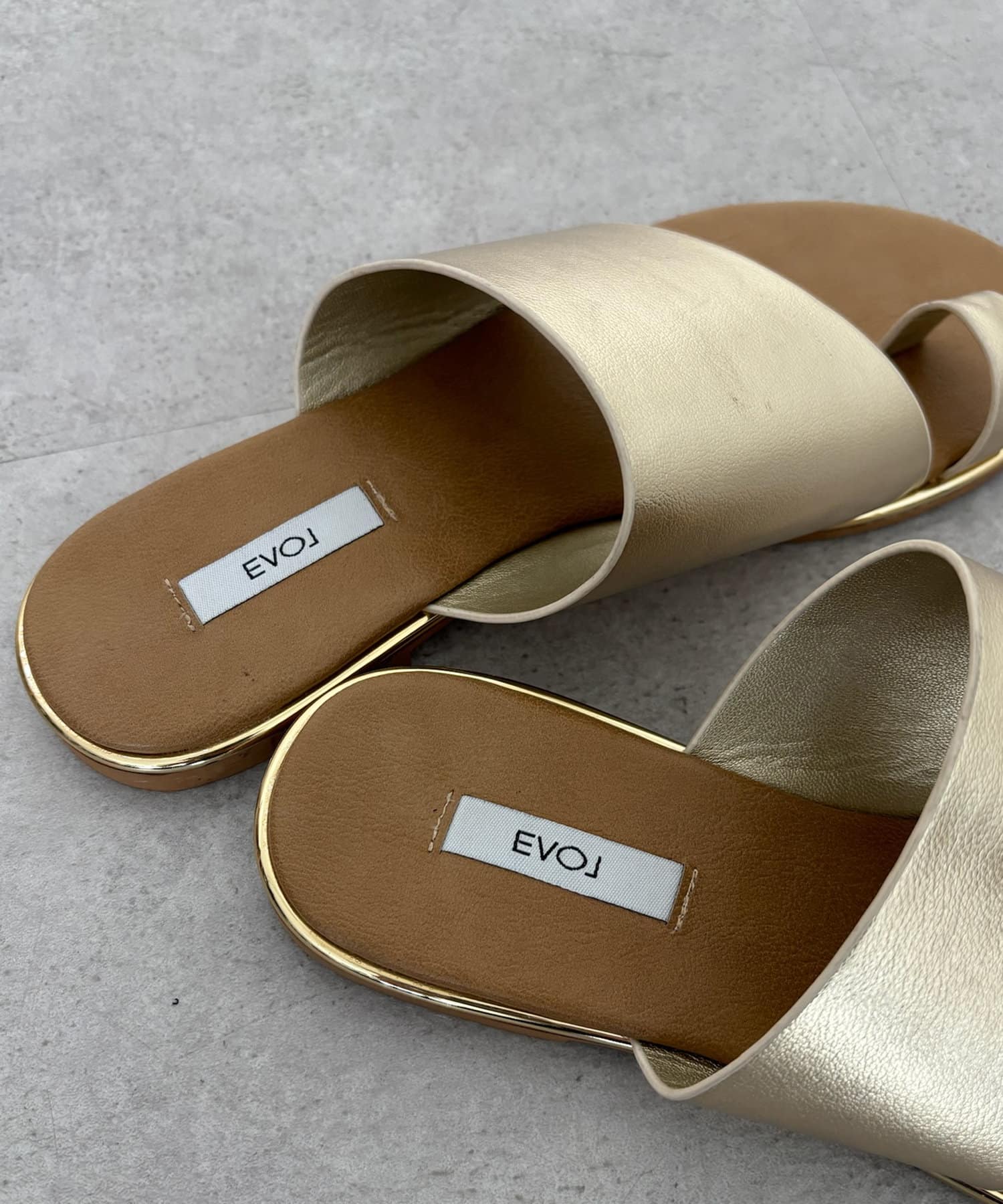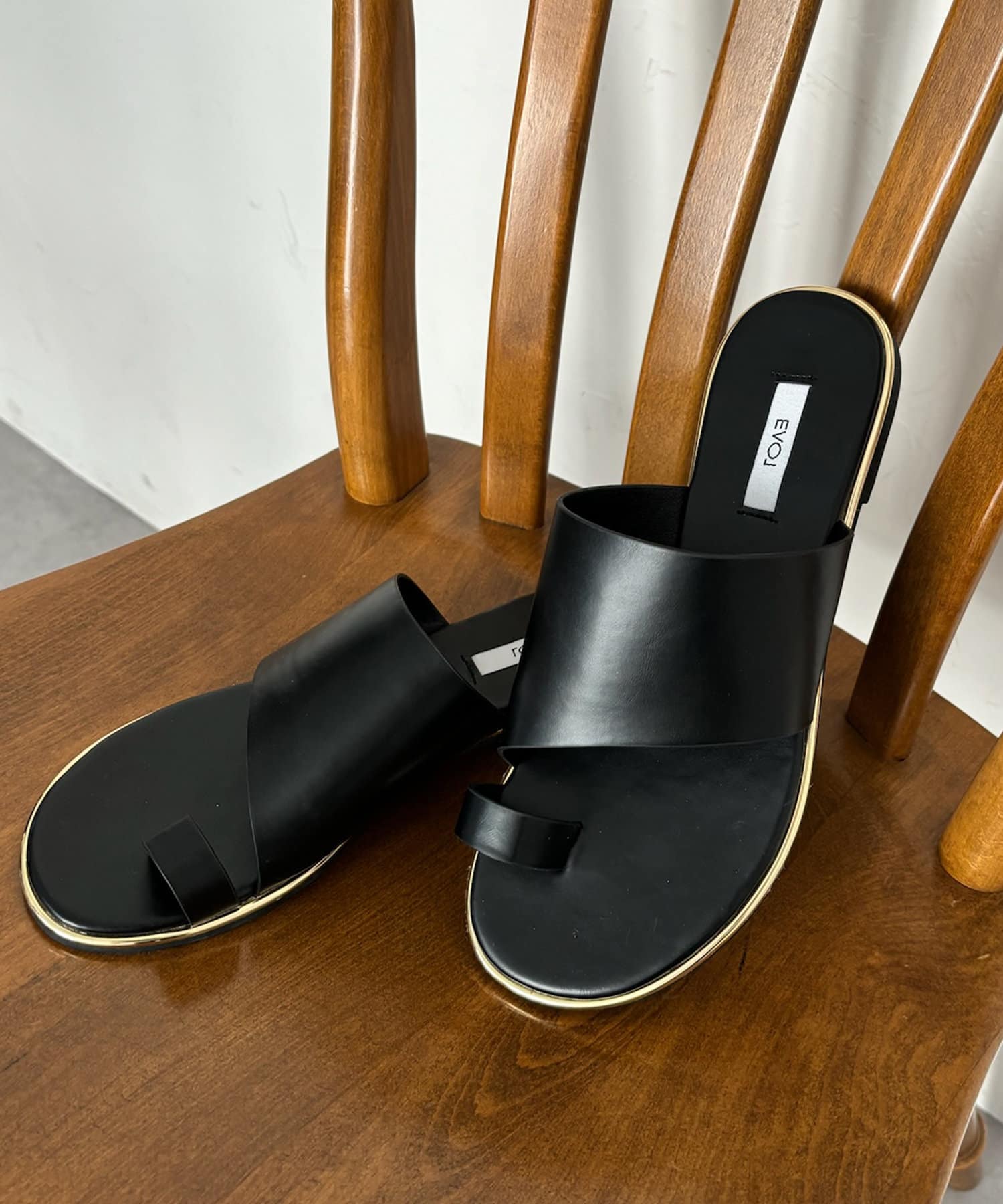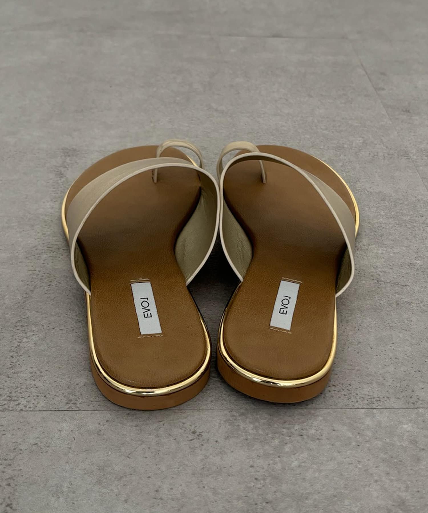 フラットサンダルは安く見えがちですが、ゴールドの縁部分で高級感をプラス。