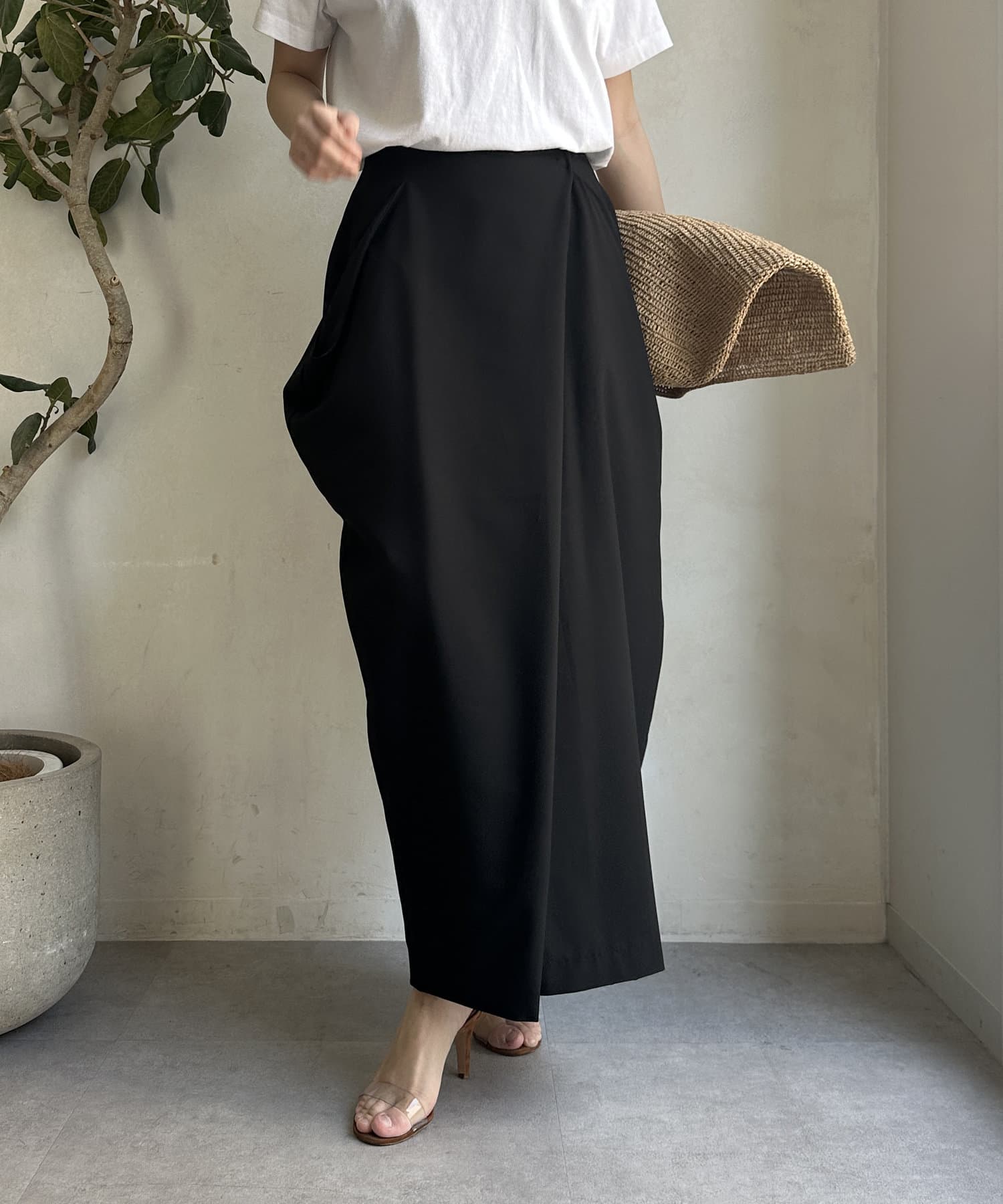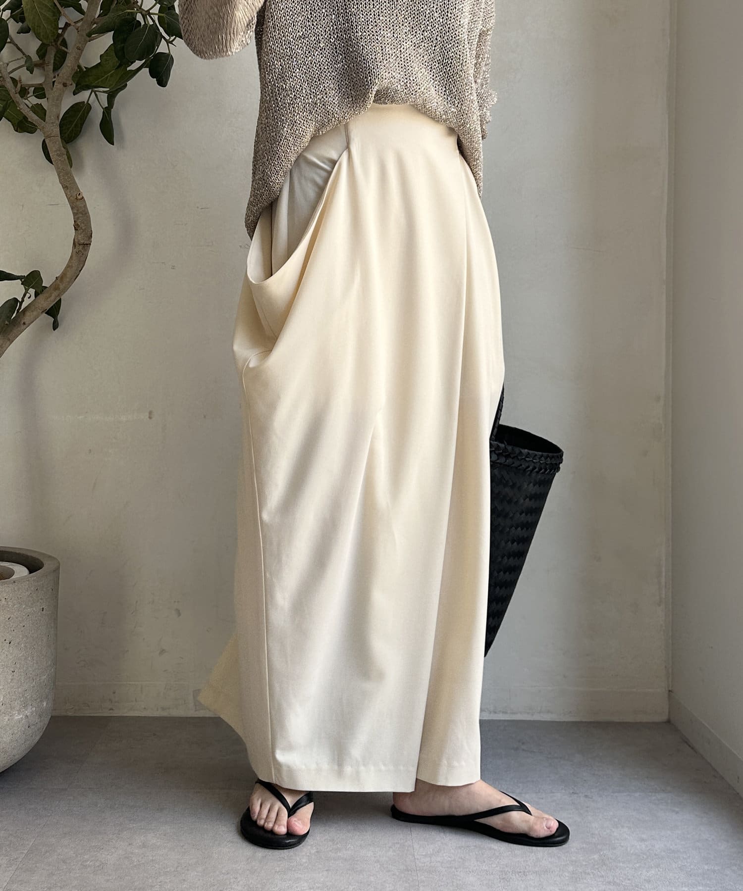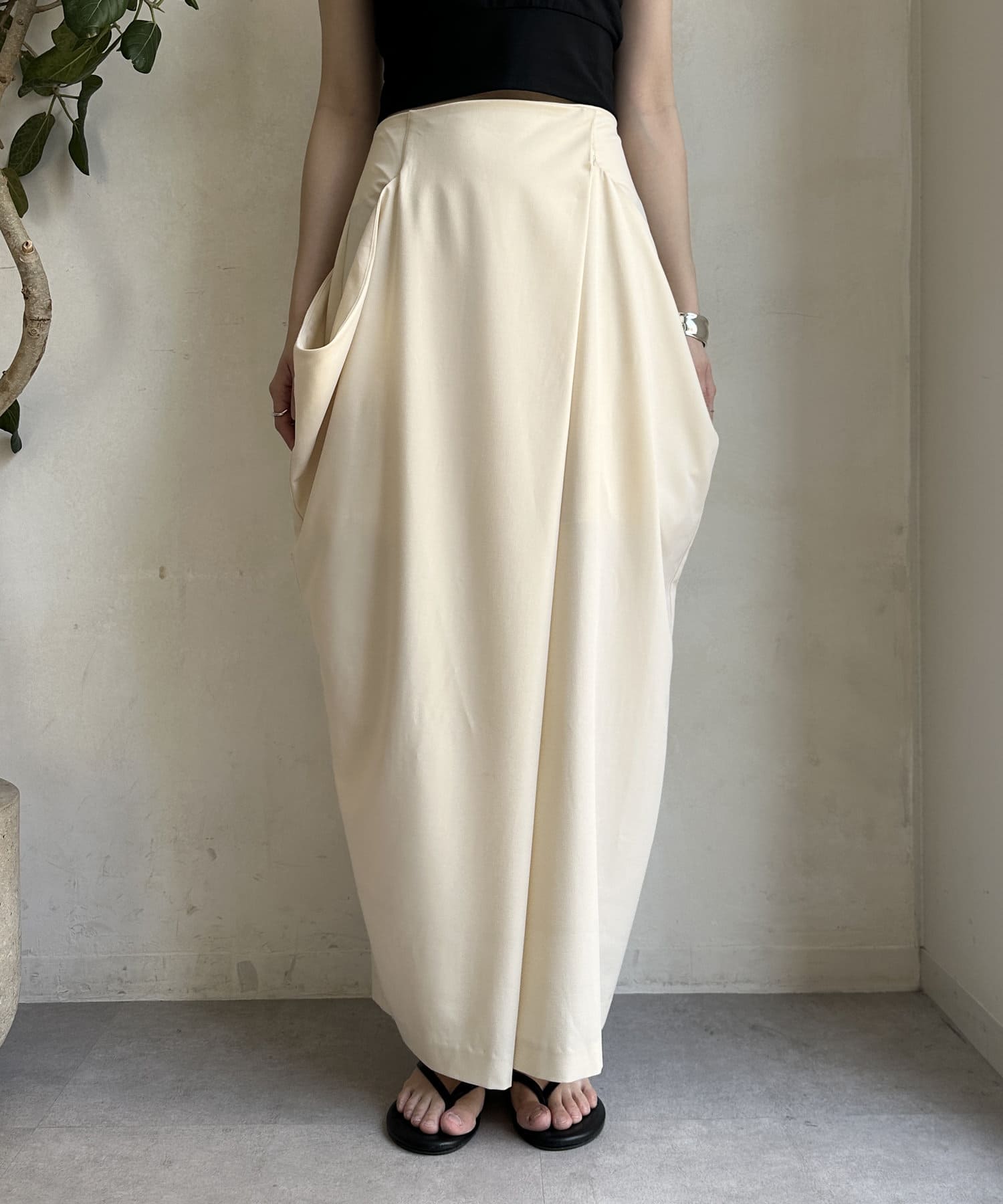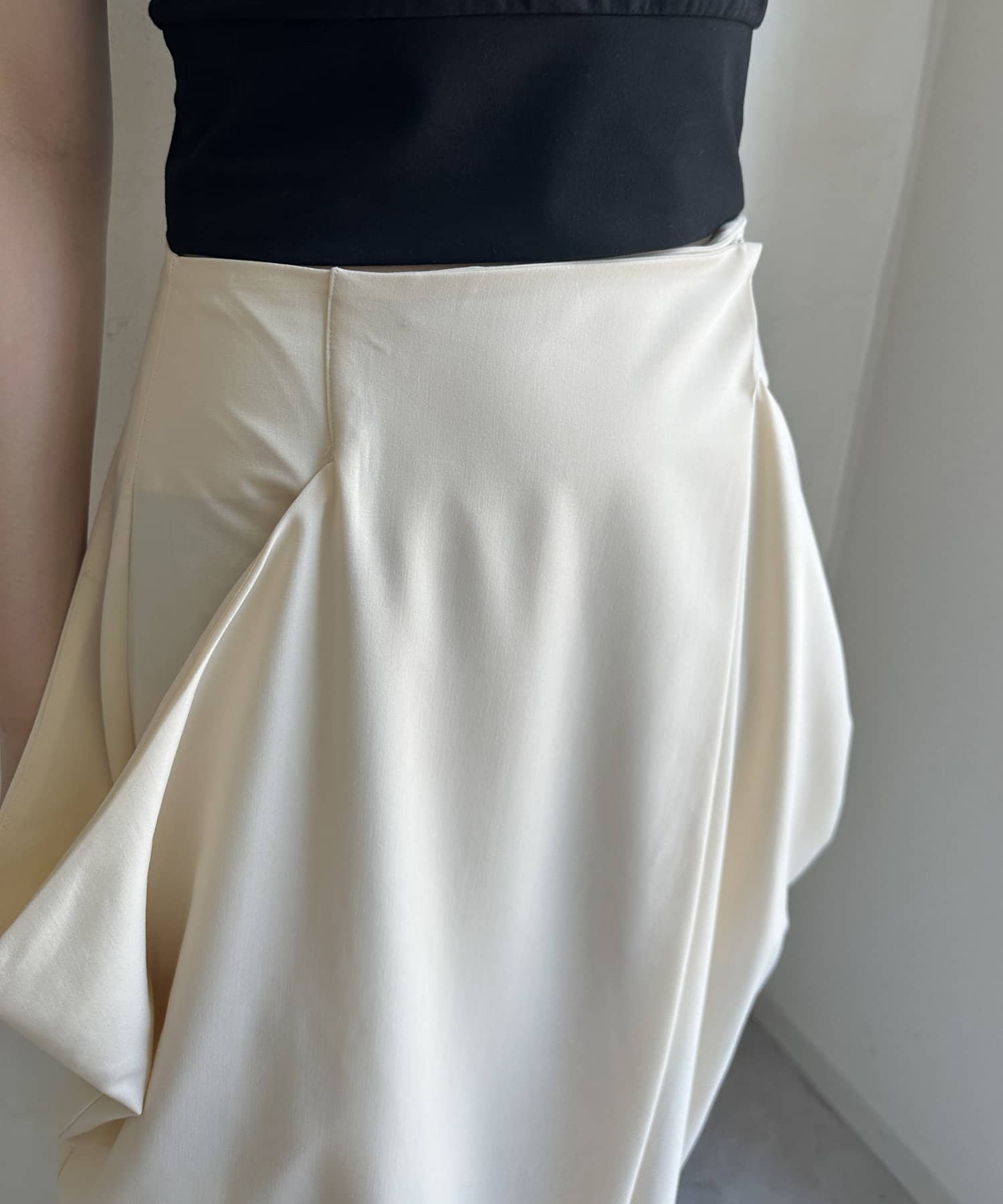 ドレープが効いた珍しいシルエットが特徴のスカート!