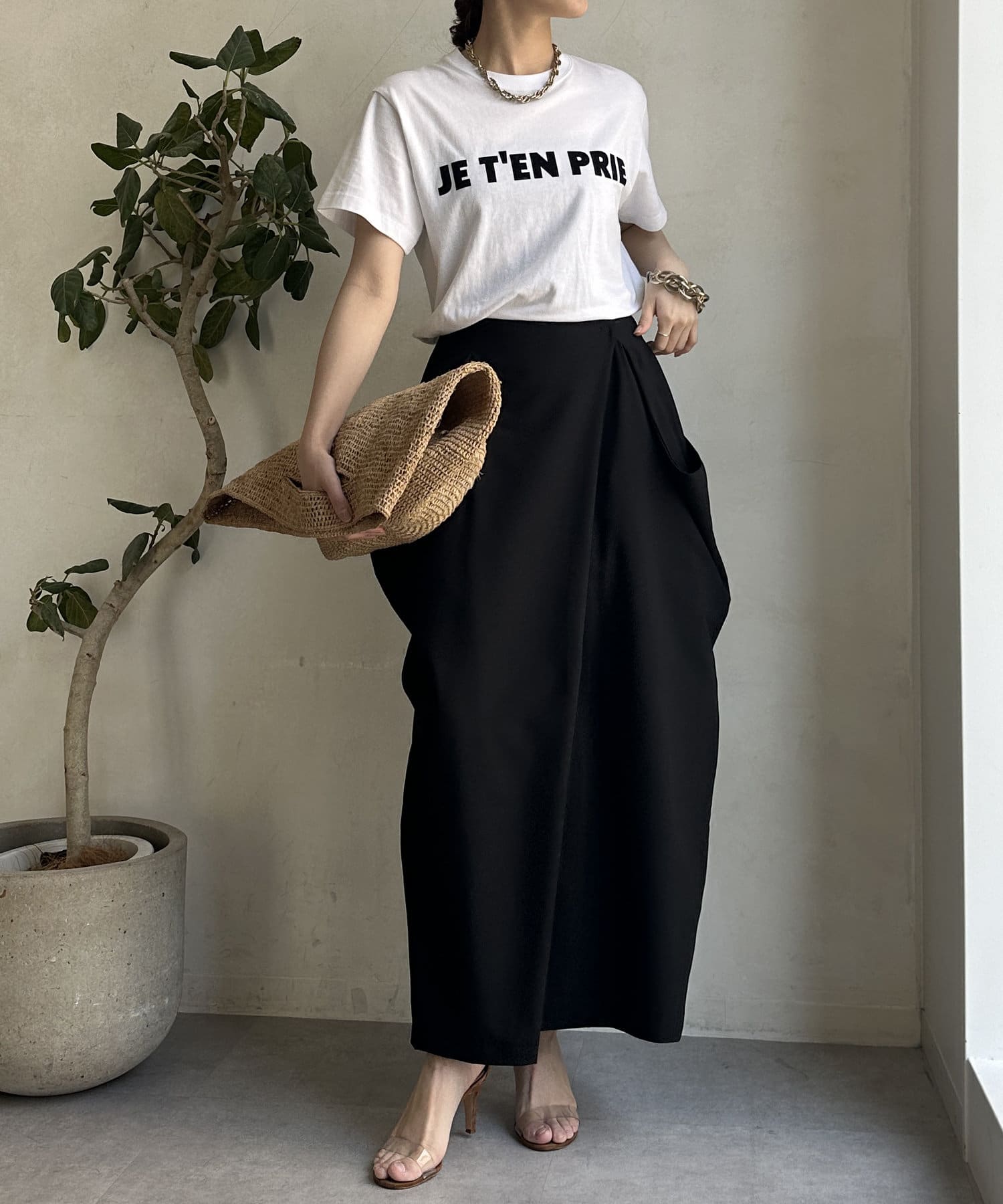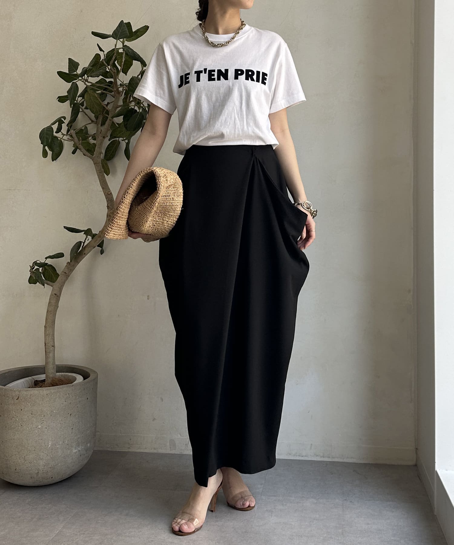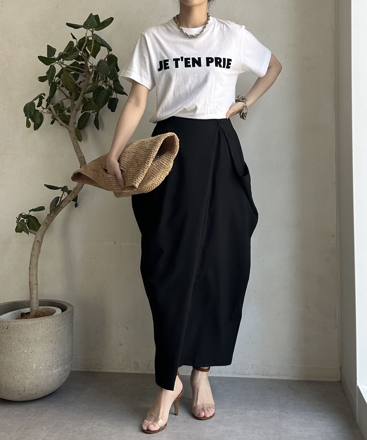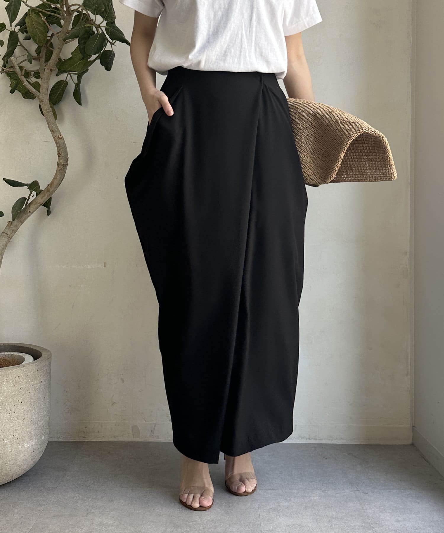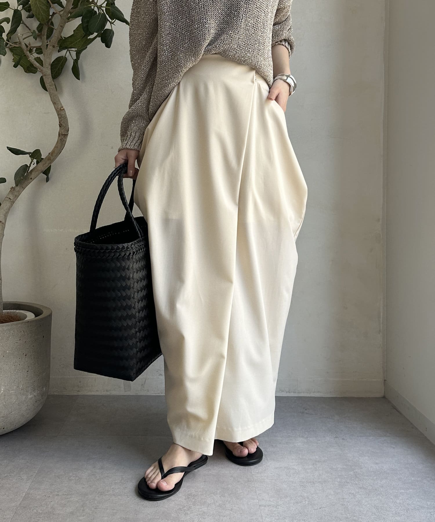 ドレープが効いた珍しいシルエットが特徴のスカート!