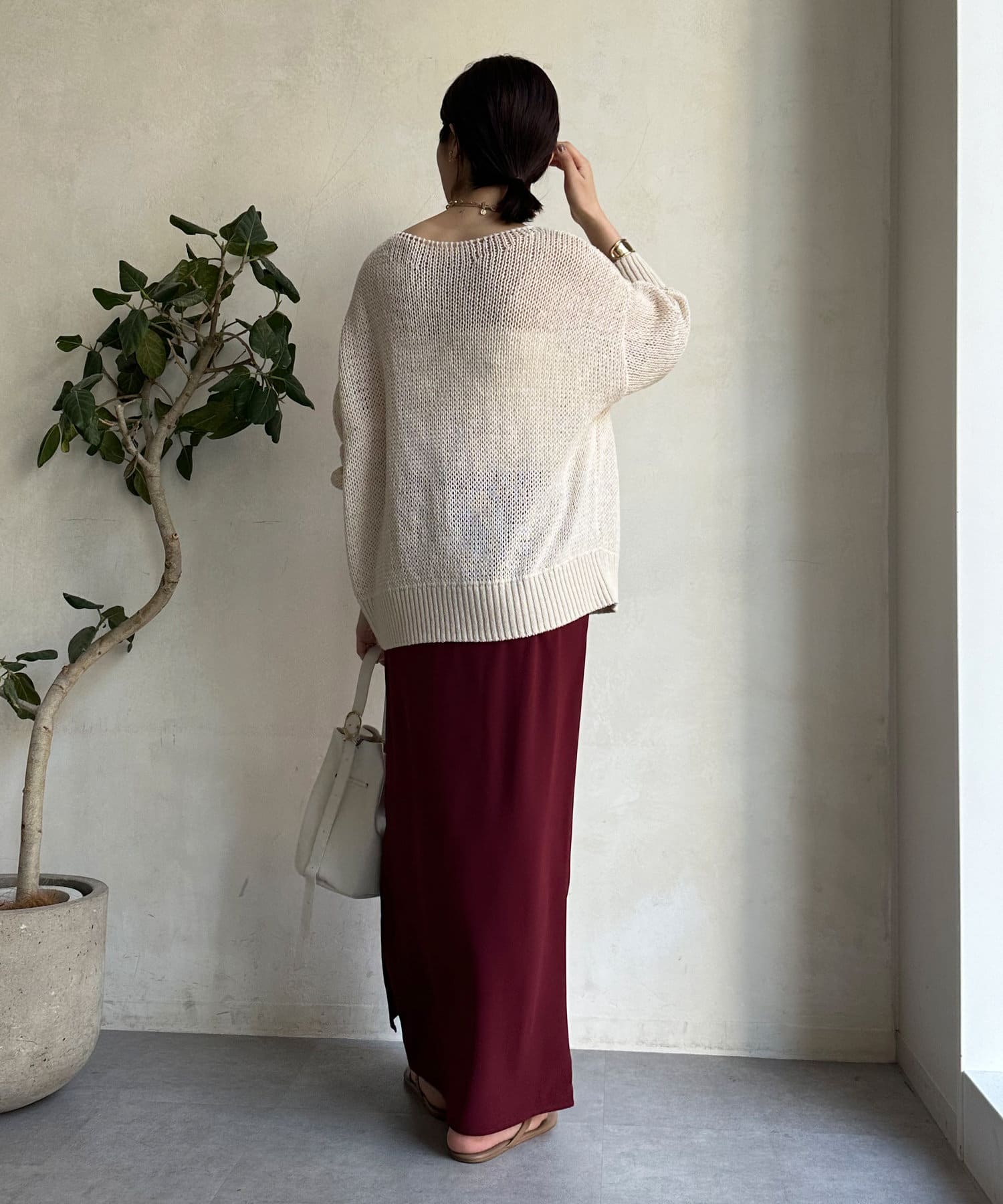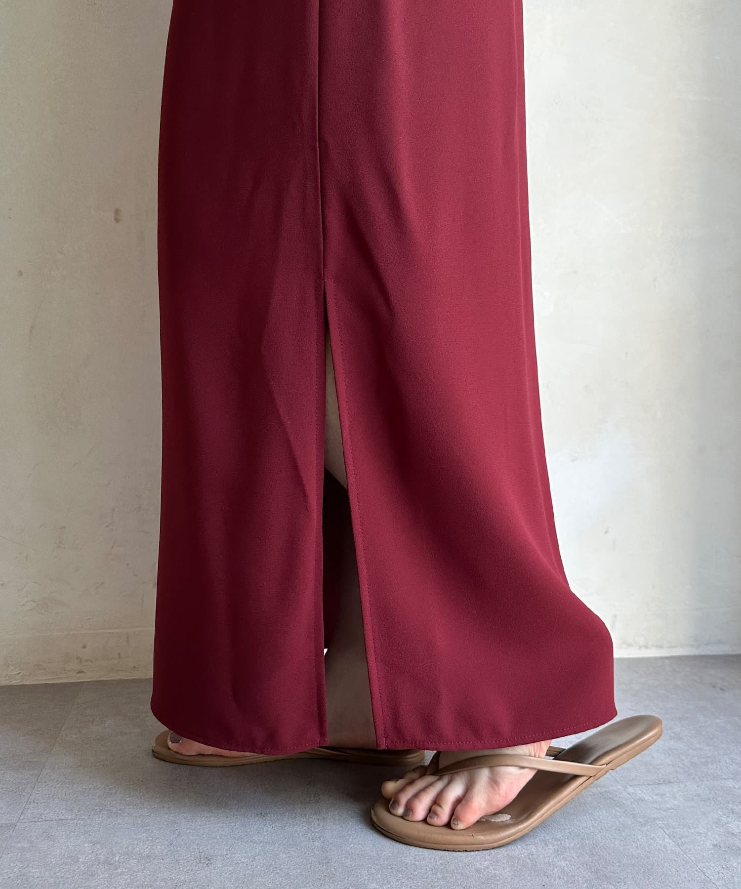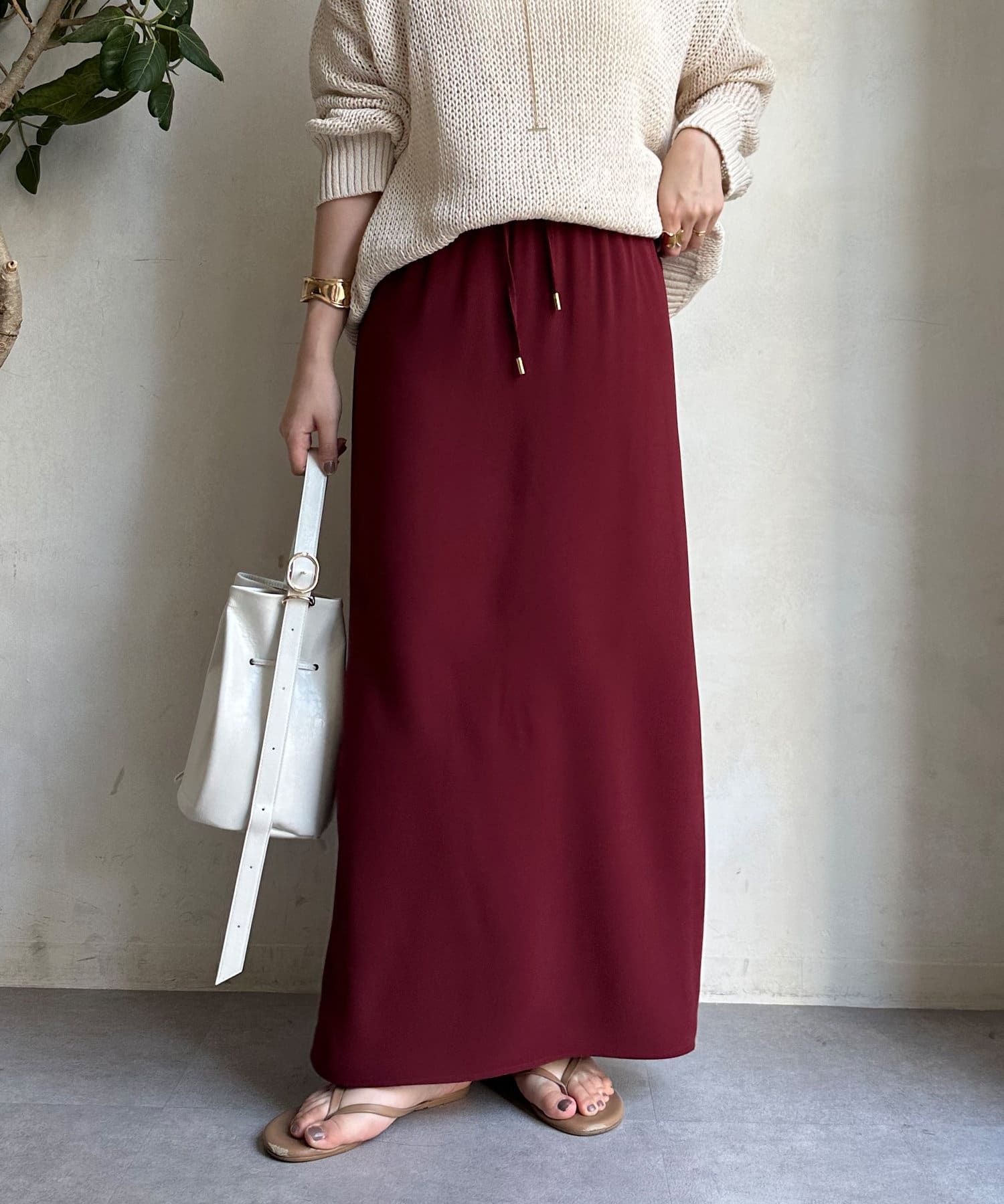 とってもイージーな履き心地ながらも上品見えするIラインシルエットに、サイドスリットをオンすることで抜け感と女性らしさをプラス。