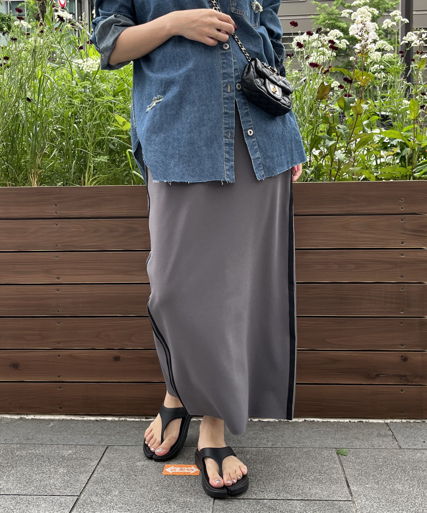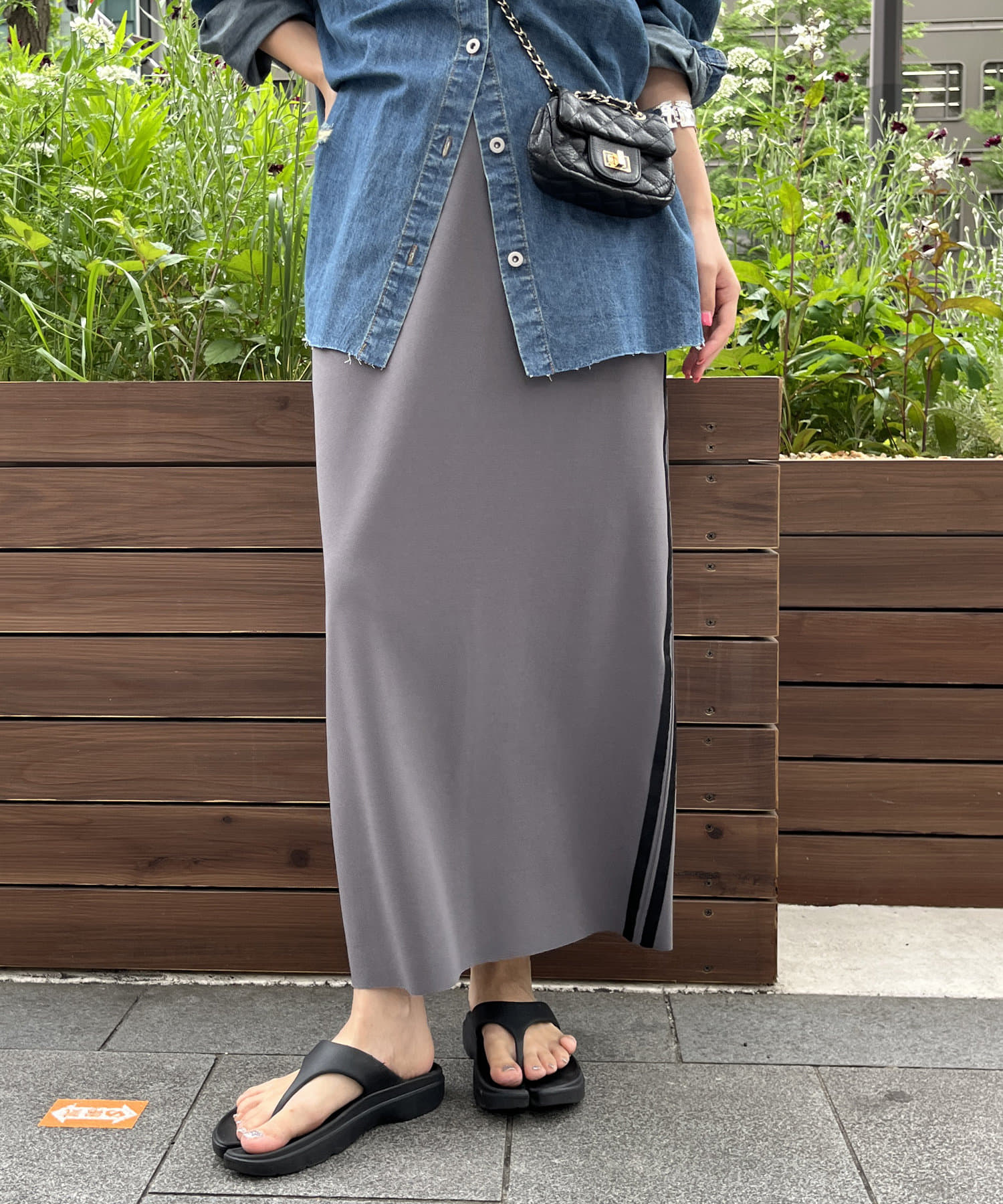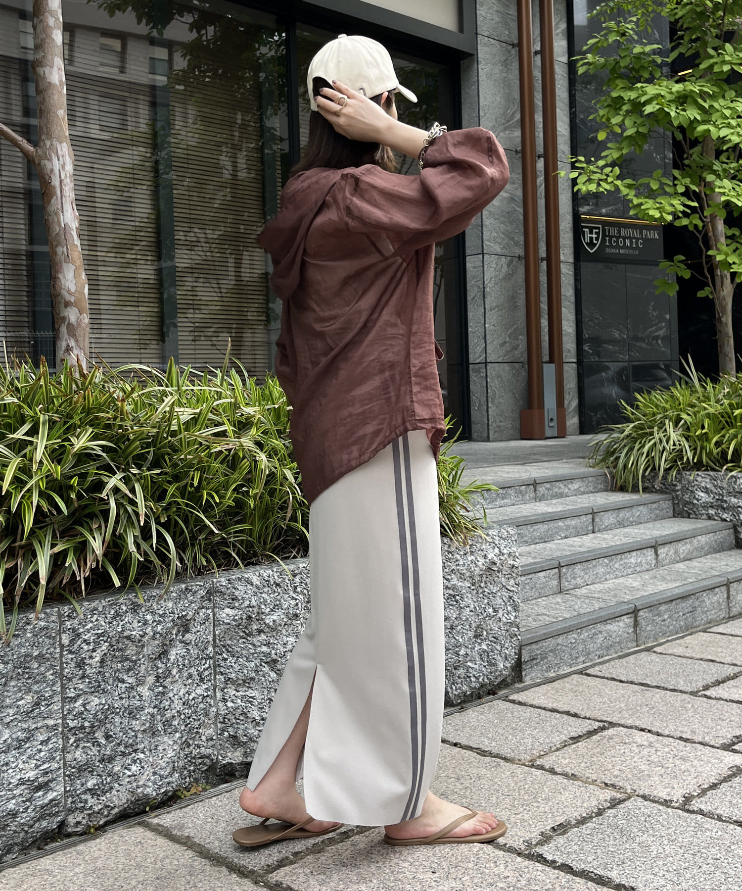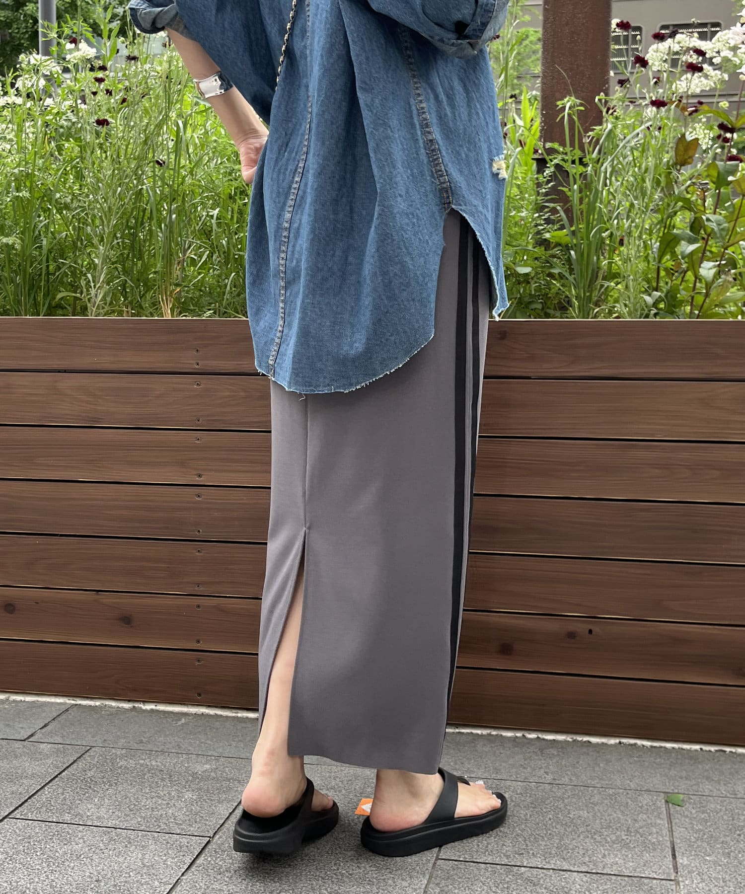 大人っぽいIラインのスカートにラインデザインを施しました。