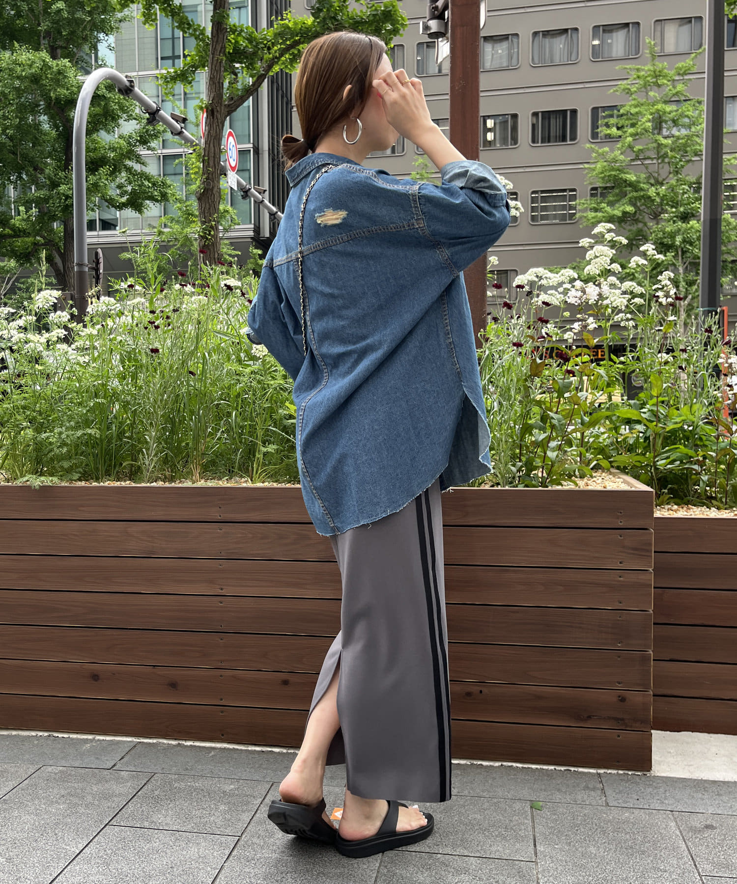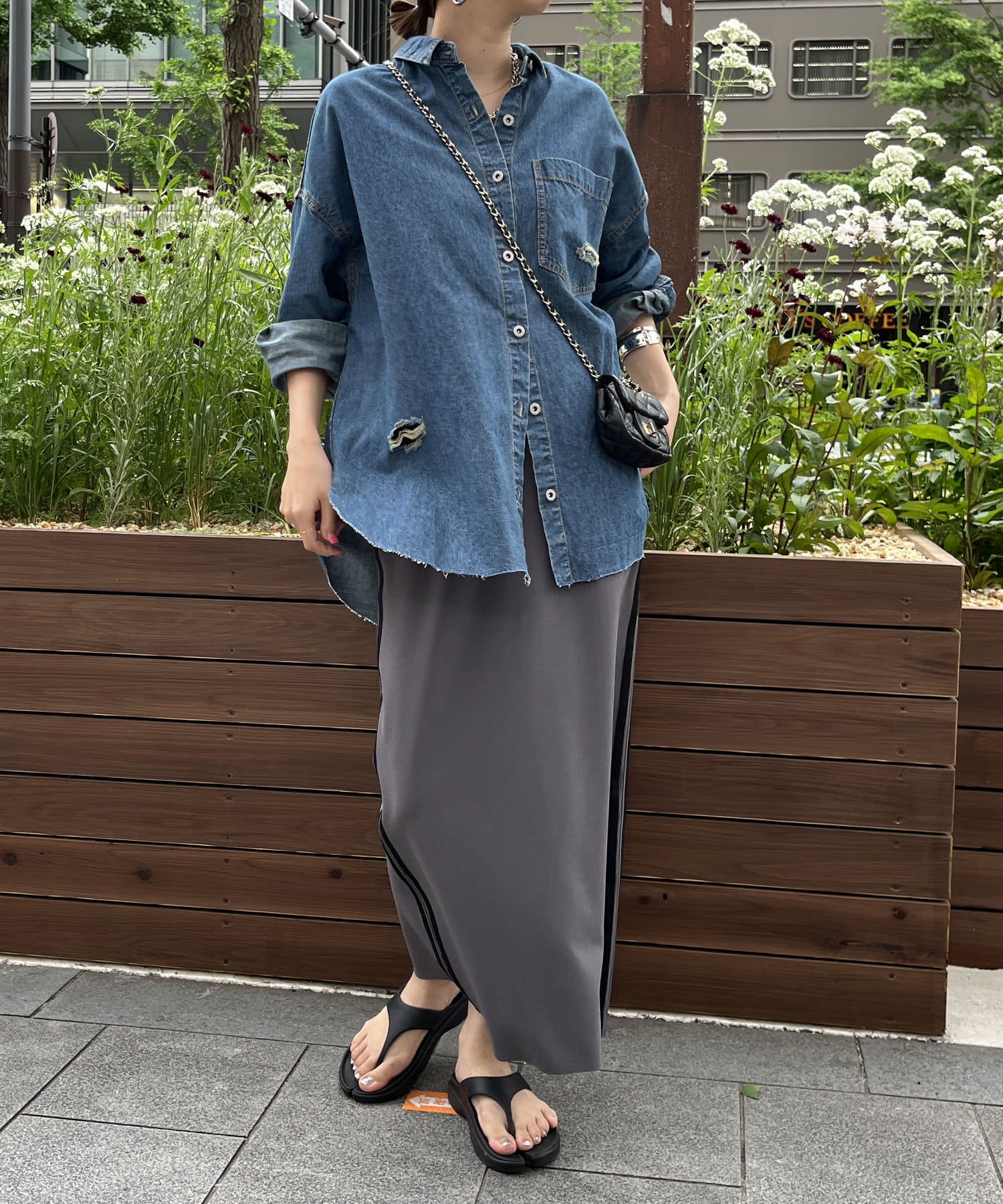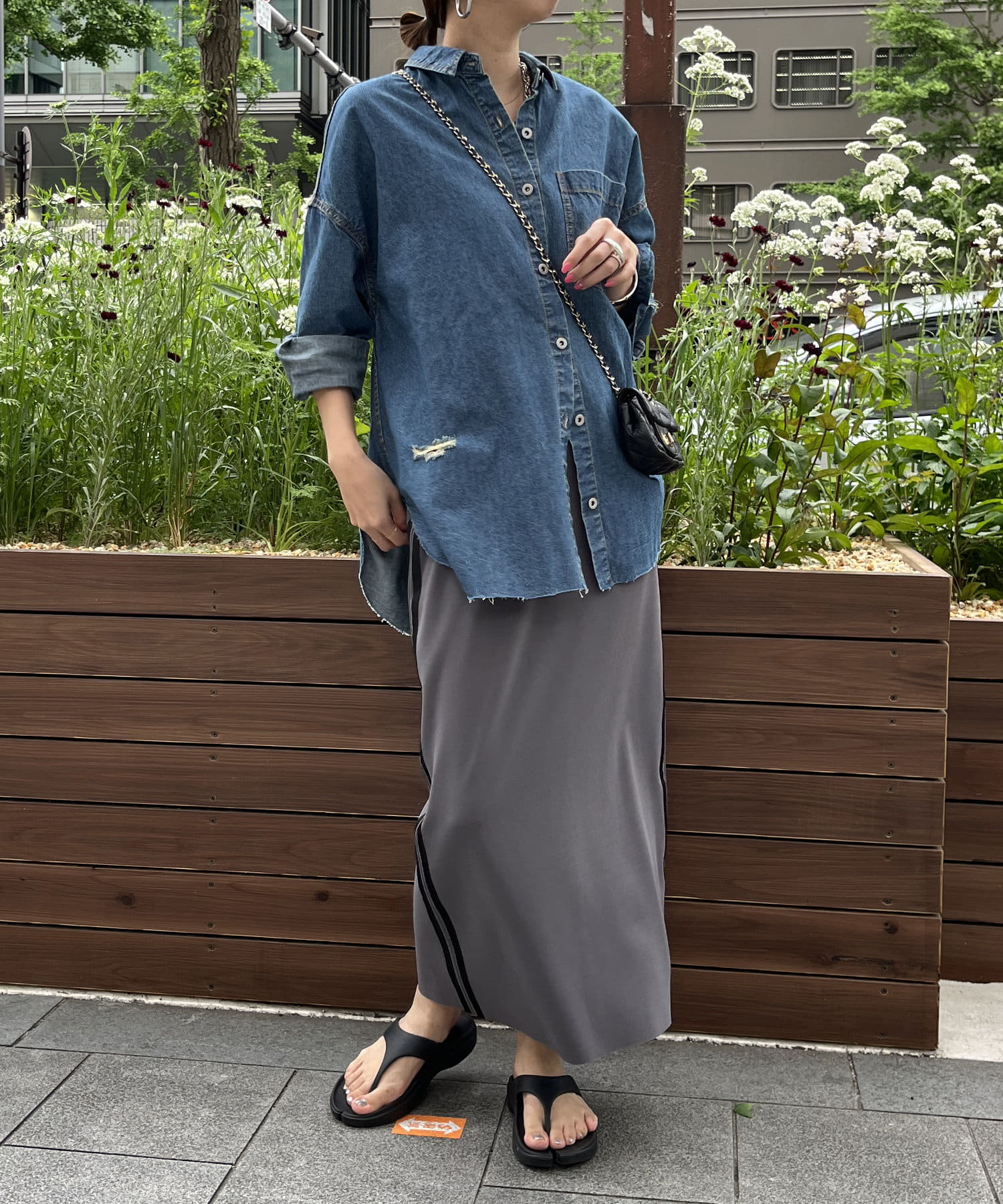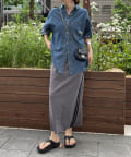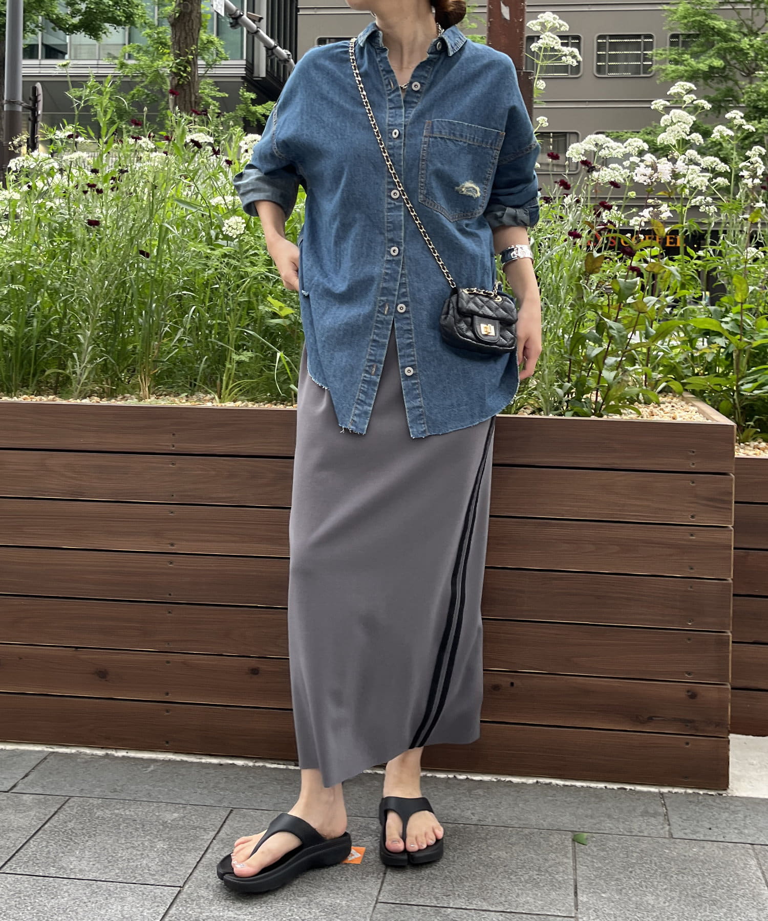 大人っぽいIラインのスカートにラインデザインを施しました。
