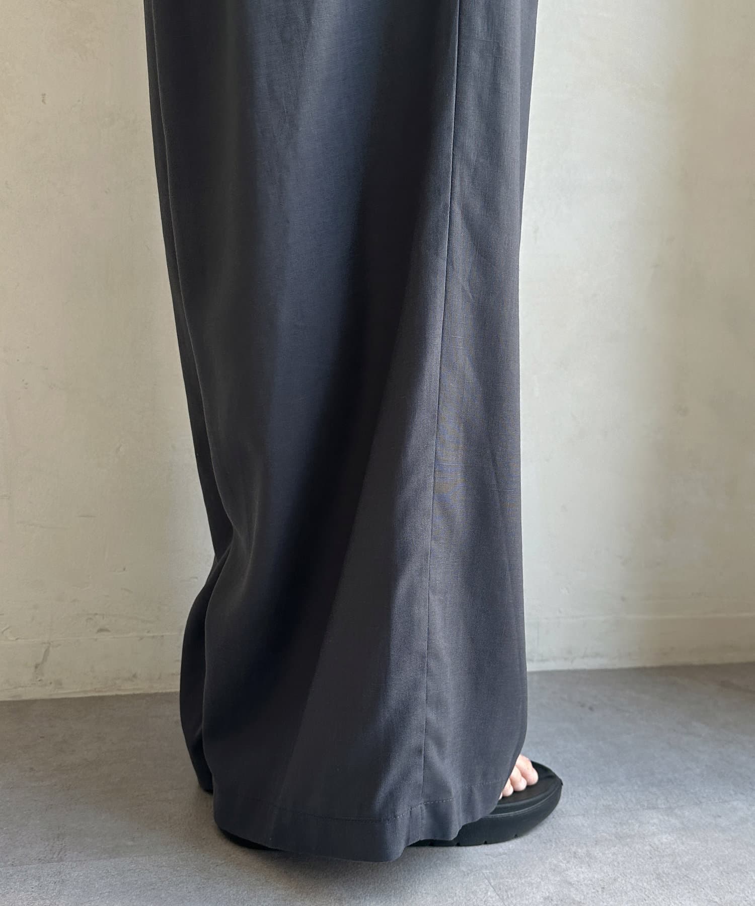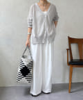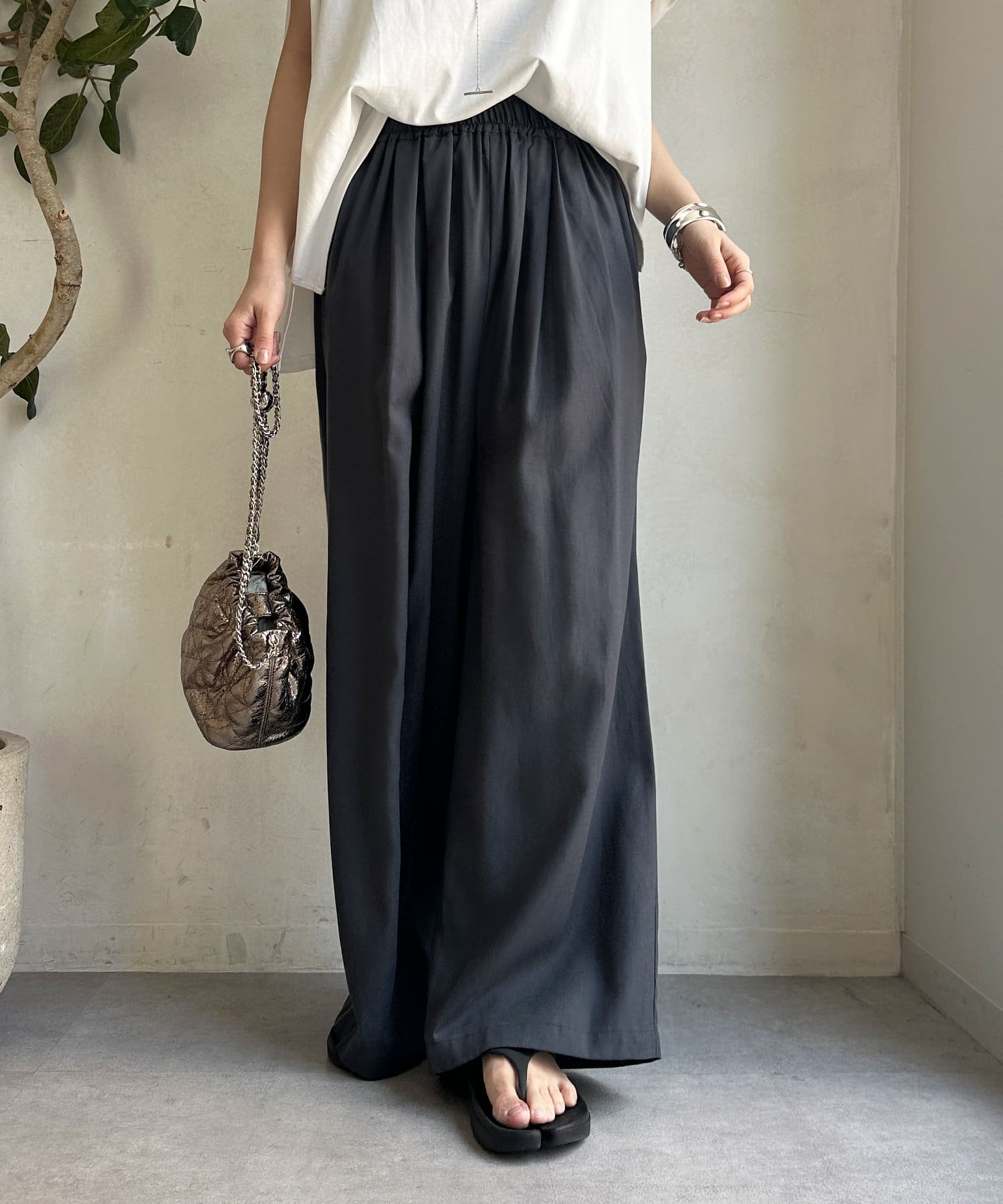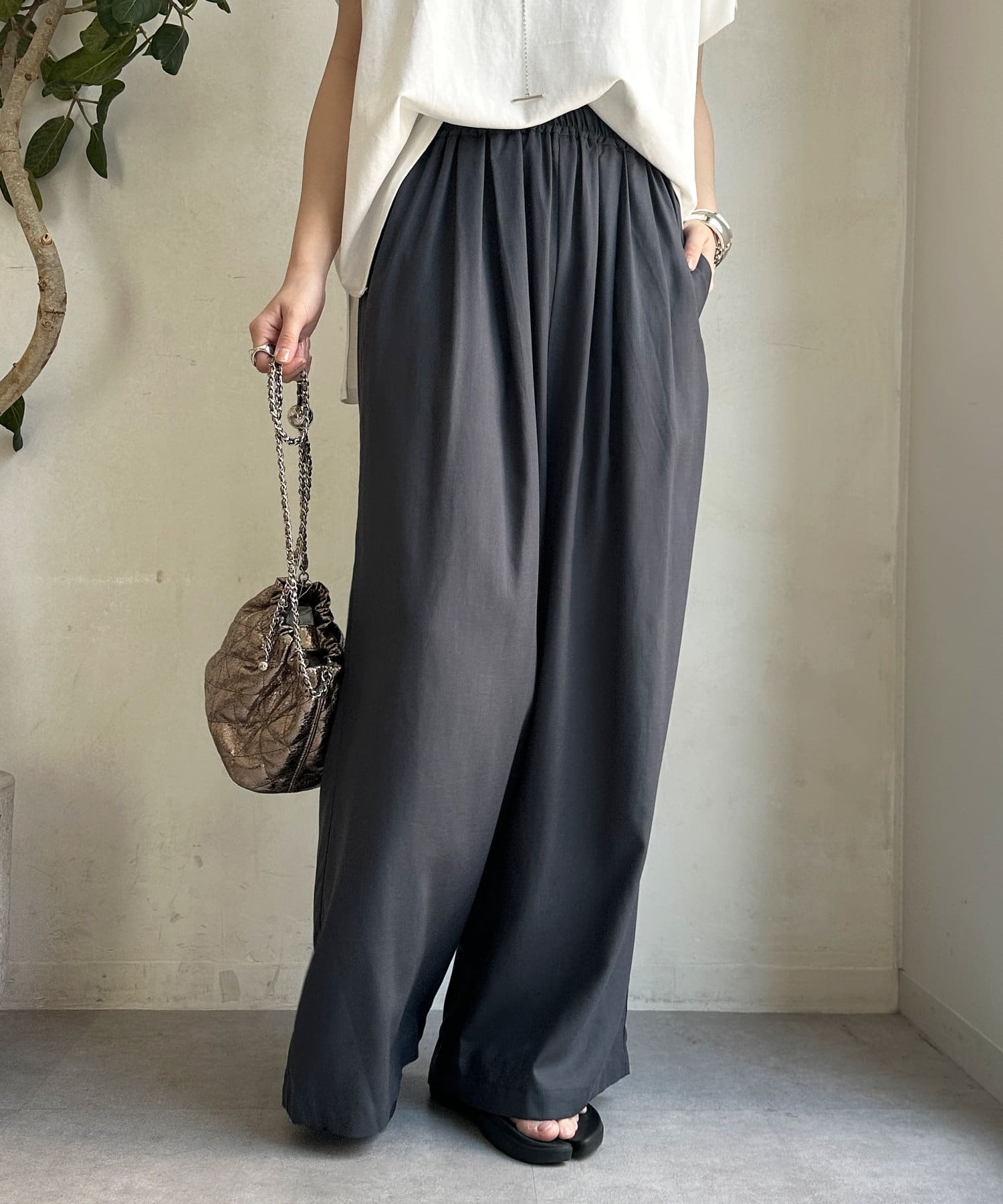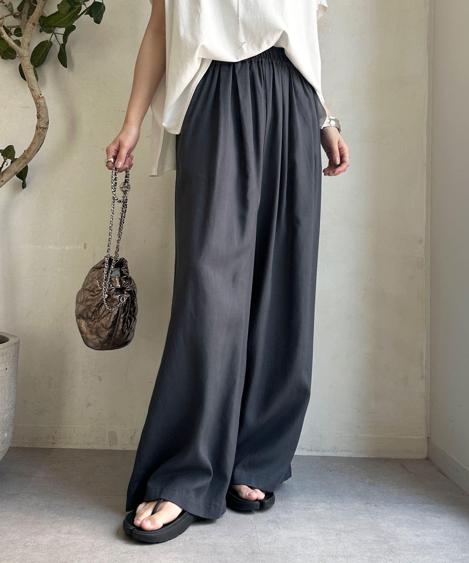 リネンライクの素材に、上品な光沢感や落ち感をプラスしてくれるテンセルの素材をミックス。