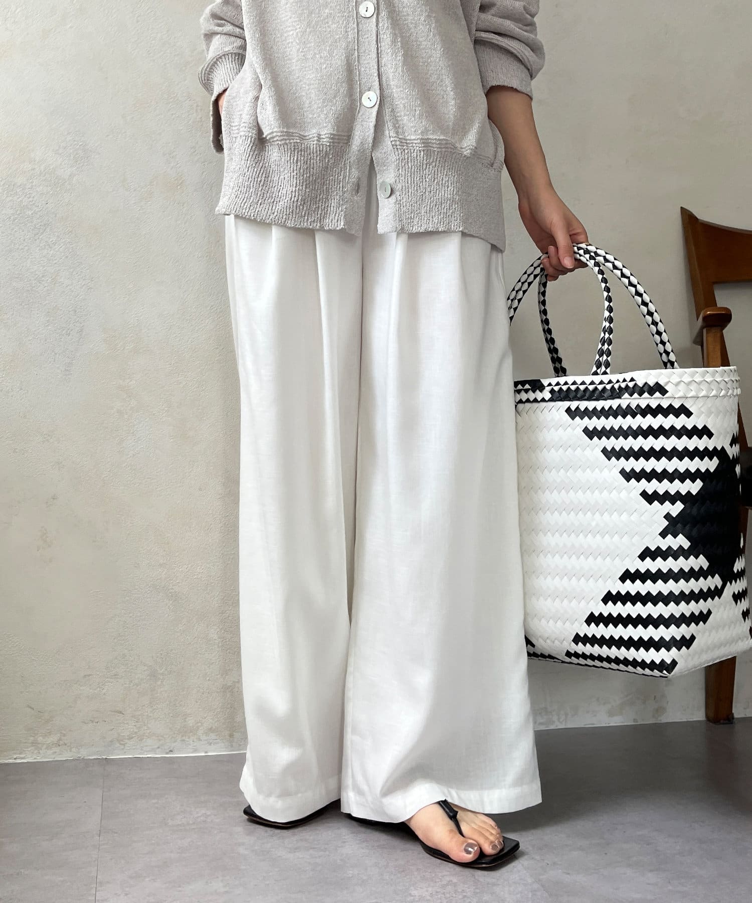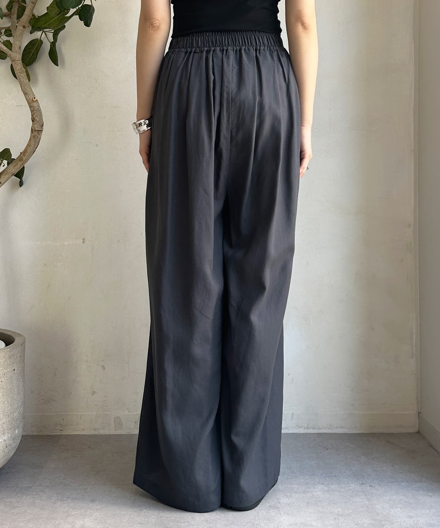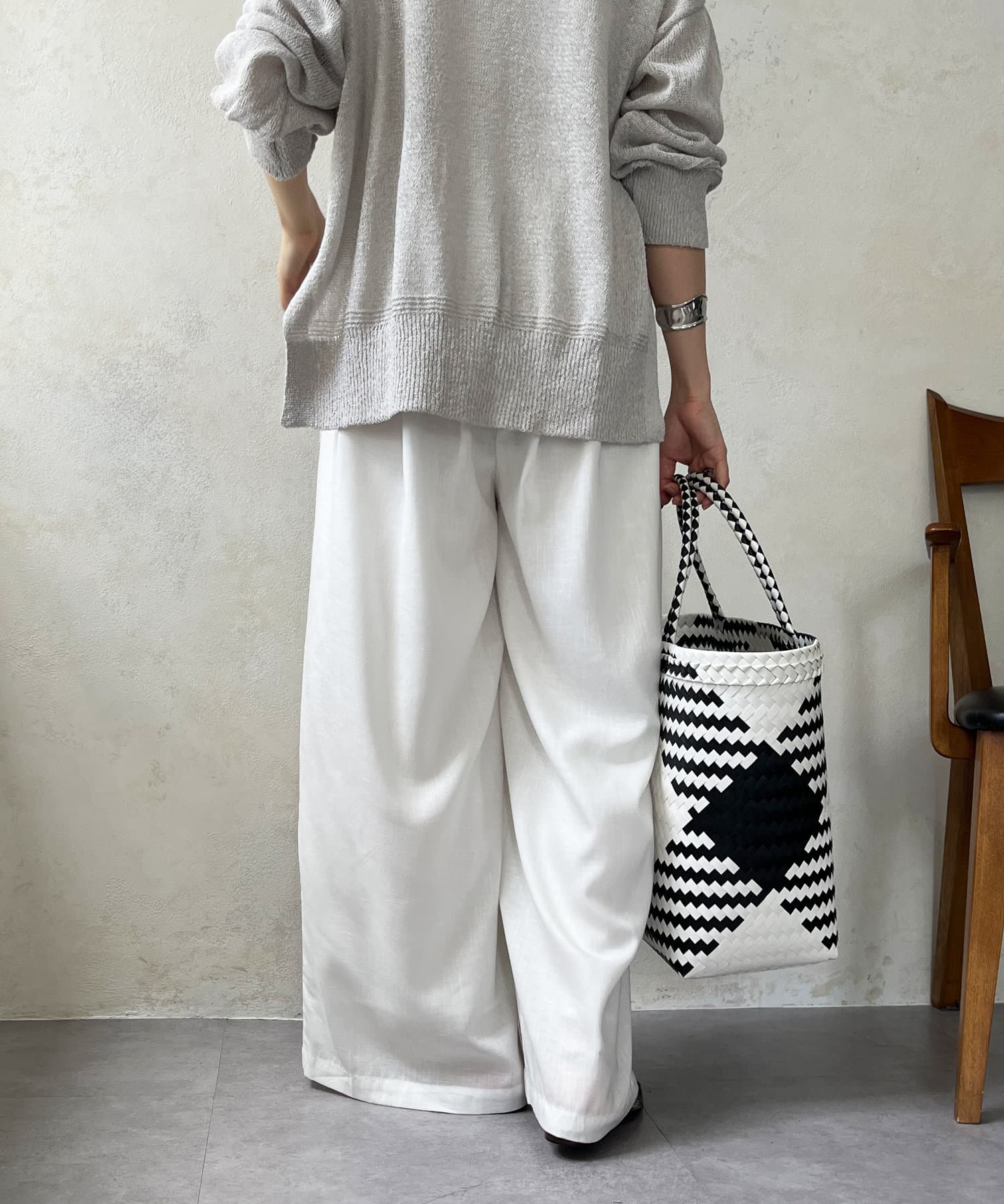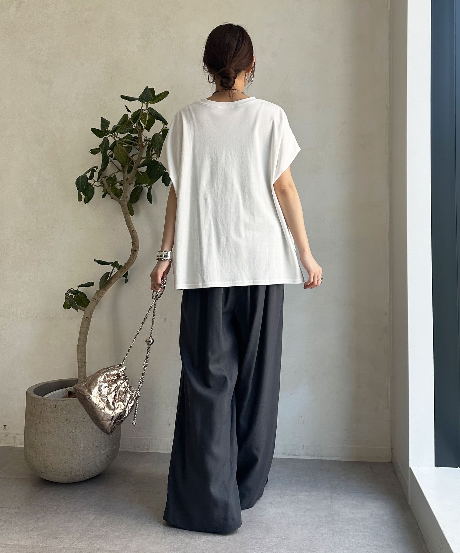 リネンライクの素材に、上品な光沢感や落ち感をプラスしてくれるテンセルの素材をミックス。