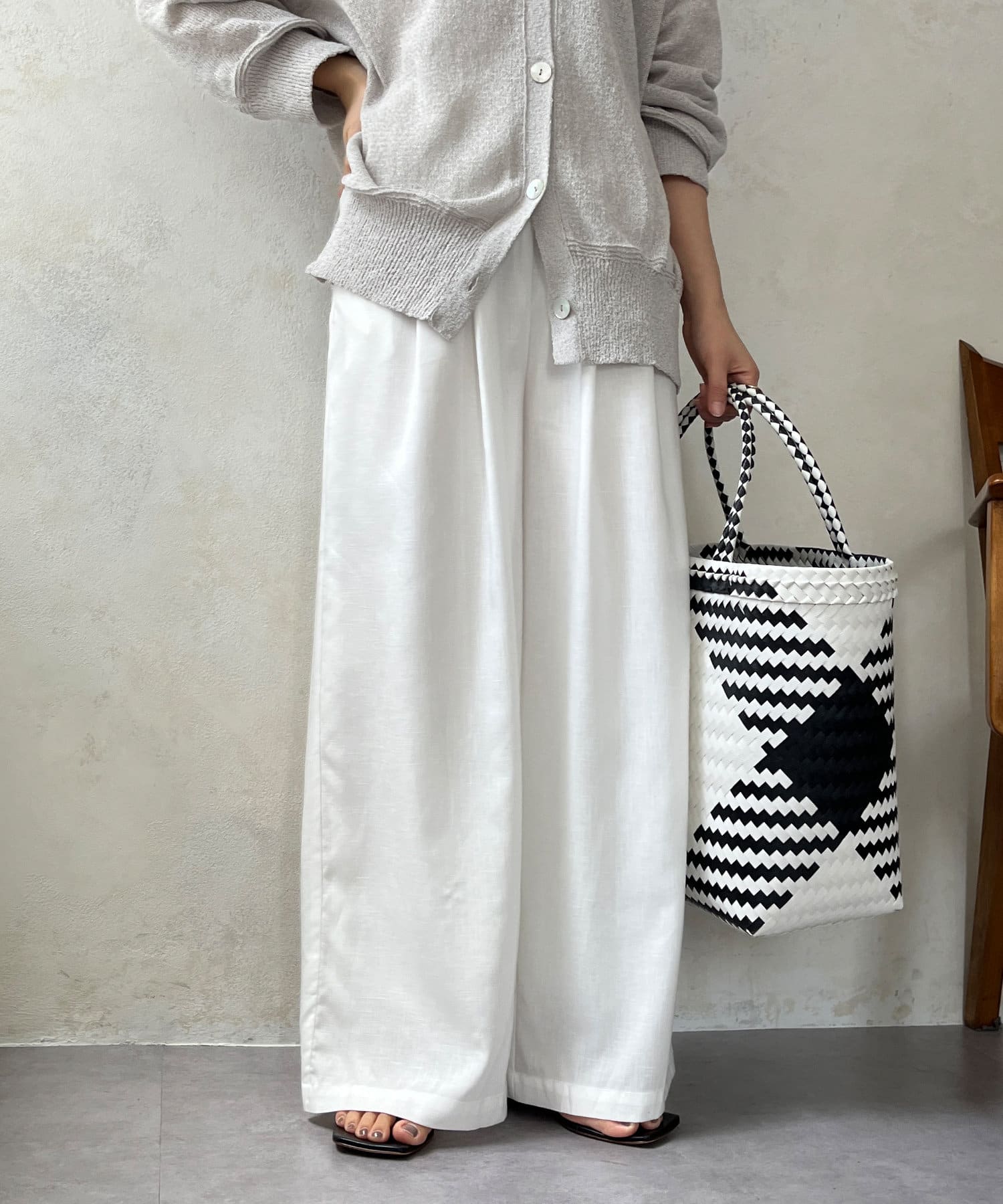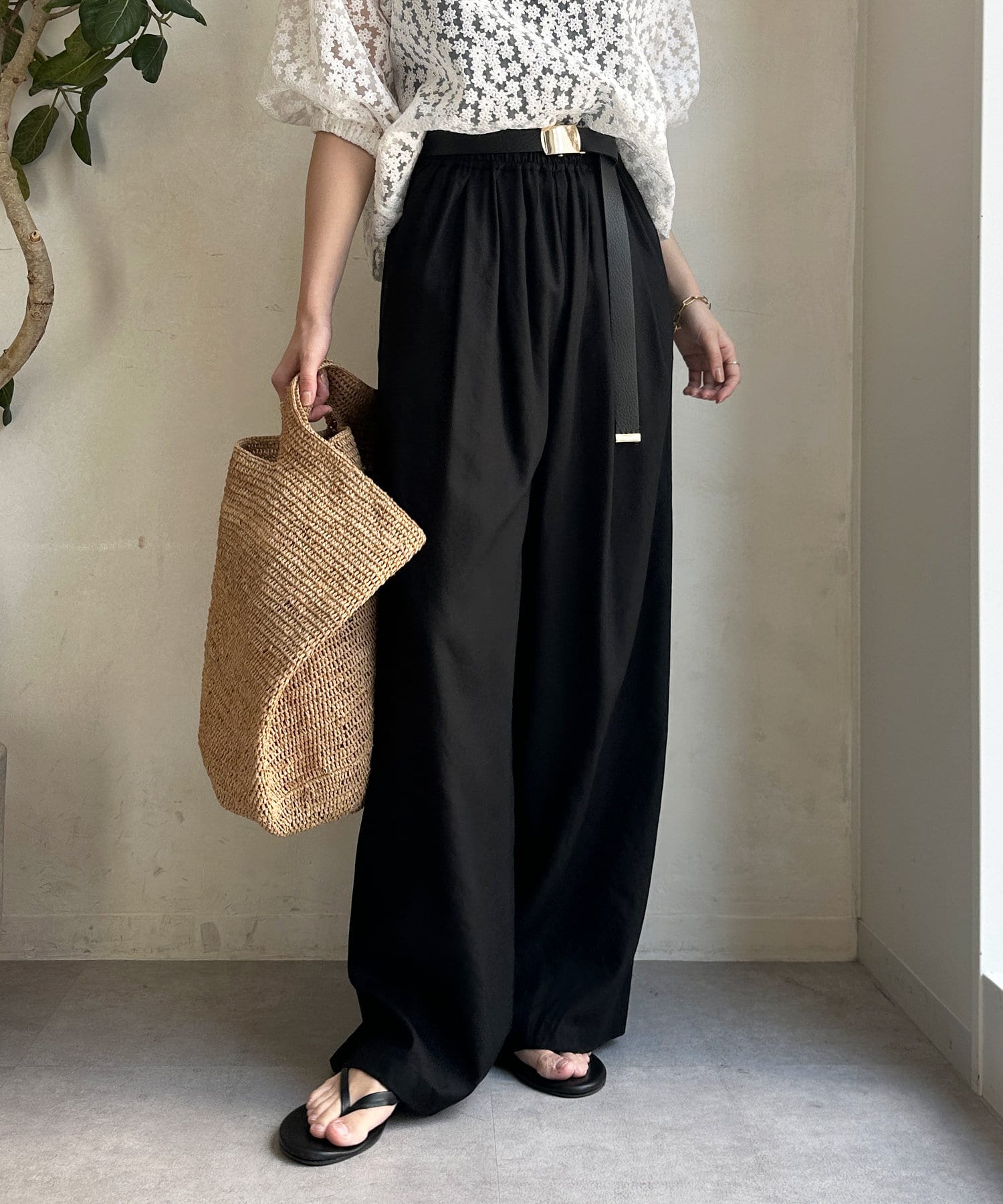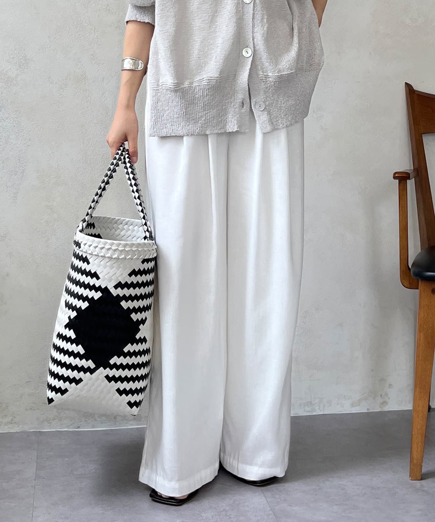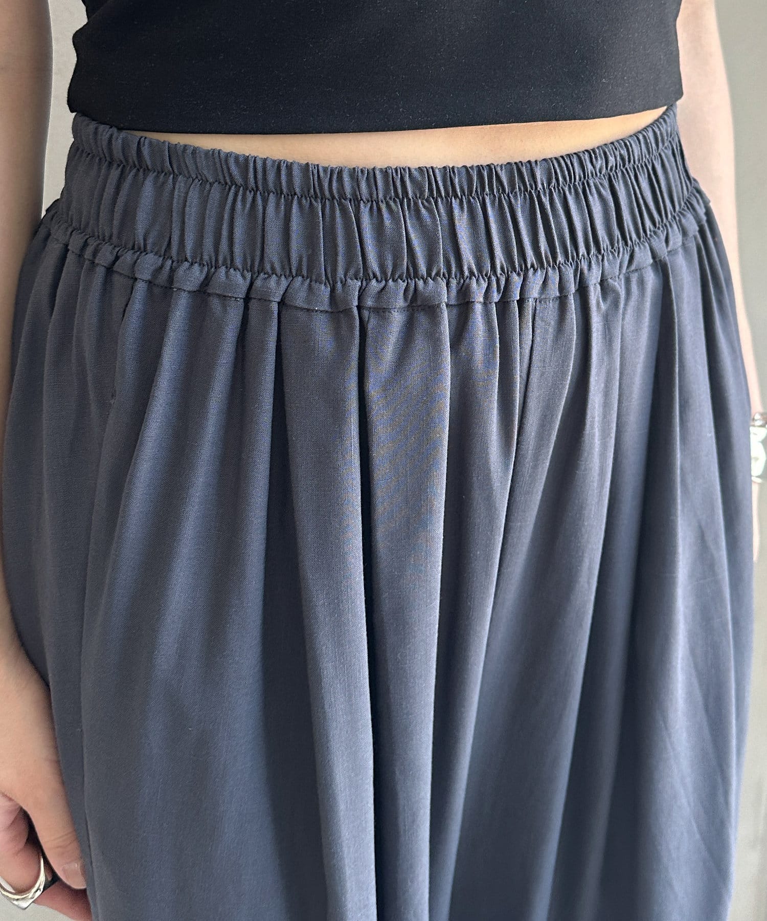 リネンライクの素材に、上品な光沢感や落ち感をプラスしてくれるテンセルの素材をミックス。