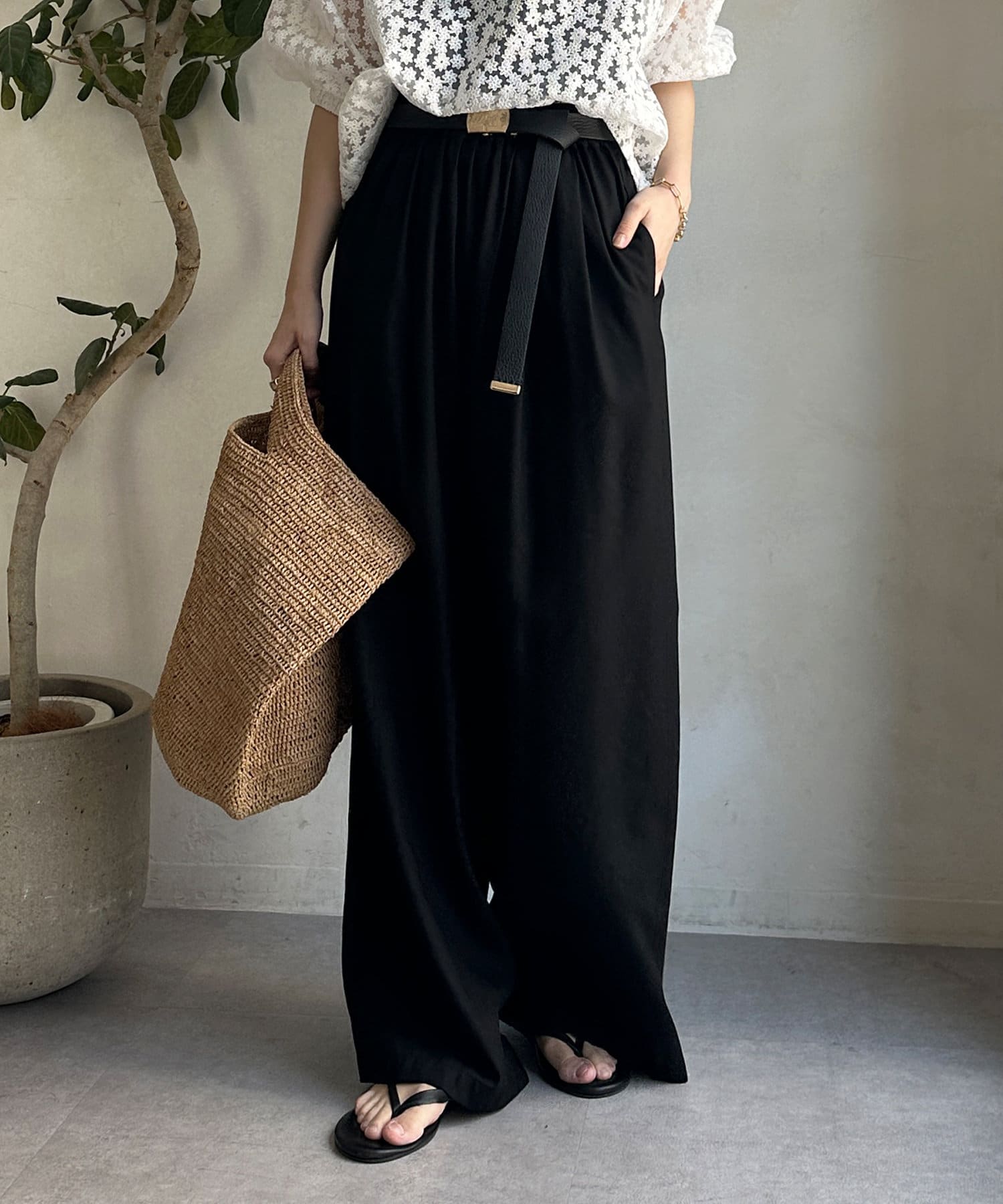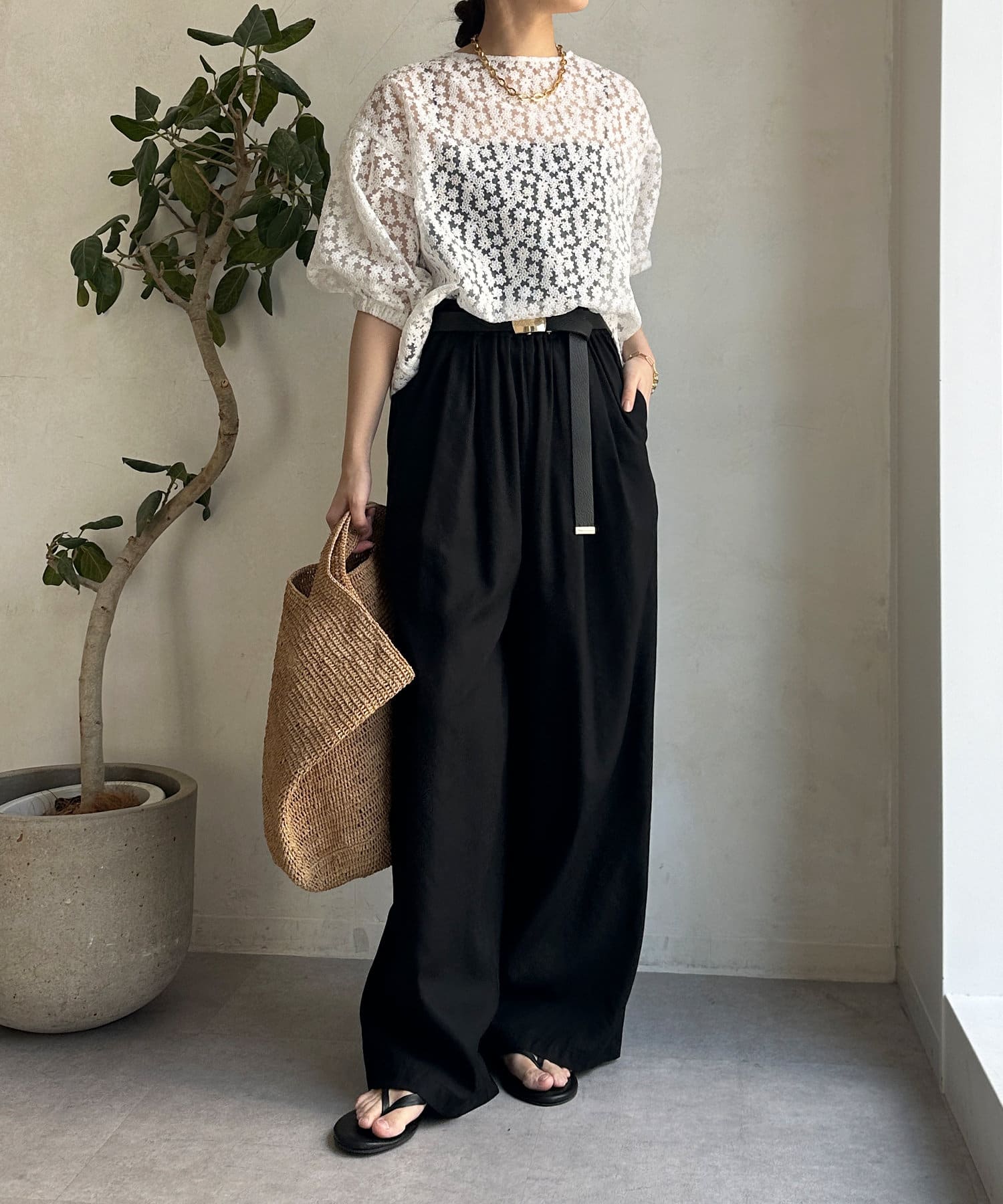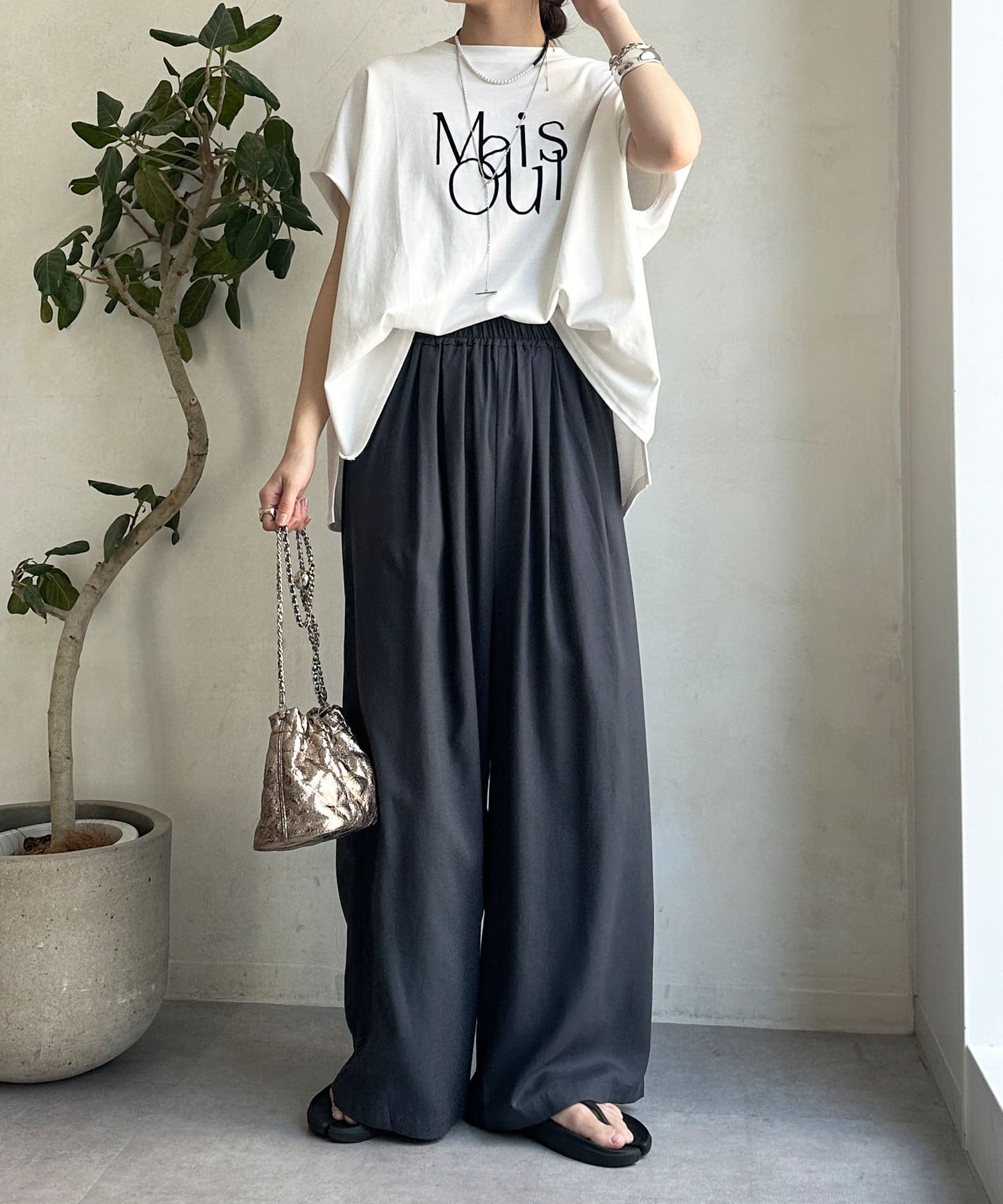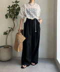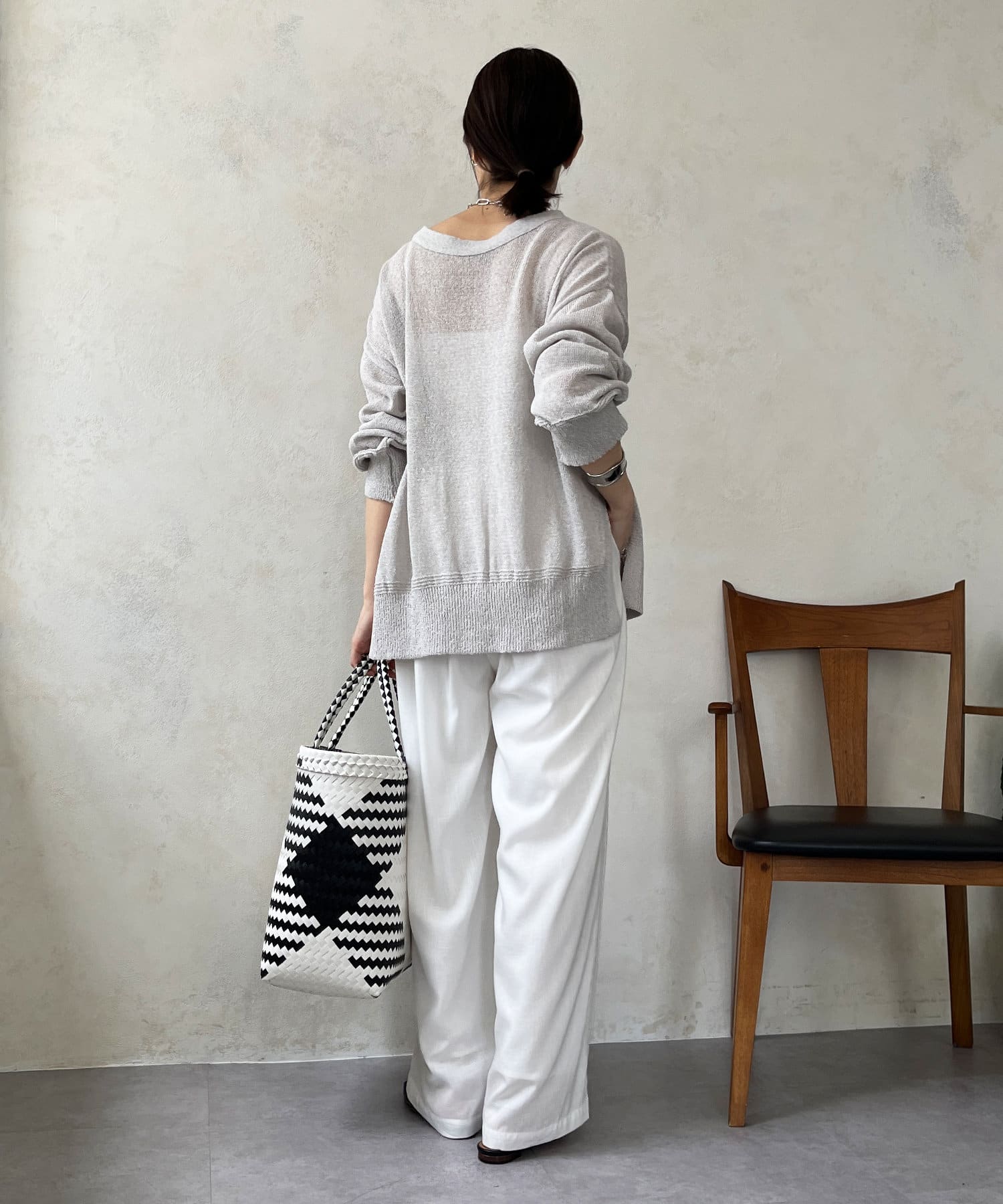 リネンライクの素材に、上品な光沢感や落ち感をプラスしてくれるテンセルの素材をミックス。