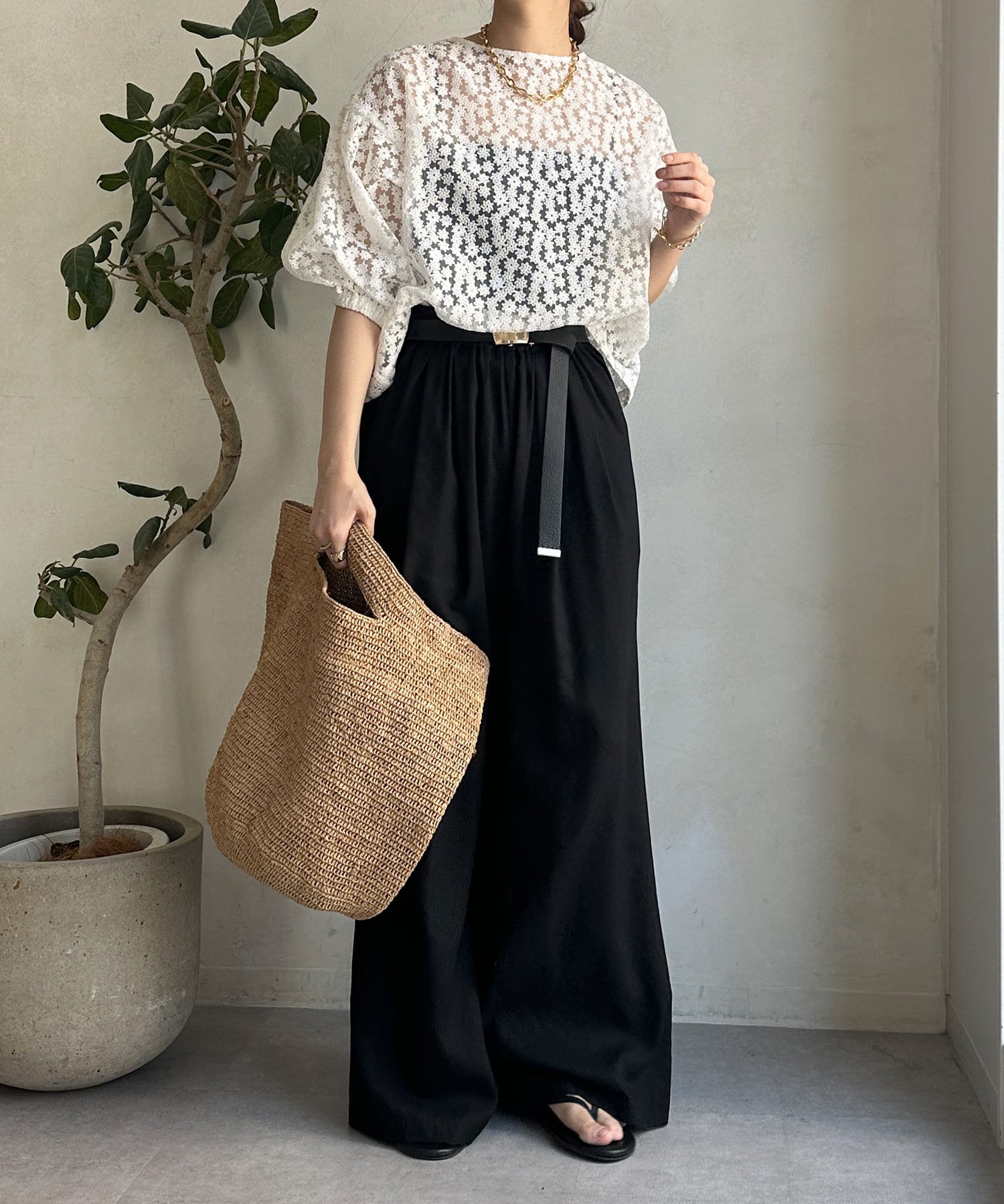 程よくワイドでストレートなシルエットが、品よくカジュアルな印象に仕上がりますよ。