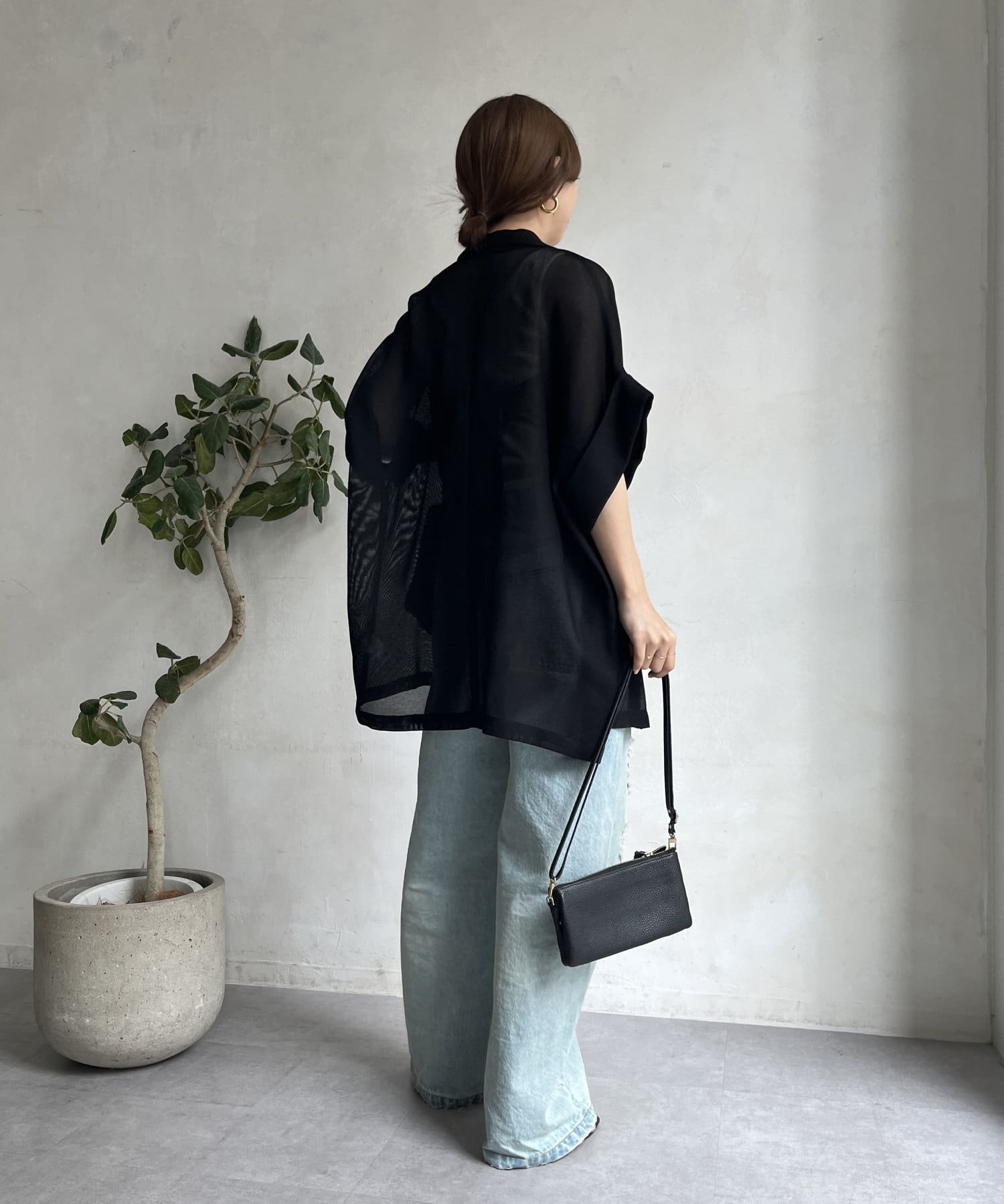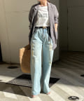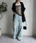腰位置でずるっとラフに着るのがおすすめのワイドシルエットで仕上げています。