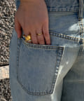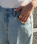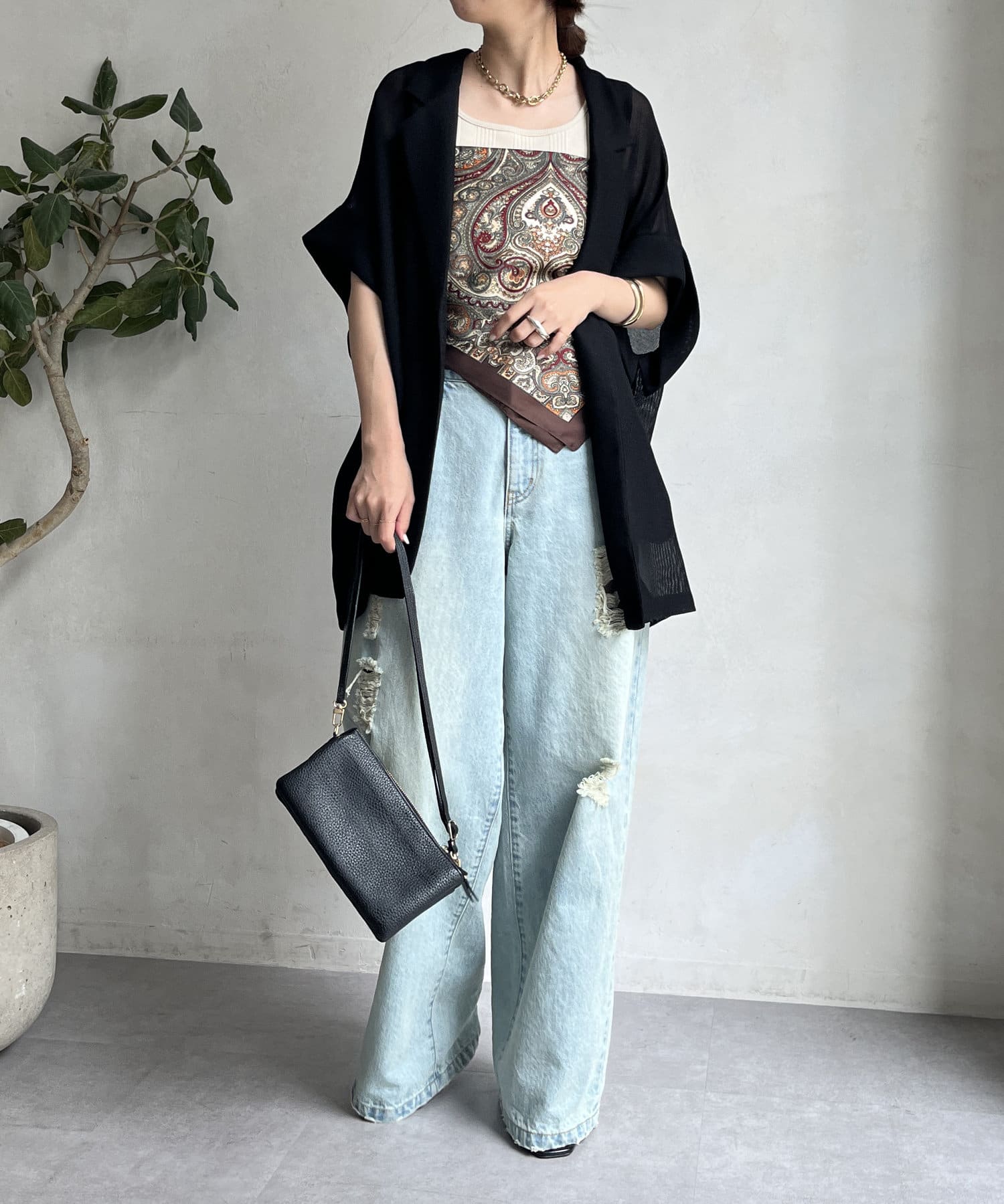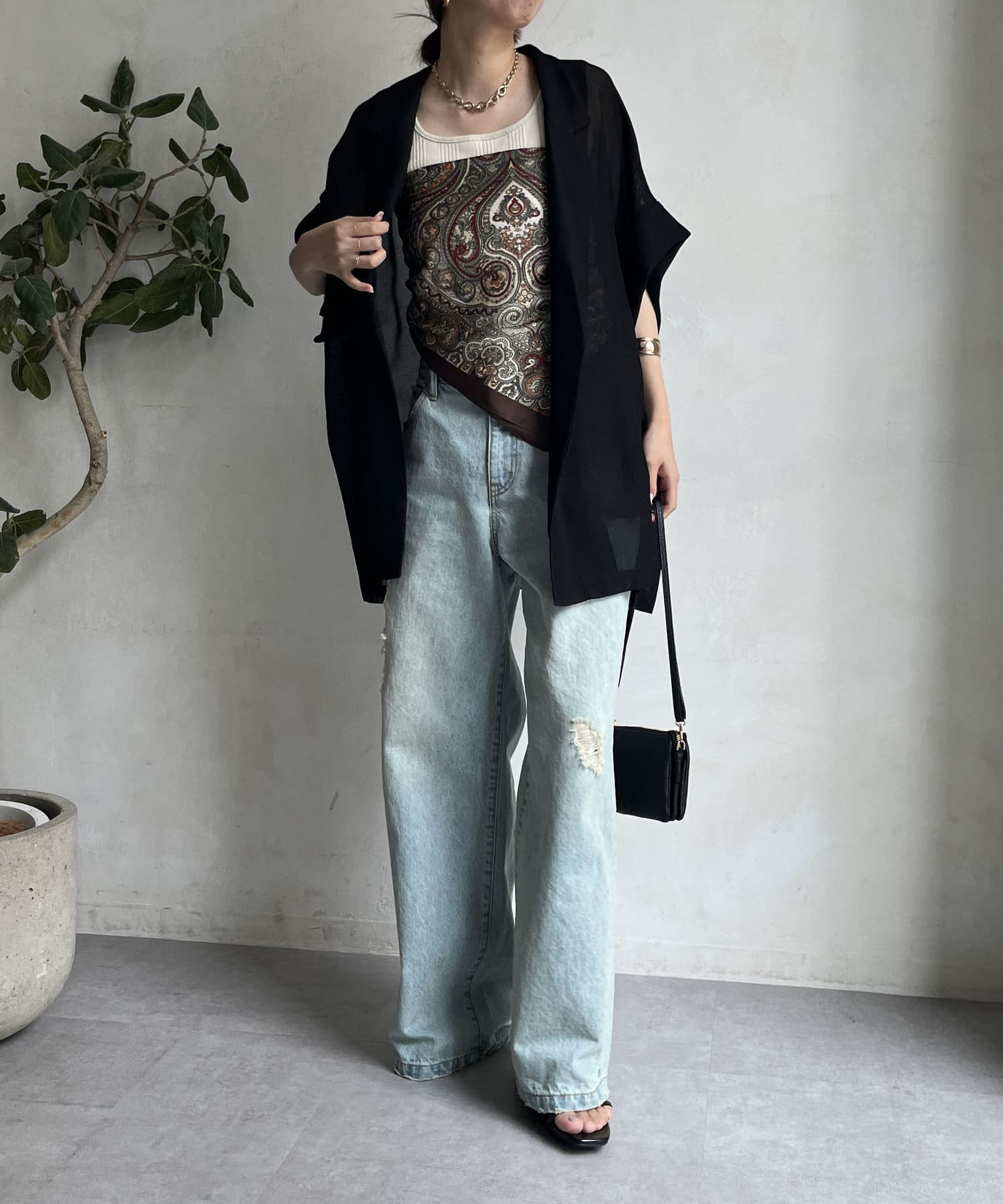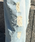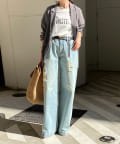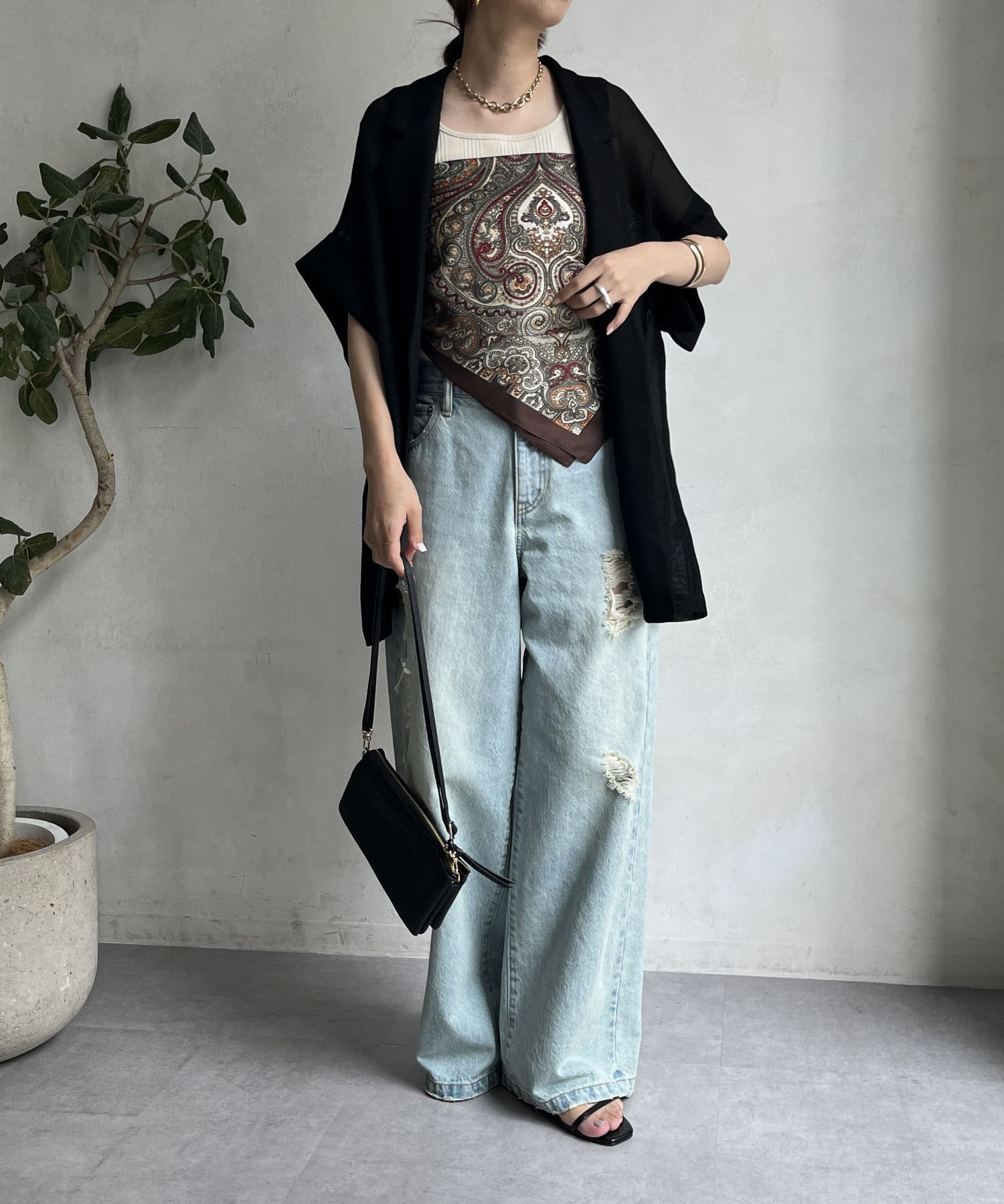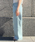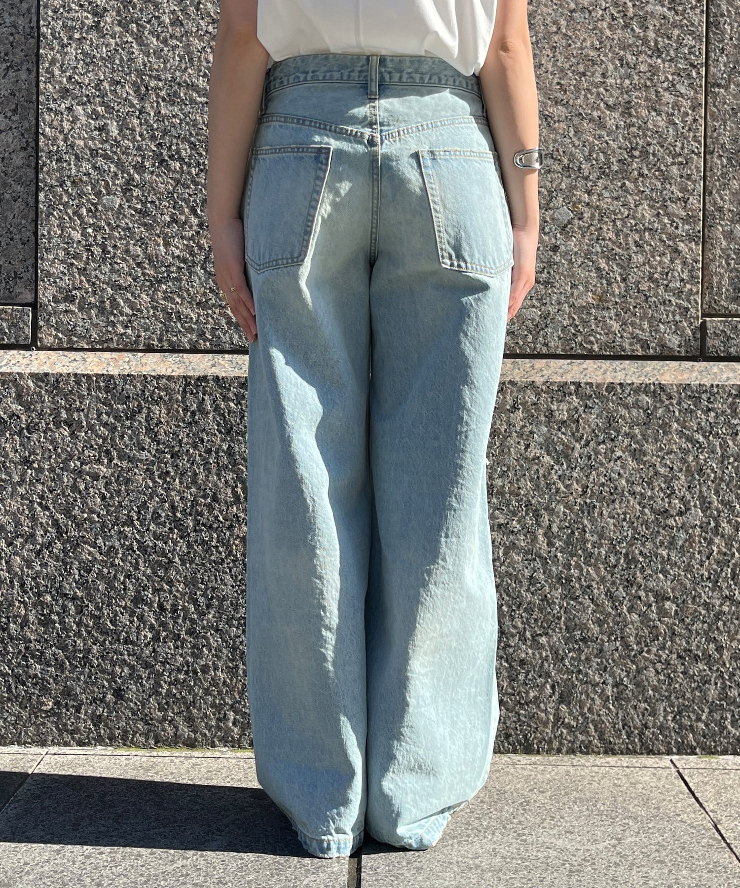 ローウエストで仕上げたDOUDOUでは少し新鮮なバランスのダメージデニム。