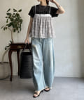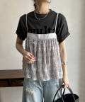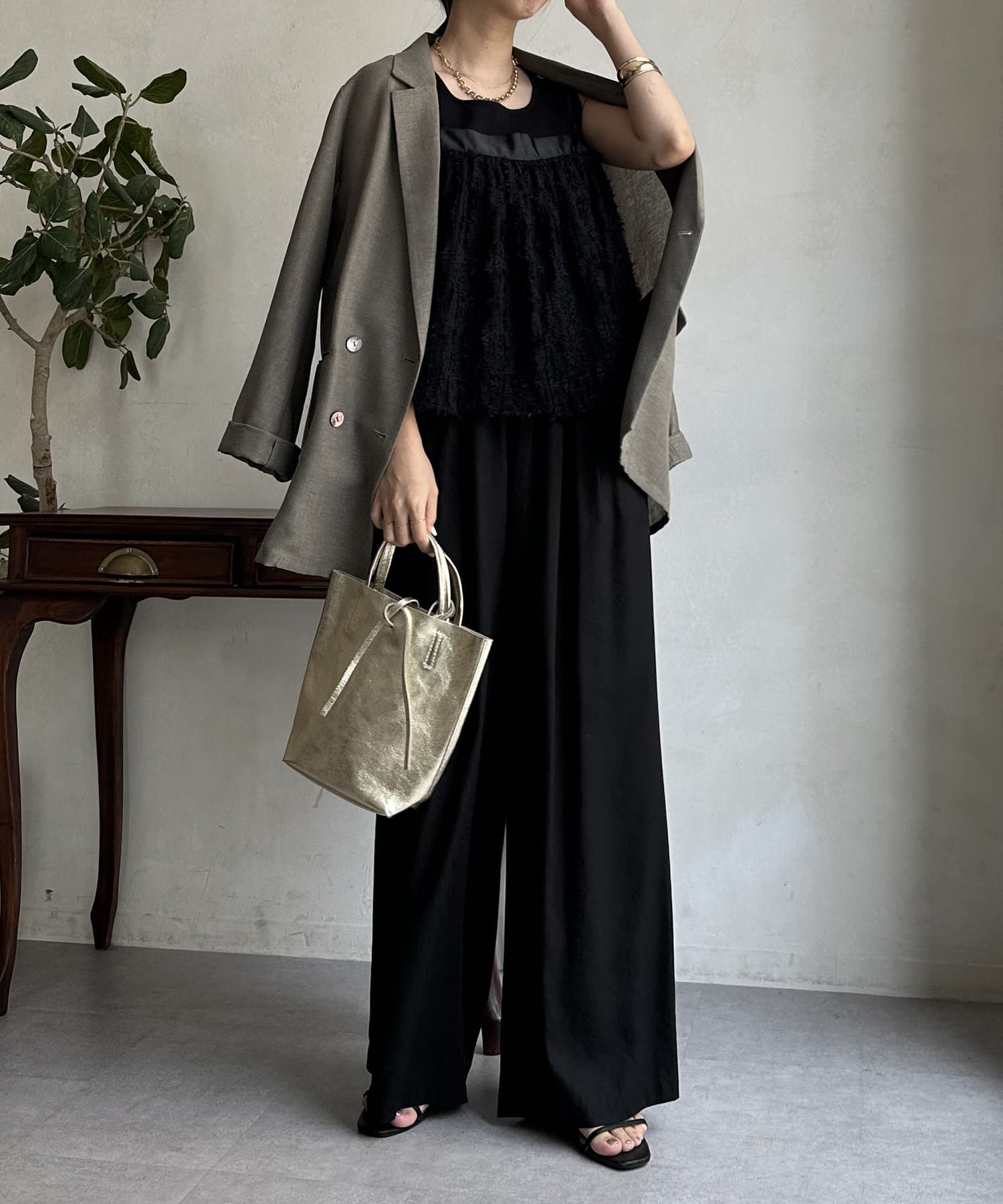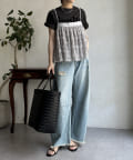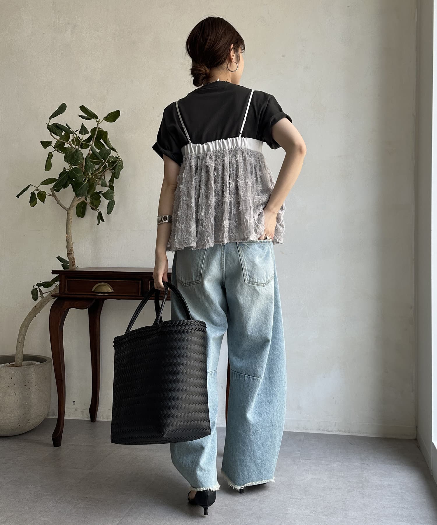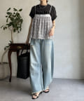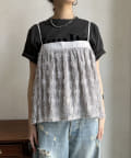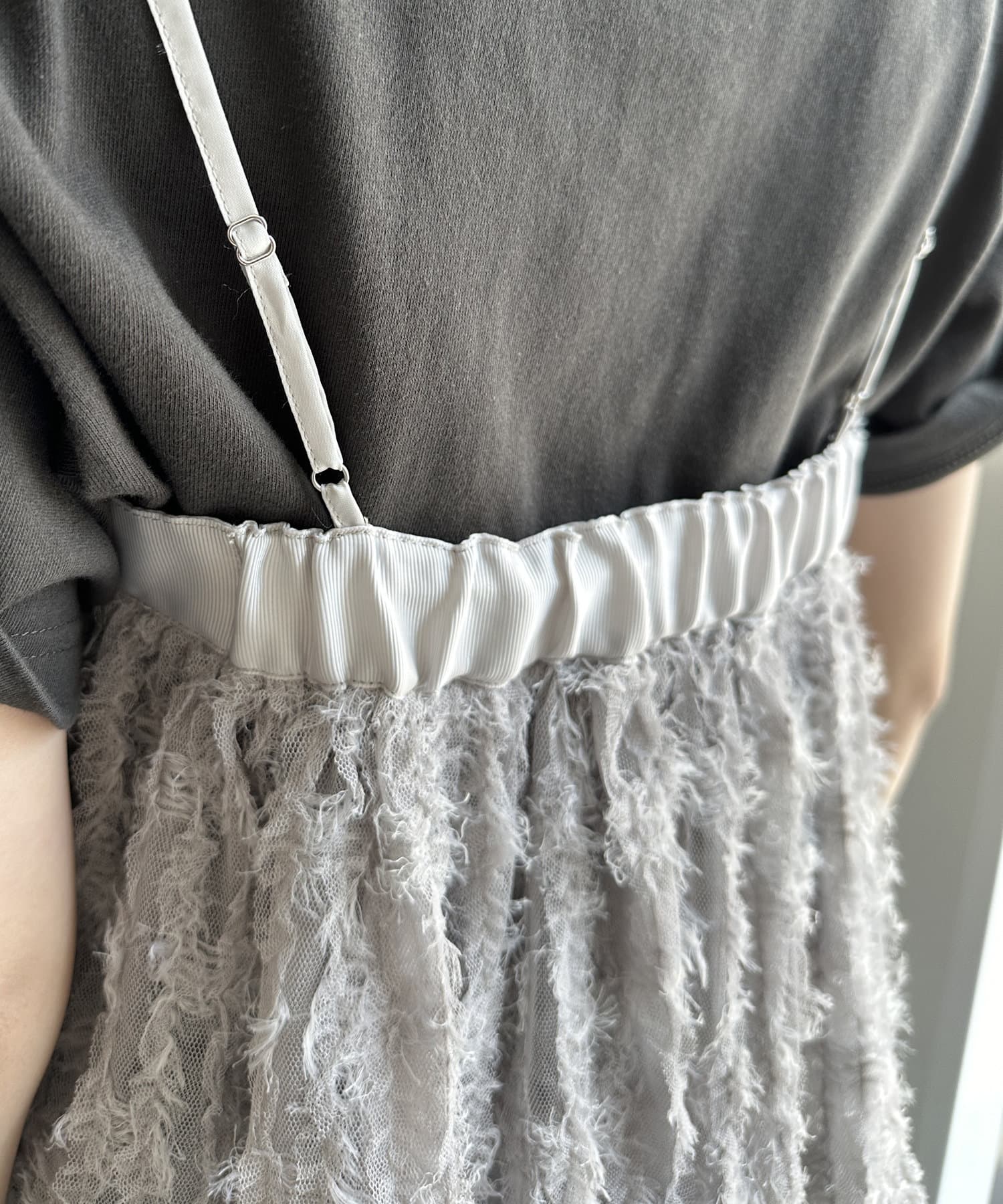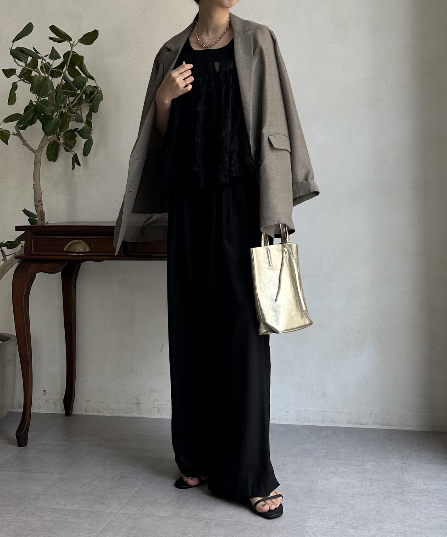 Tシャツやニットタンクとレイヤードするだけで甘くなりすぎず、簡単に今らしいスタイルが完成しますよ!