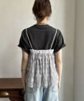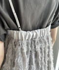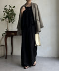 胸下からややフレアに広がるシルエットに、華奢な肩紐が抜け感をプラス。