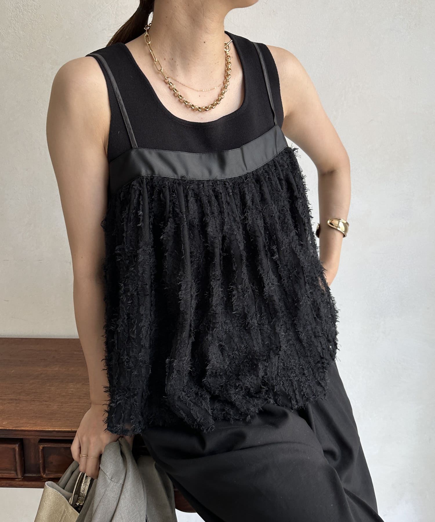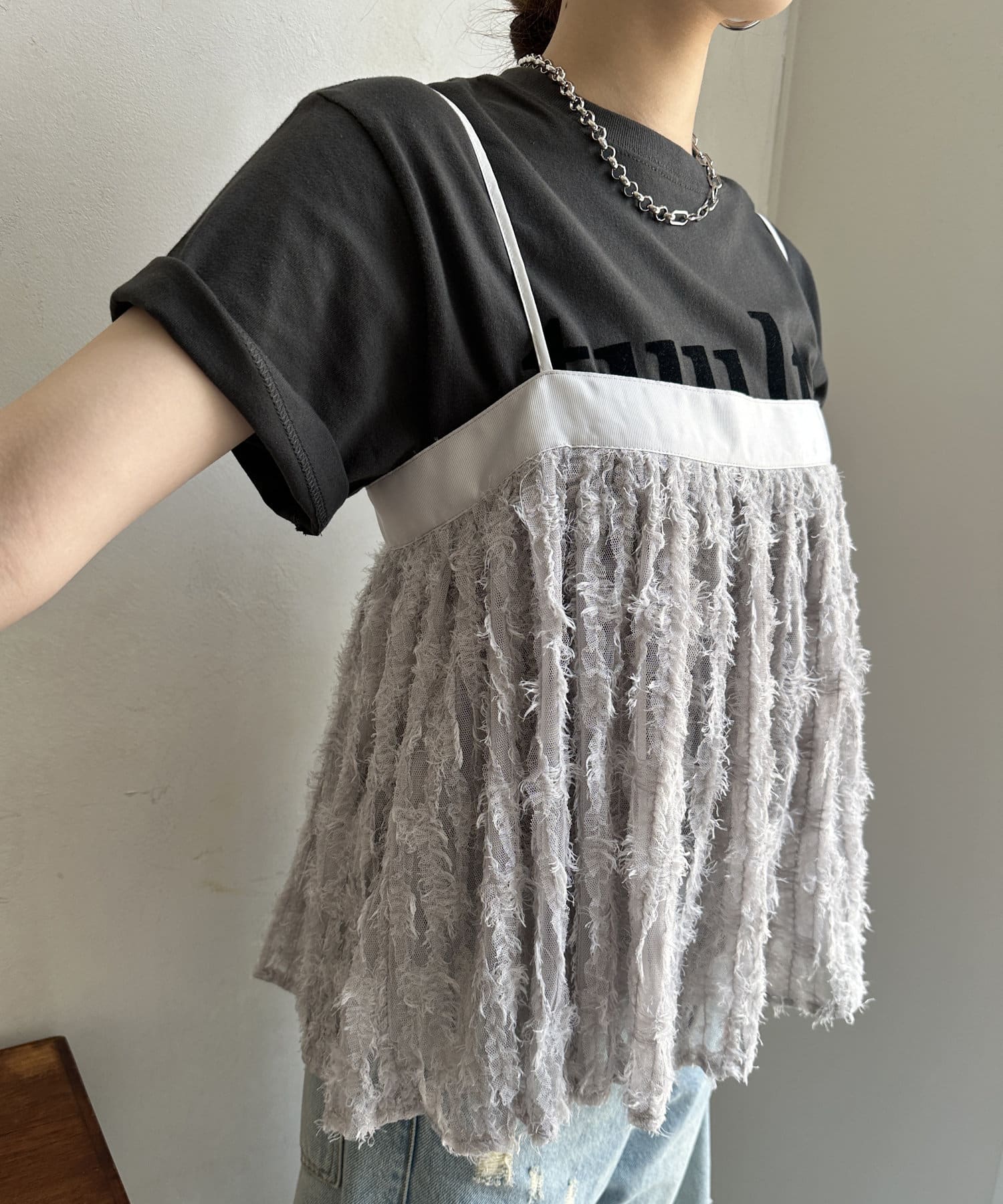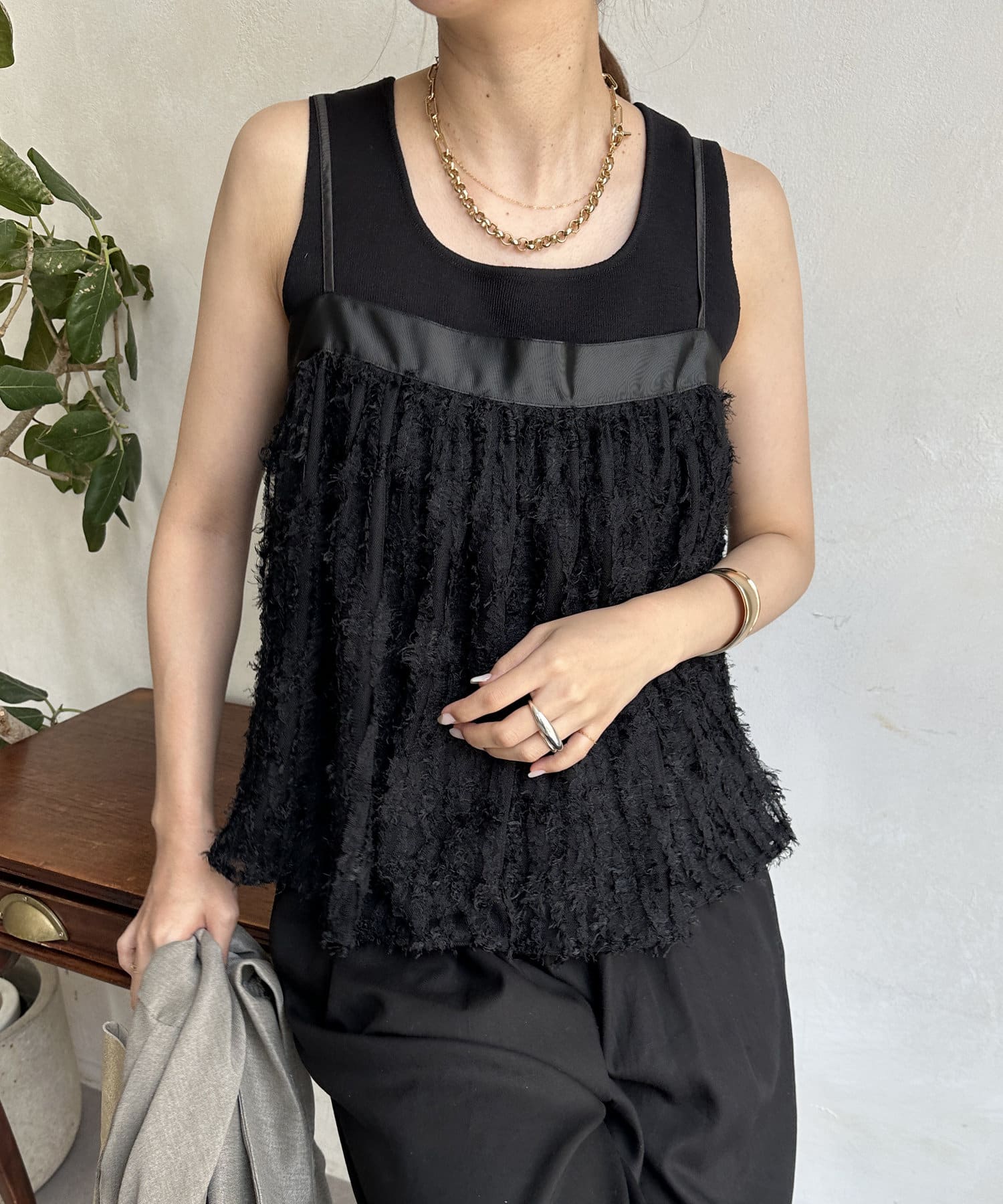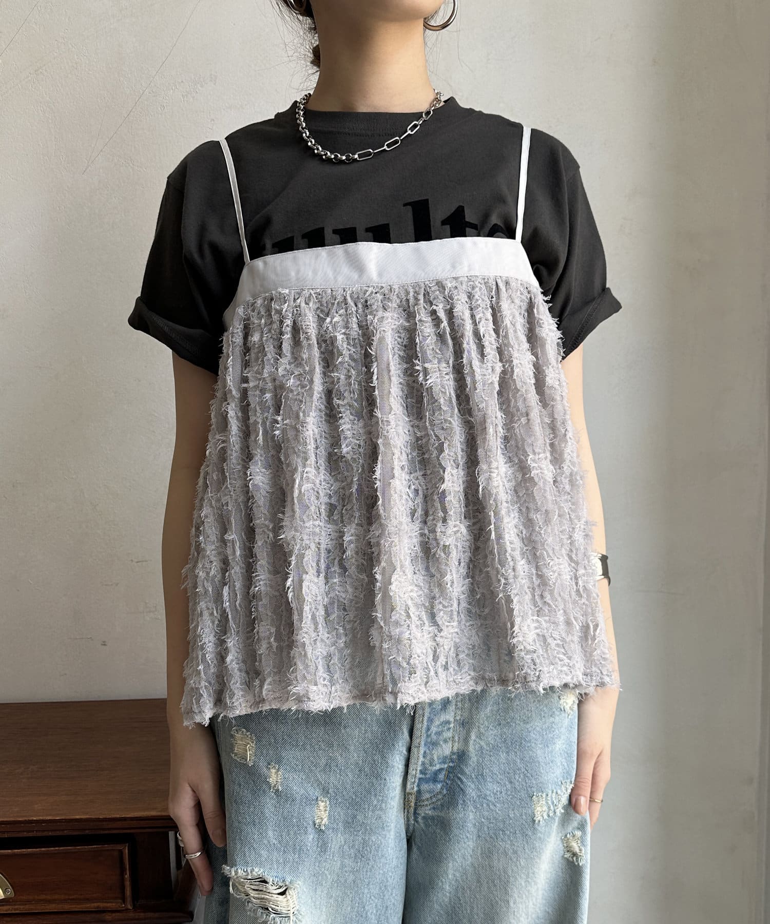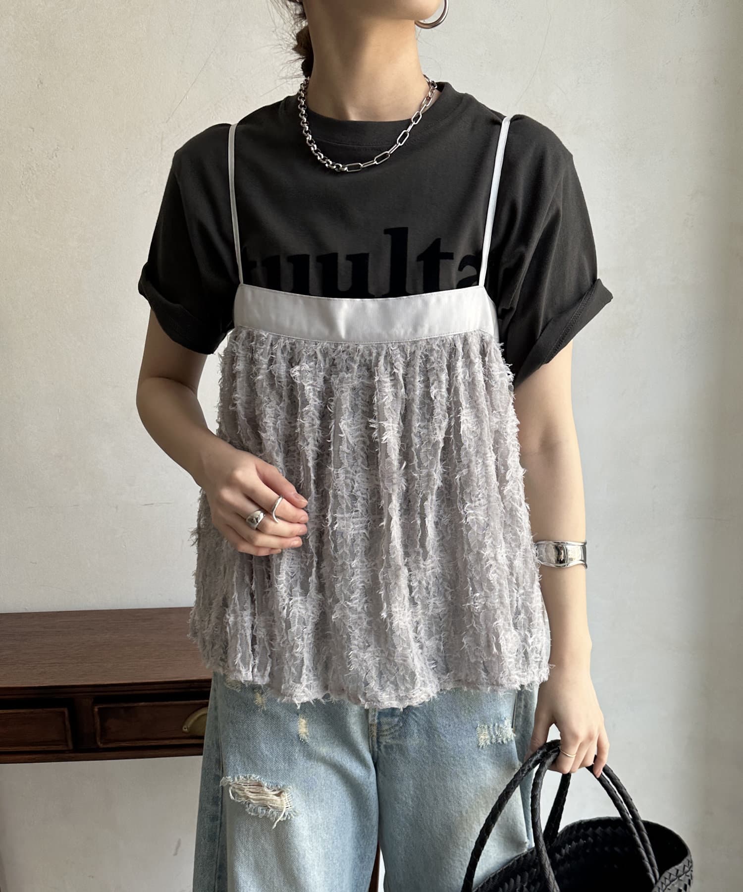 トレンドのフリンジデザインをキャミに落とし込んだ1着。