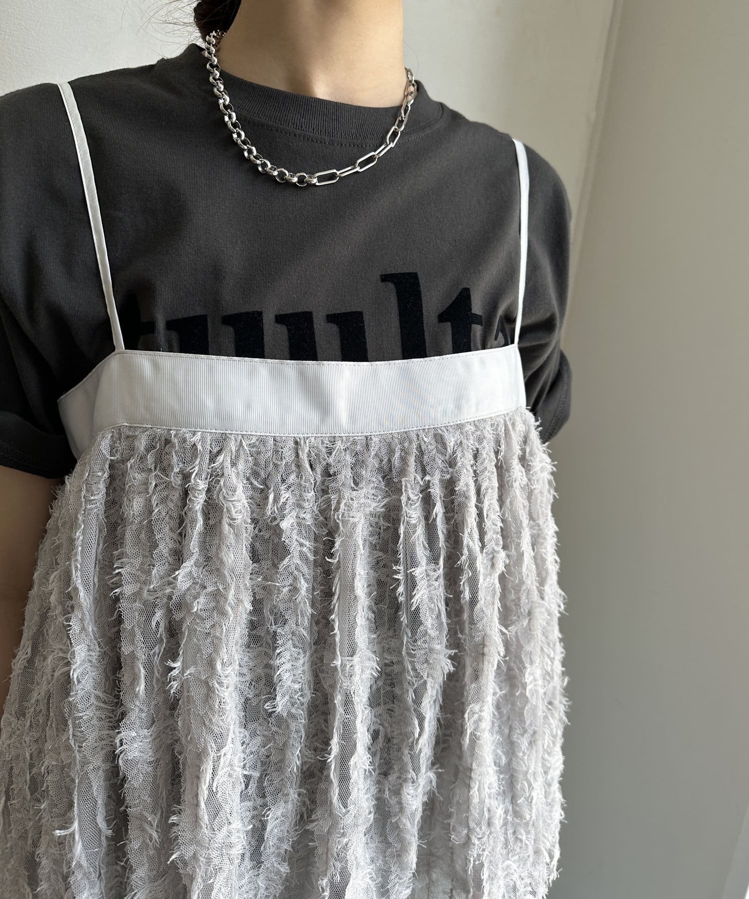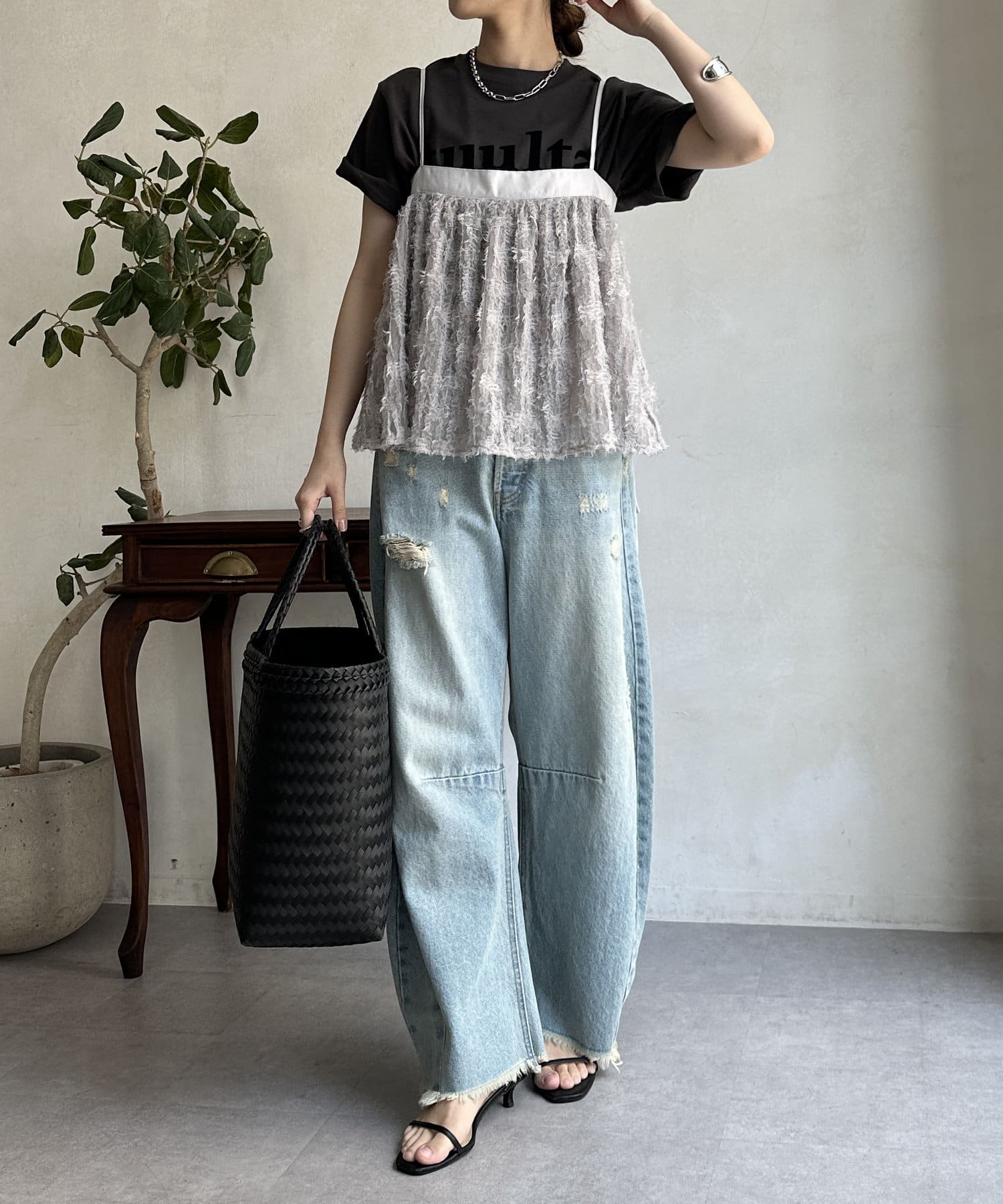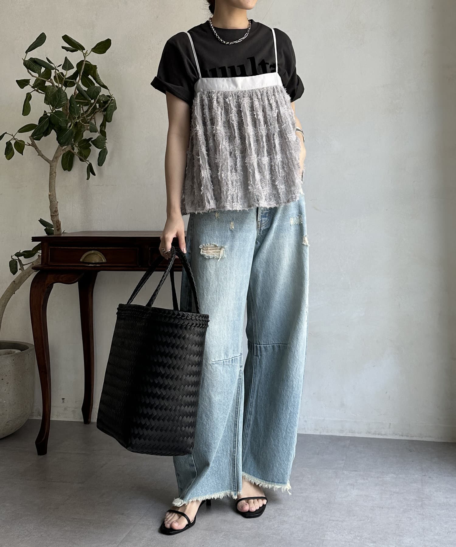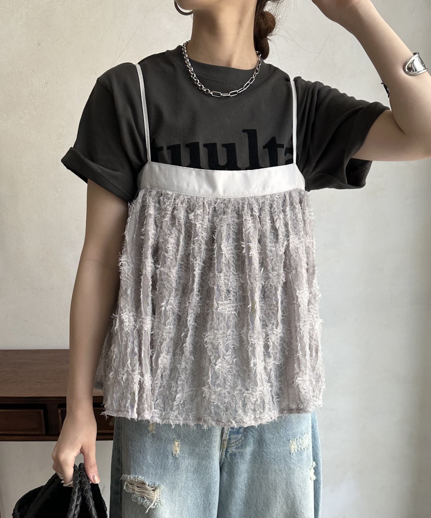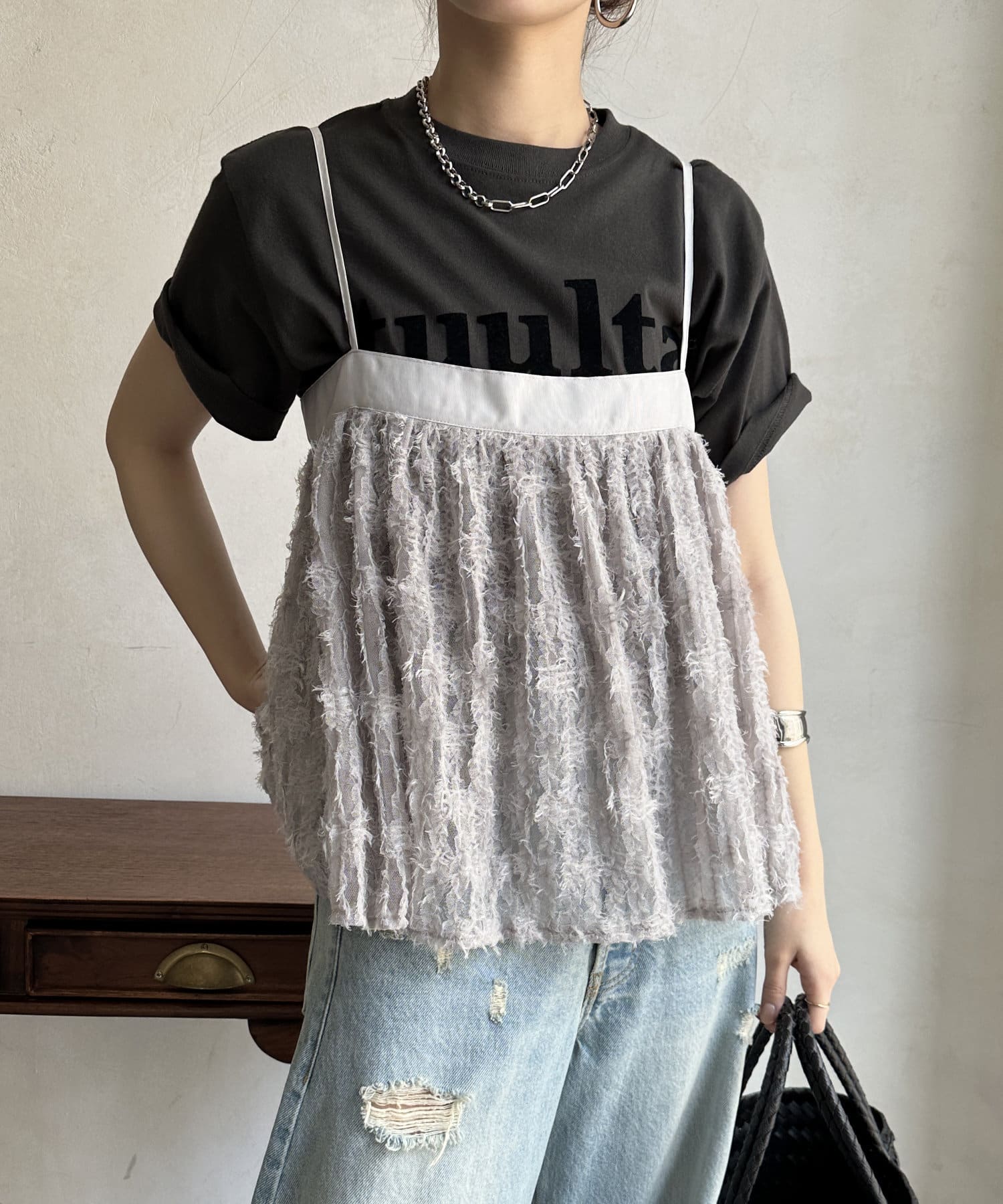 トレンドのフリンジデザインをキャミに落とし込んだ1着。