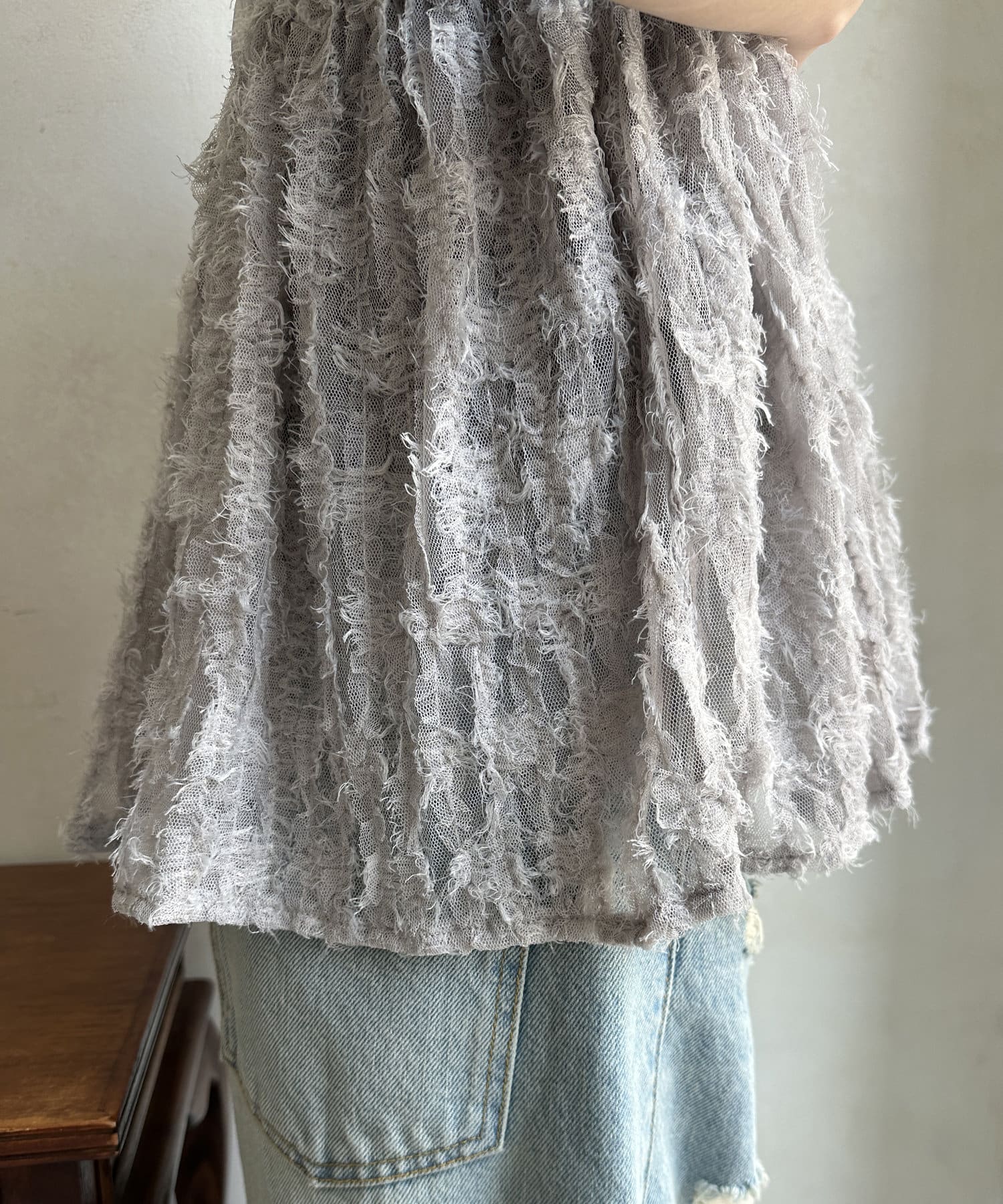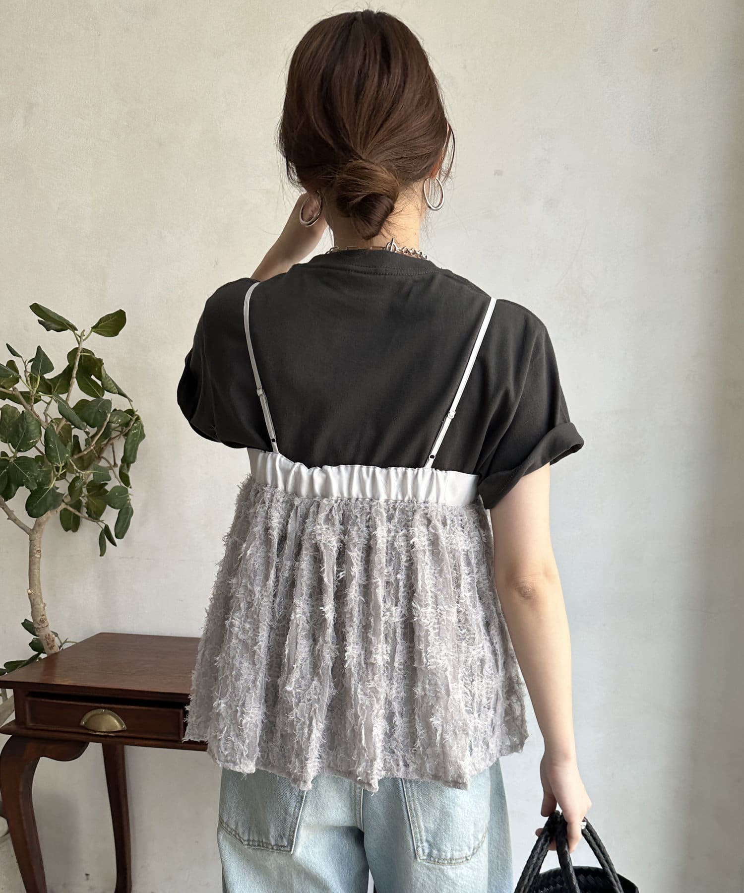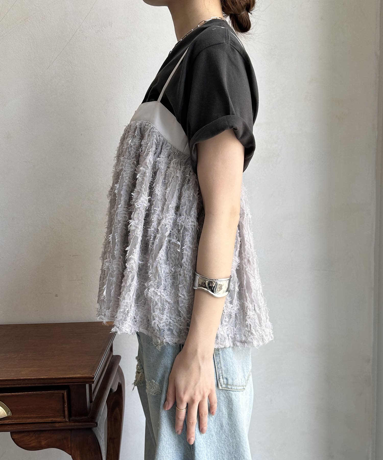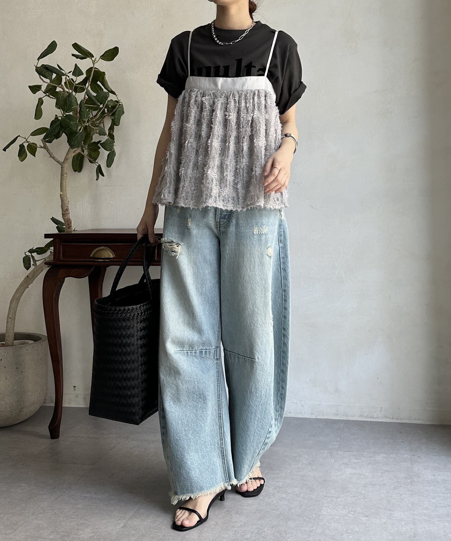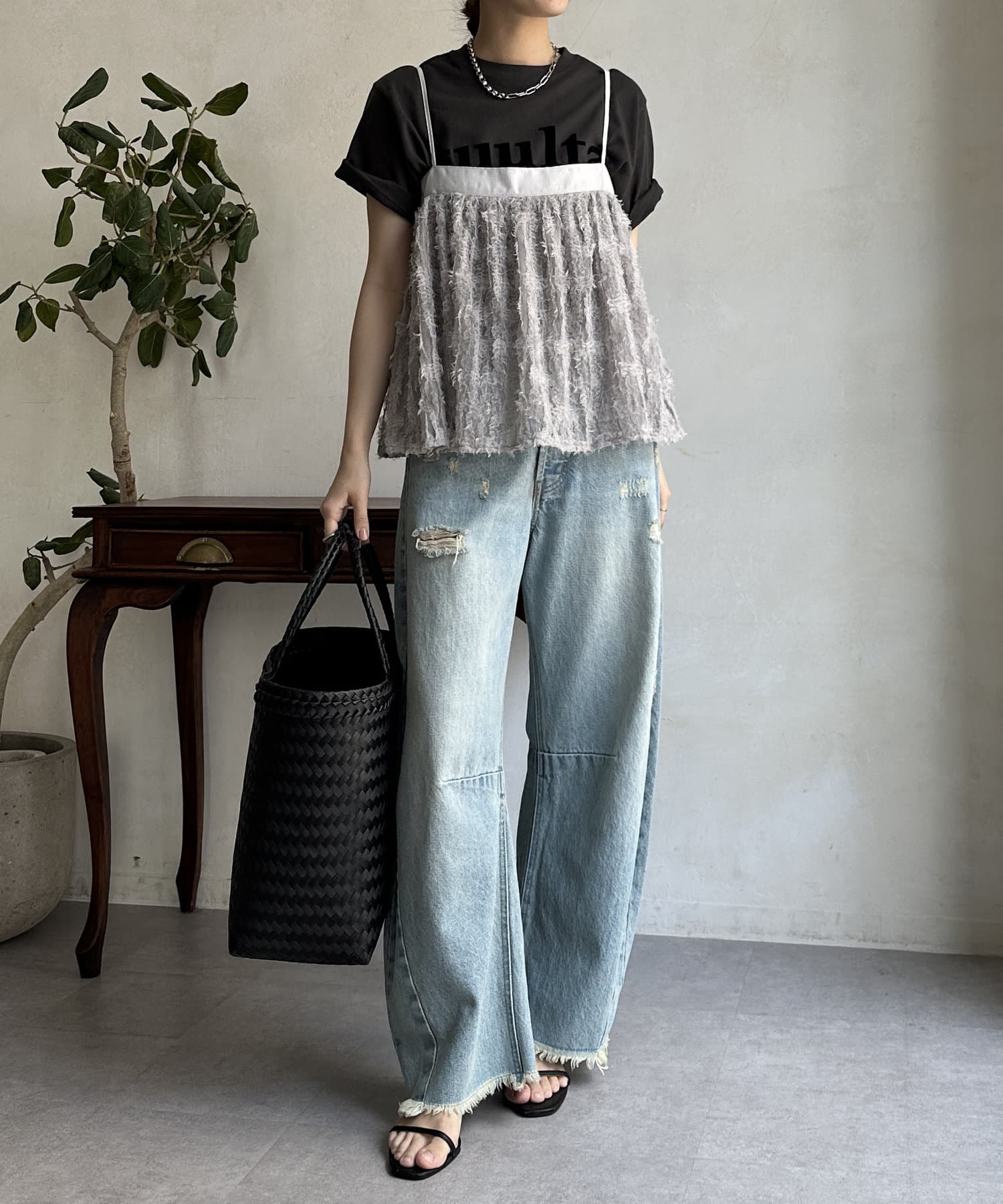 トレンドのフリンジデザインをキャミに落とし込んだ1着。