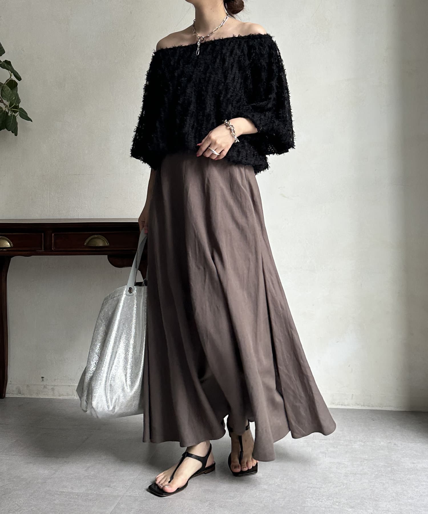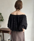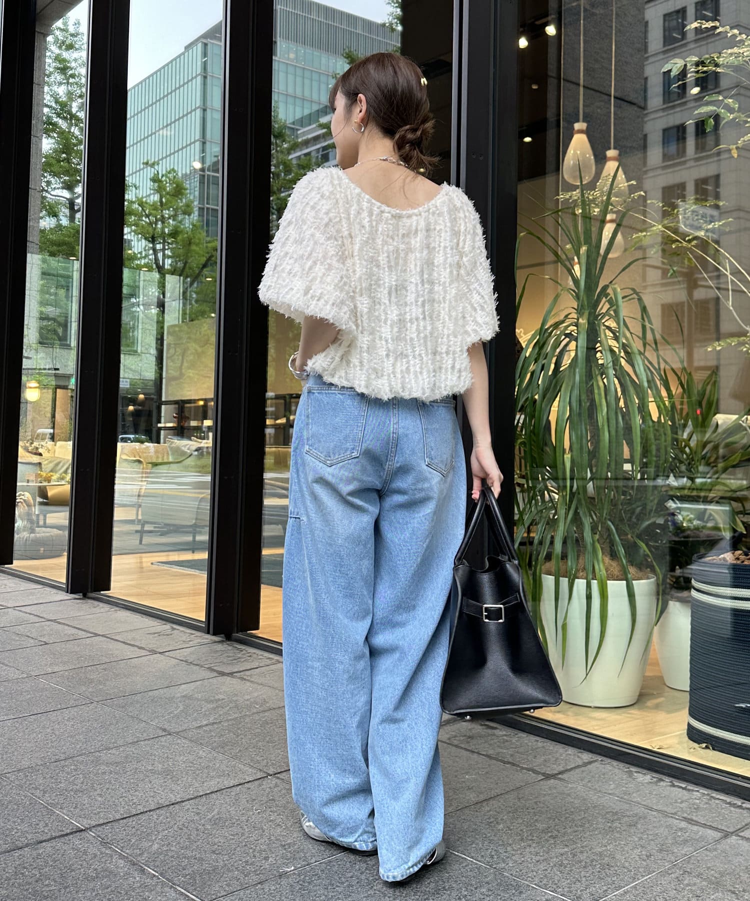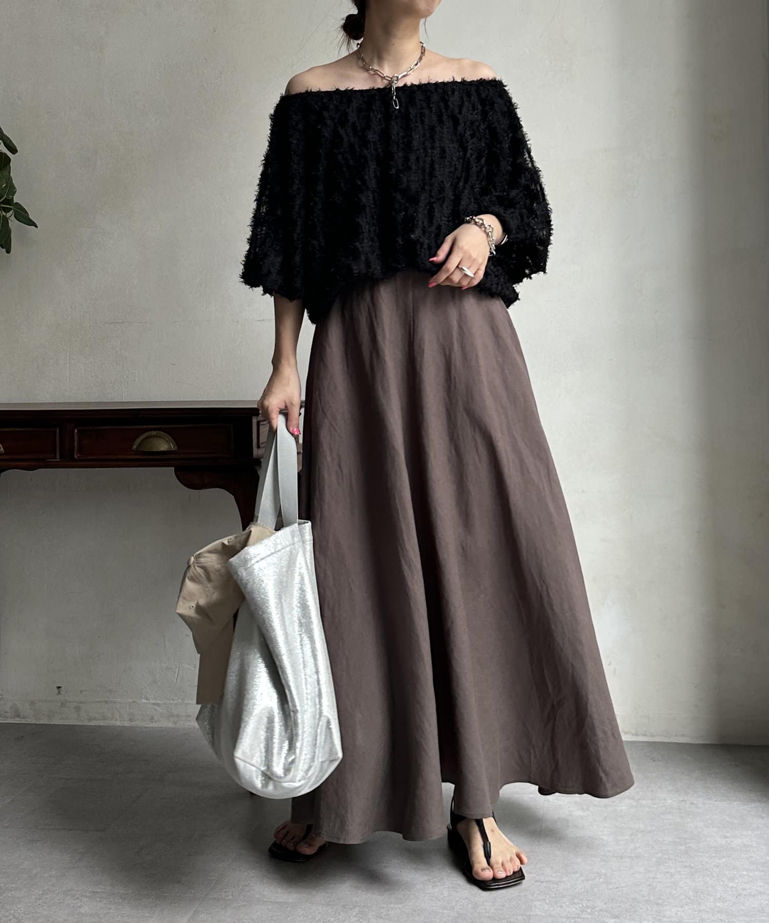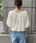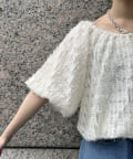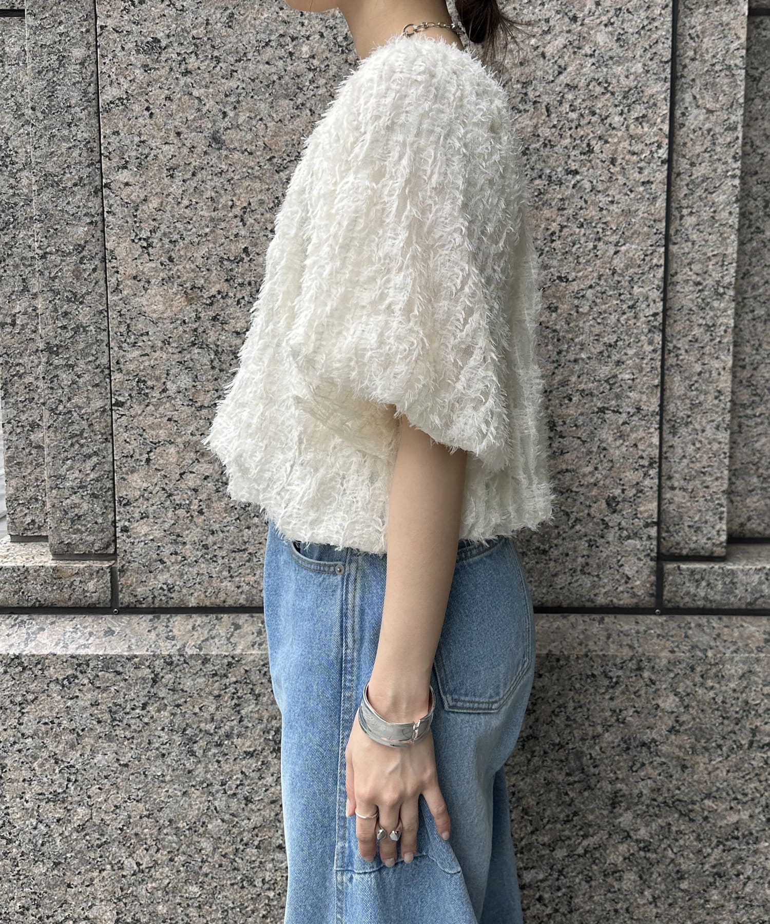 フリンジチュールの素材感と、ふんわりシルエットで女性らしく可愛い雰囲気に。