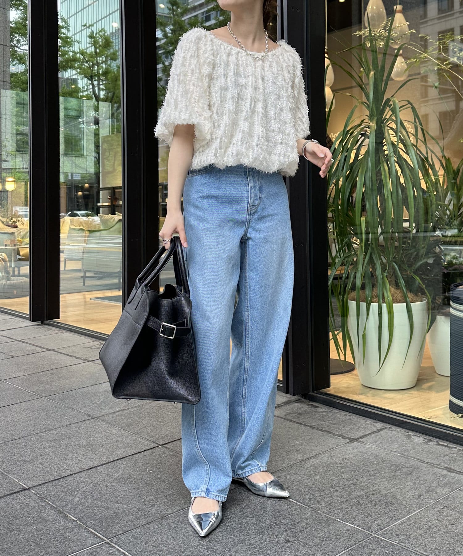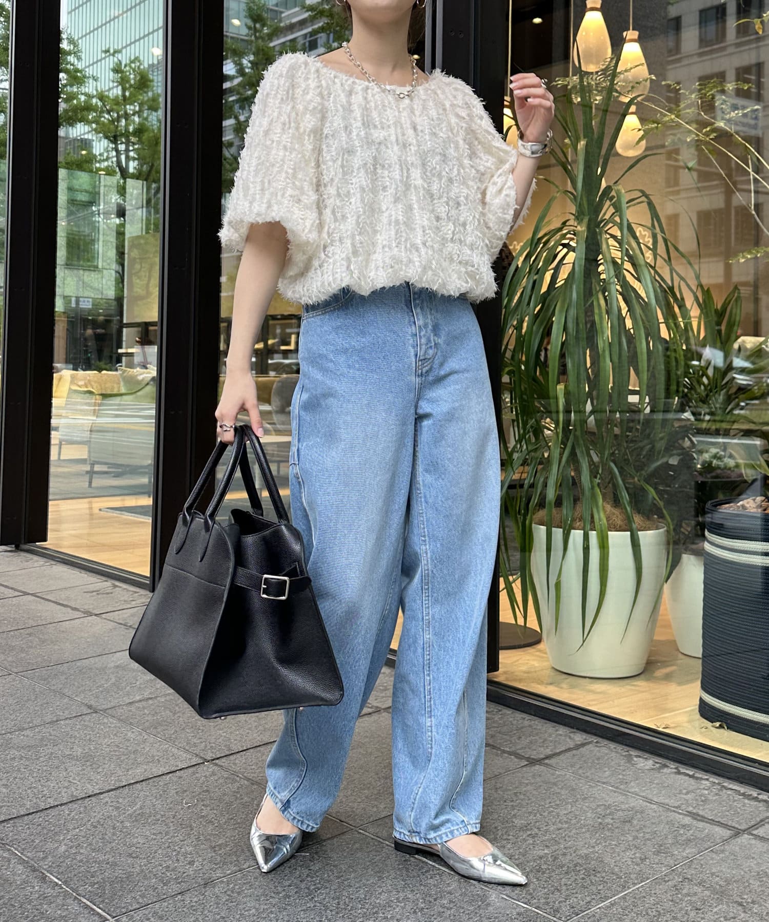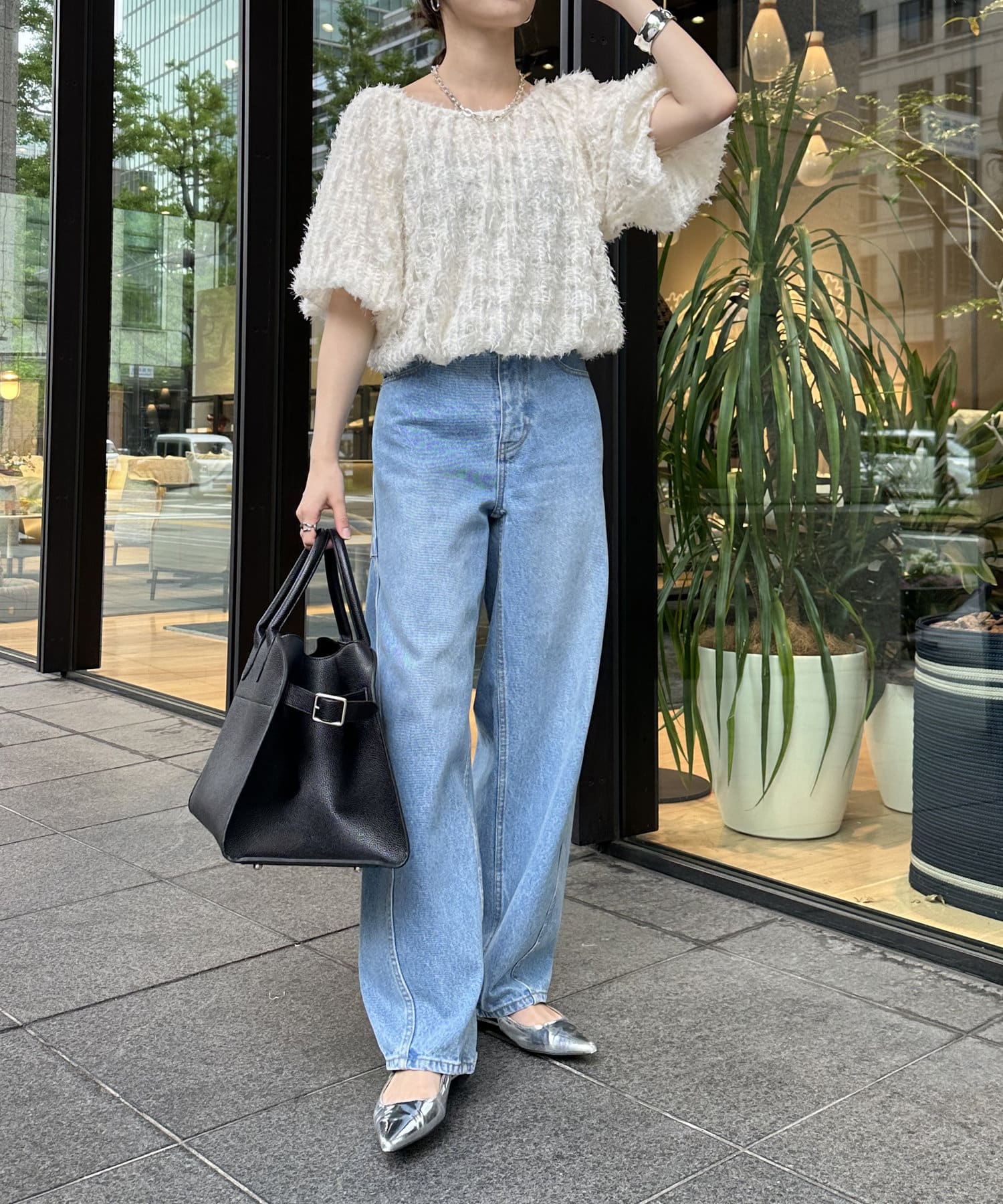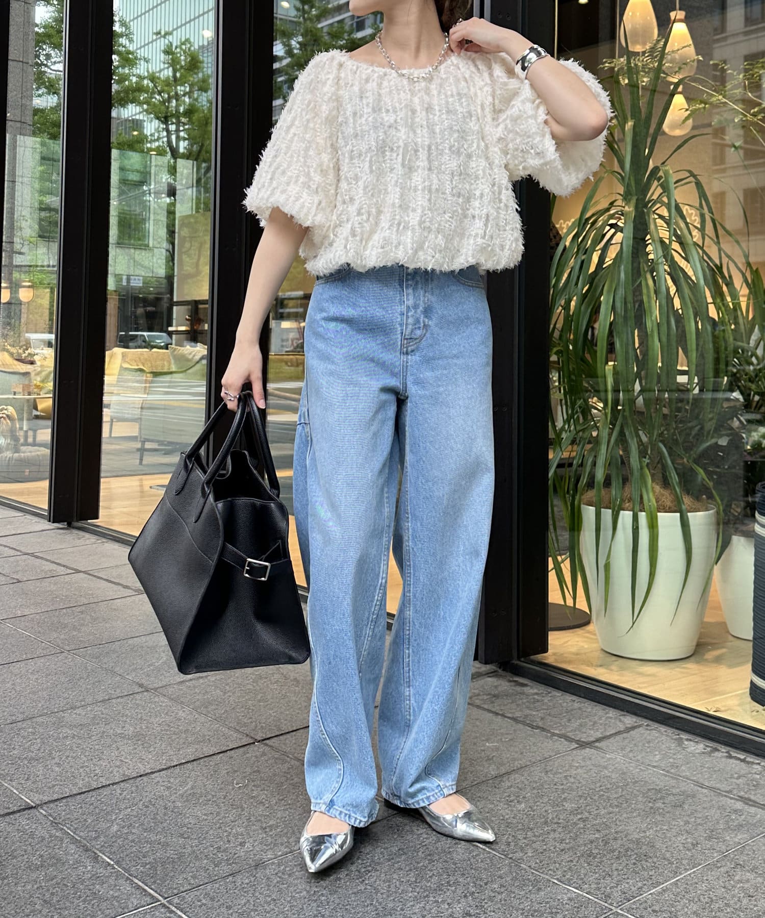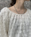 フリンジチュールの素材感と、ふんわりシルエットで女性らしく可愛い雰囲気に。