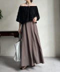 年齢的にオフショルは普段使いは出来ませんがネックラインも袖も記事も女性らしくパンツもスカートも上品さがでます