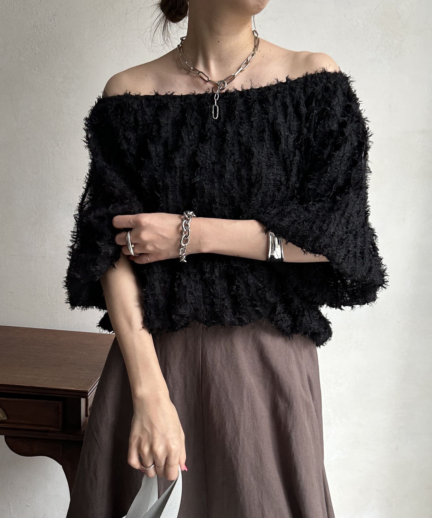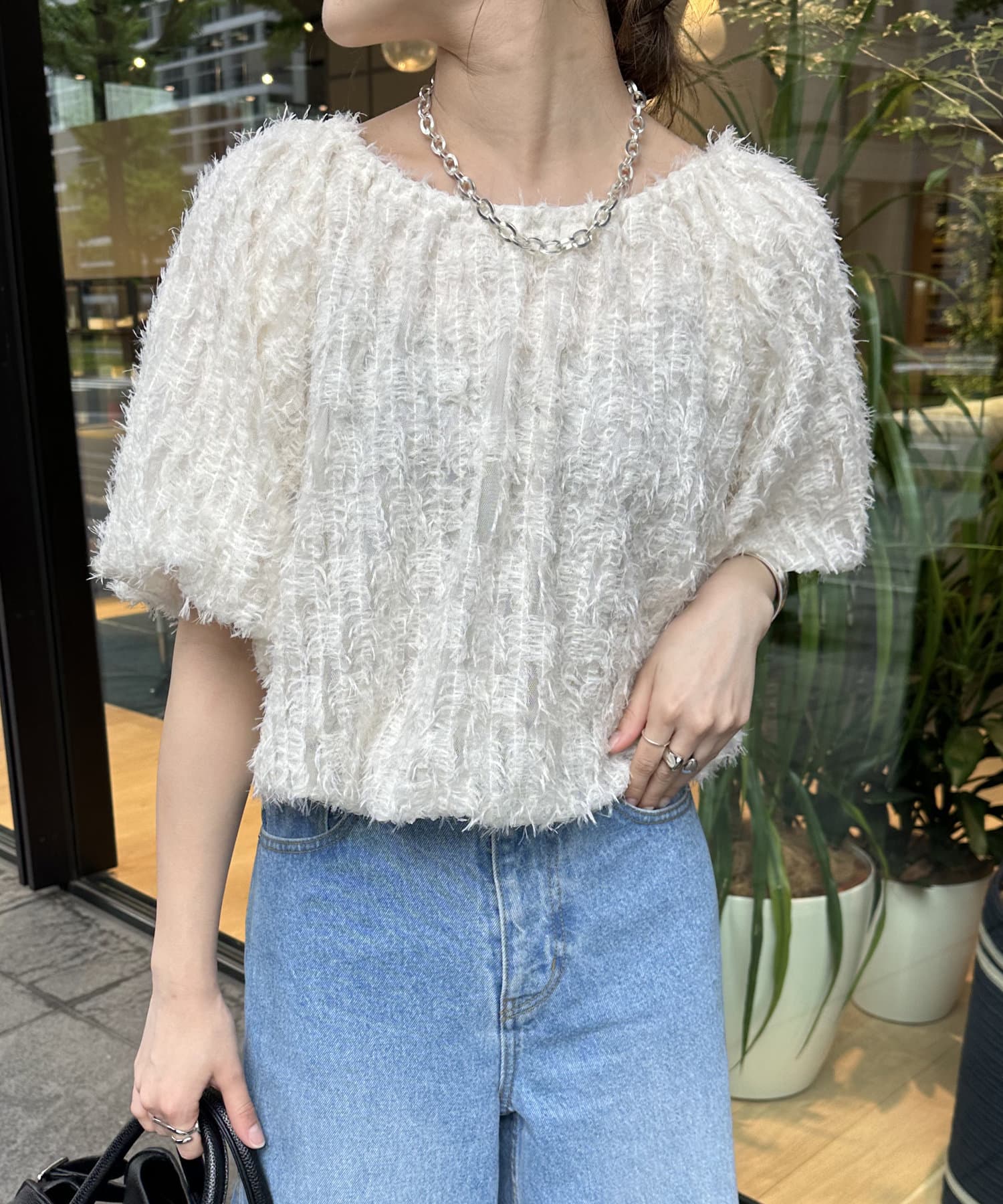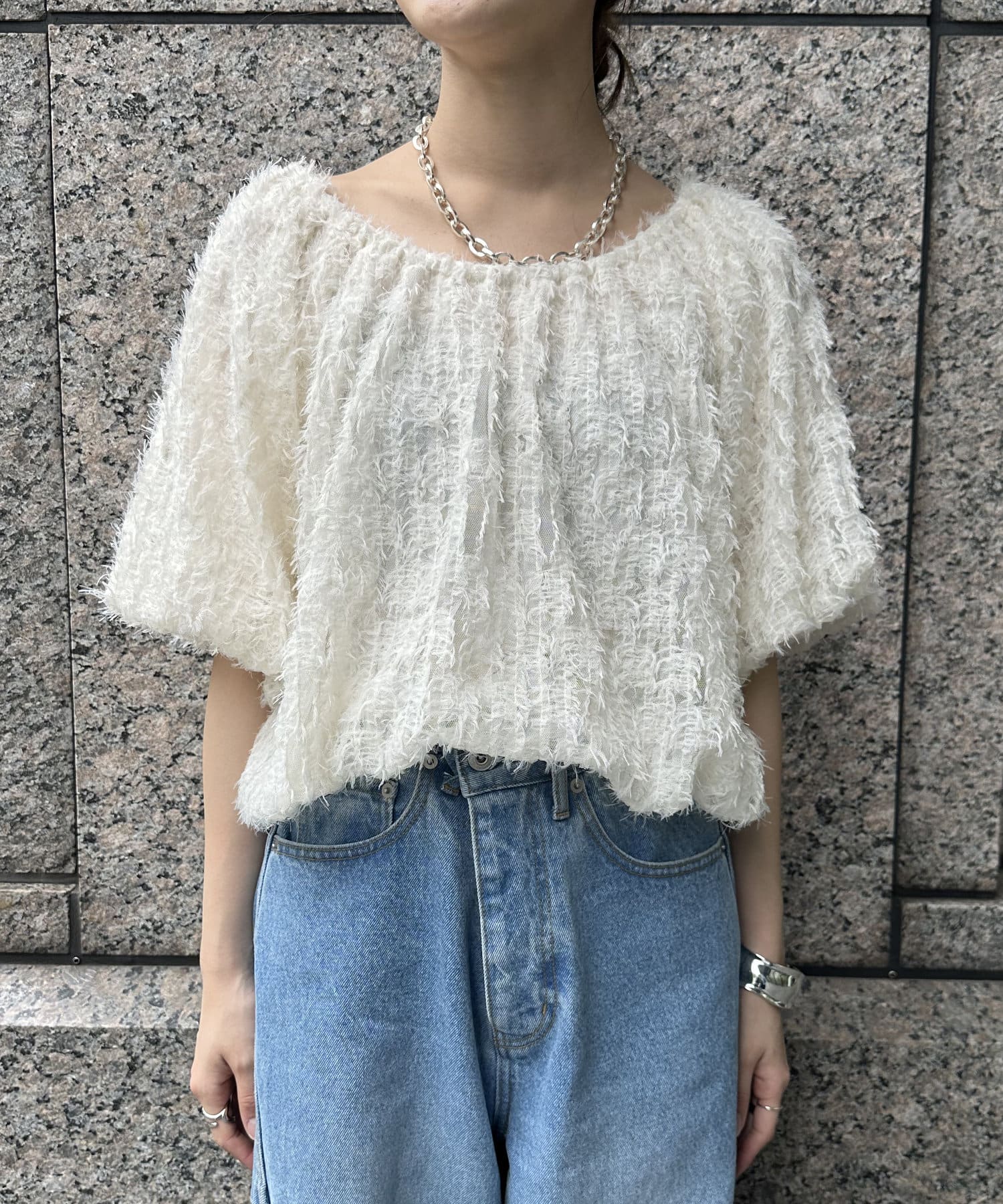 • DOUDOU(ドゥドゥ) 【WEB限定】 フリンジチュールプルオーバー