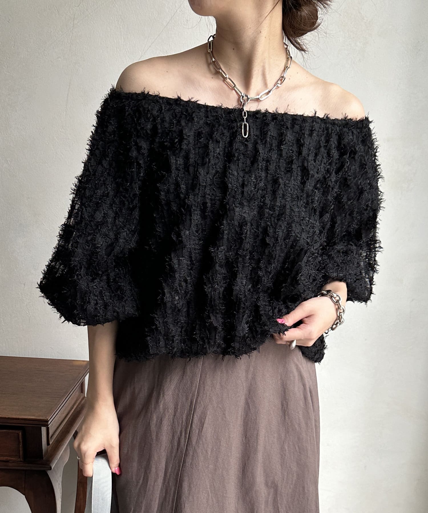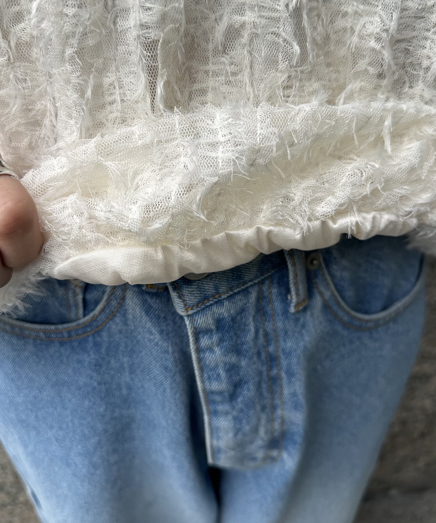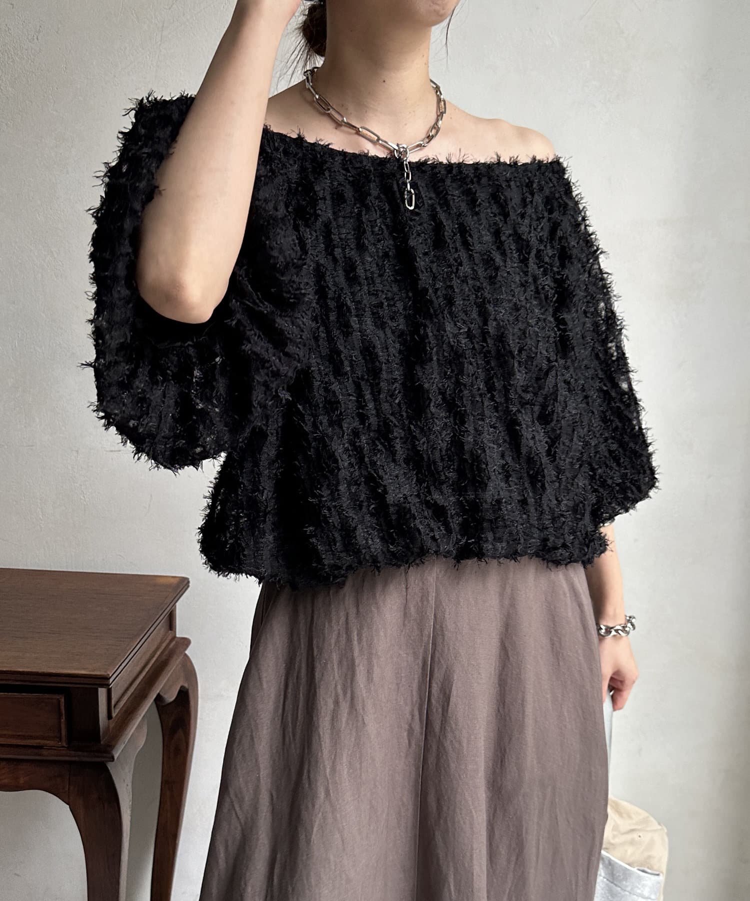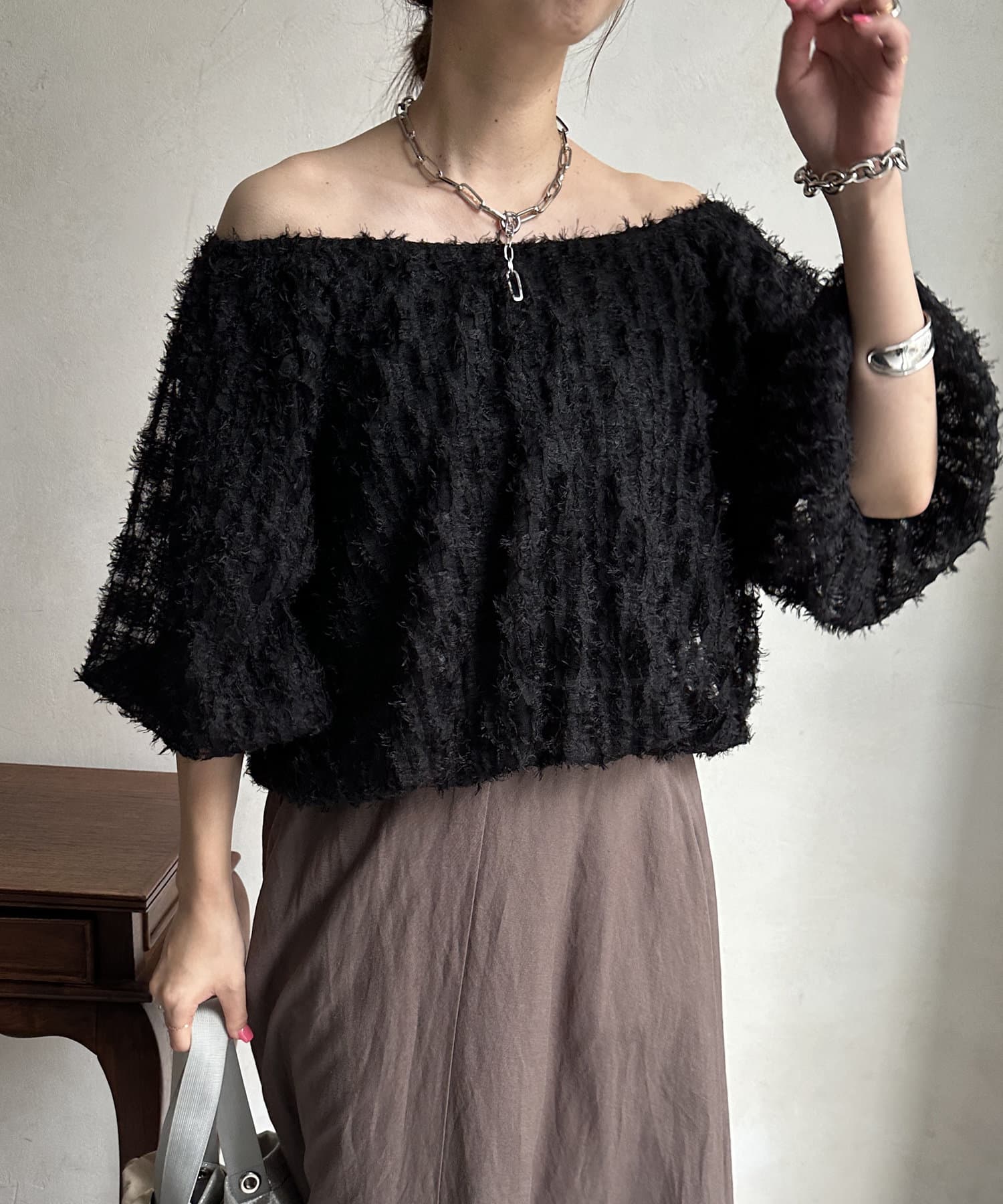 • DOUDOU(ドゥドゥ) 【WEB限定】 フリンジチュールプルオーバー