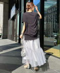 ウエストインもしやすい薄手なので、ボトムスを選ばずに着回しできる優秀アイテムですよ。