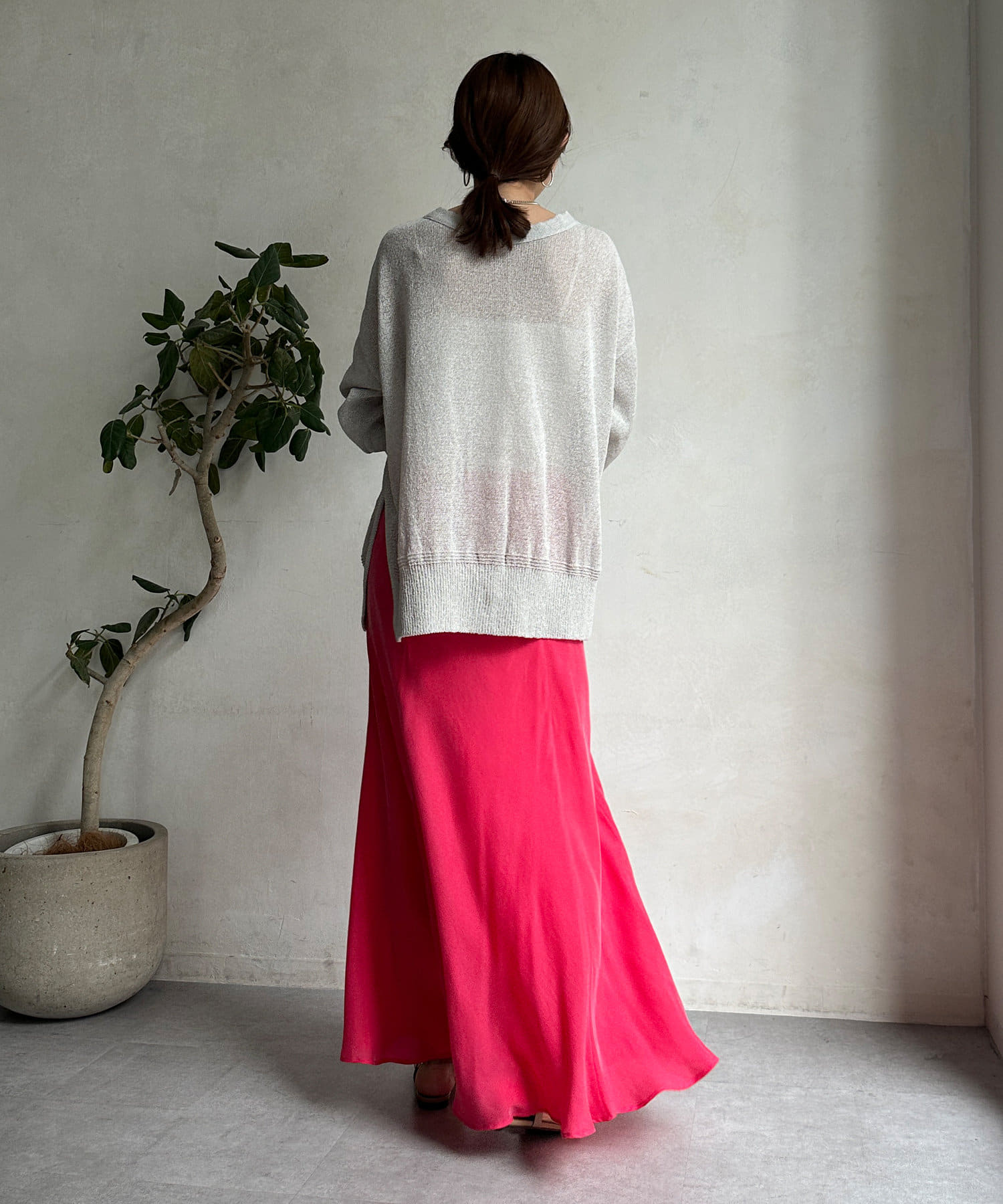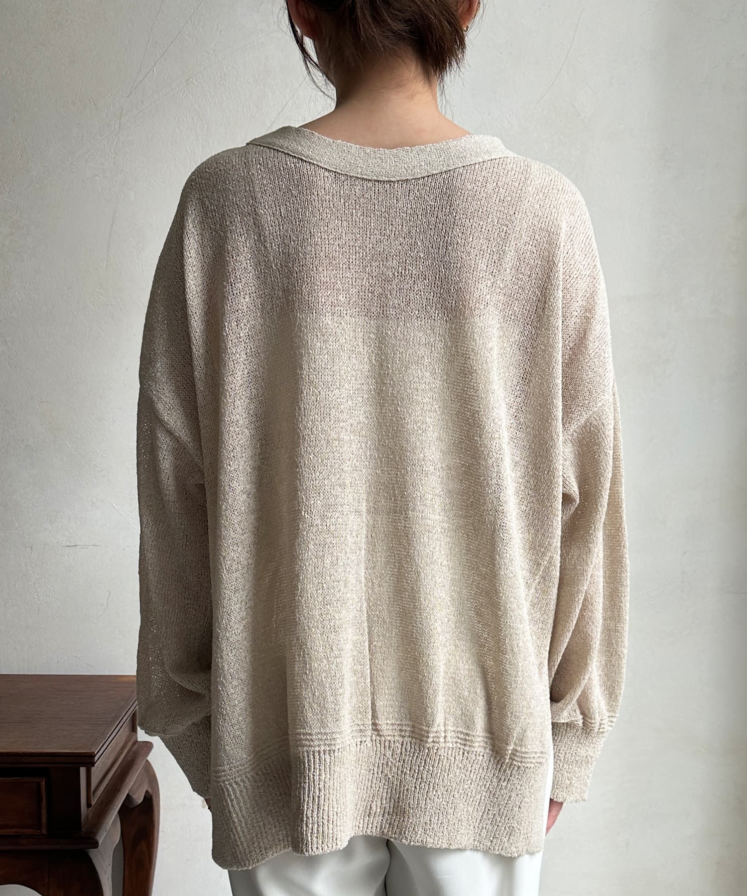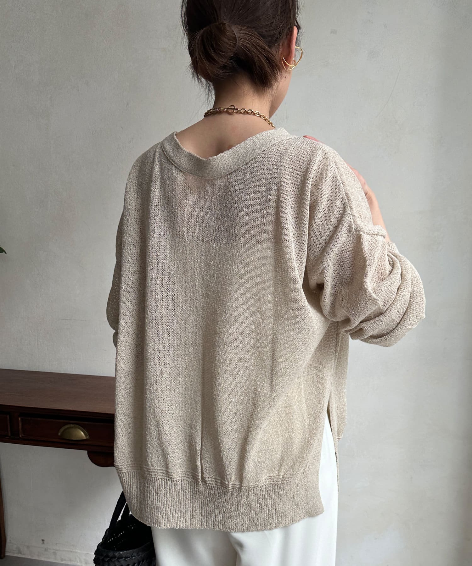 最大のポイントは、ボタンをフロントにしてカーデとして、ボタンをバックにしてプルオーバーとして着ていただける2way仕様。