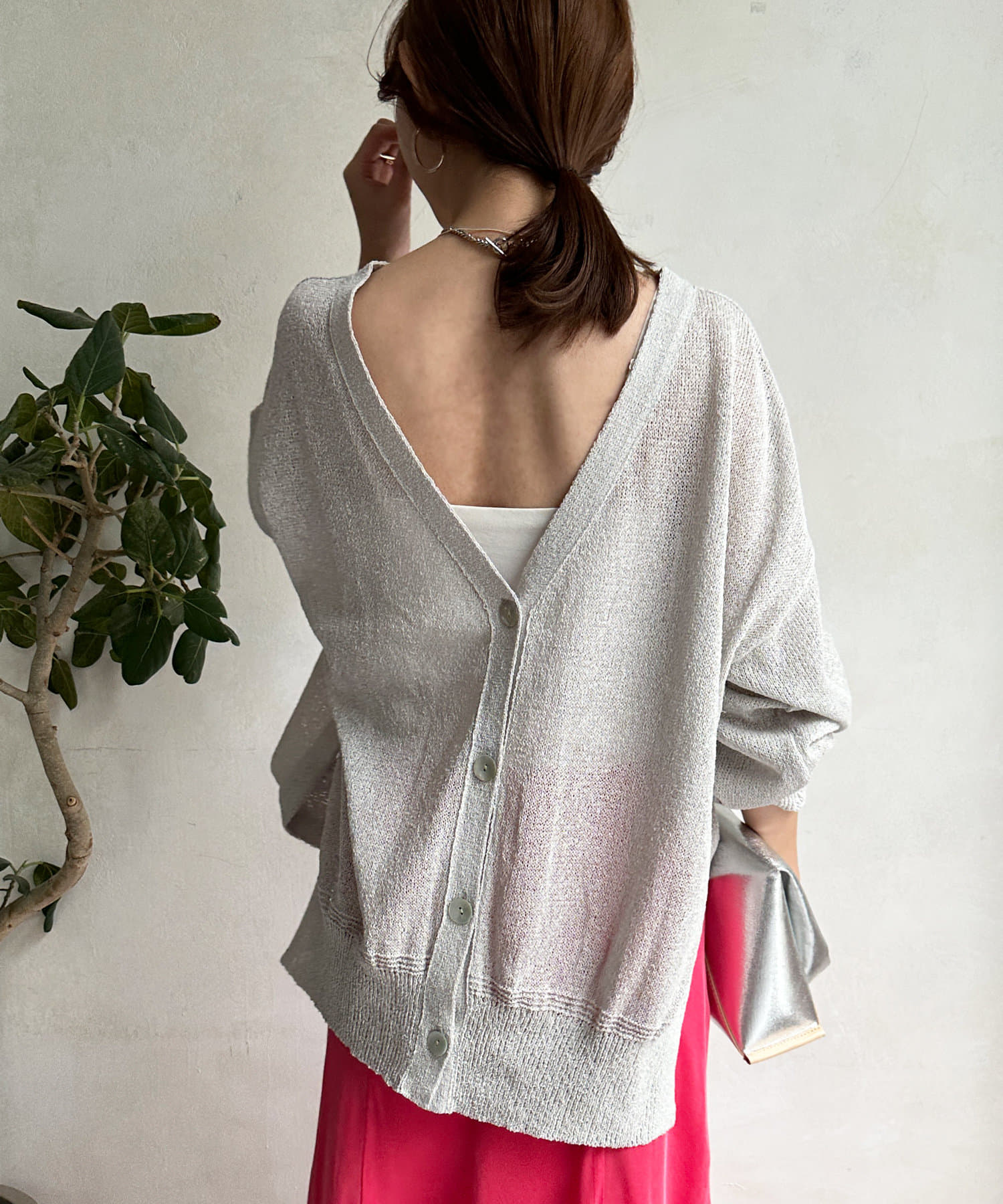 DOUDOU(ドゥドゥ) 【夏も着られて洗える!】ペーパーヤーン2WAYカーディガン