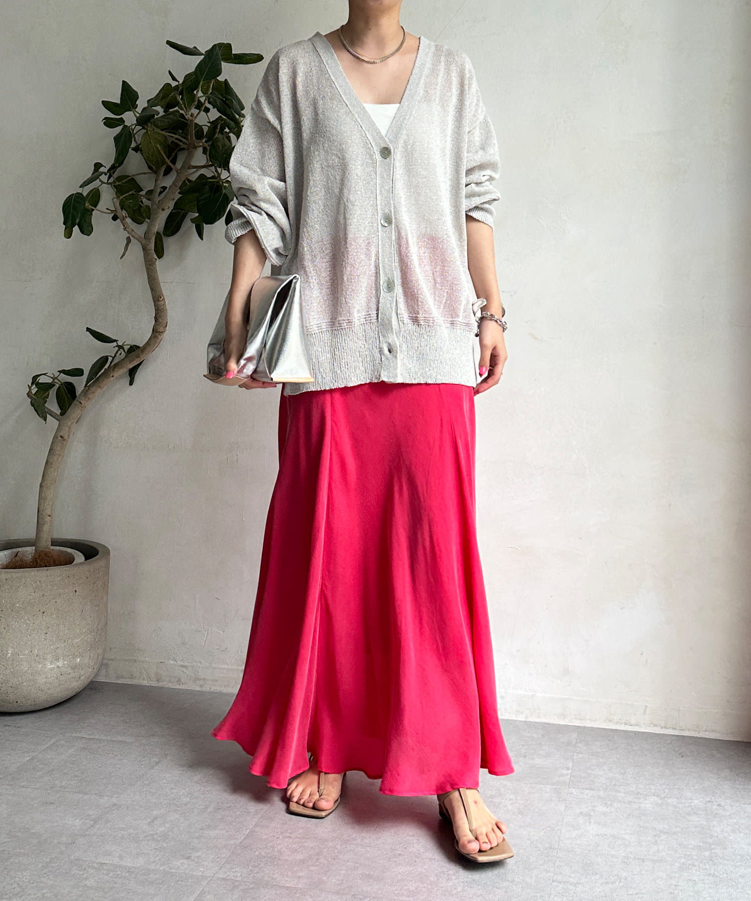 夏でもさっと羽織れるカーディガンが欲しかったので、こちらを購入しました。生地はちょっと硬い感じですが、問題なく着用出来て1枚でもオシャレです。来月の旅行に着ていきます。😊