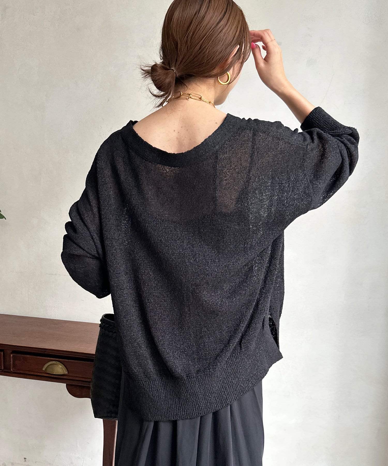 最大のポイントは、ボタンをフロントにしてカーデとして、ボタンをバックにしてプルオーバーとして着ていただける2way仕様。