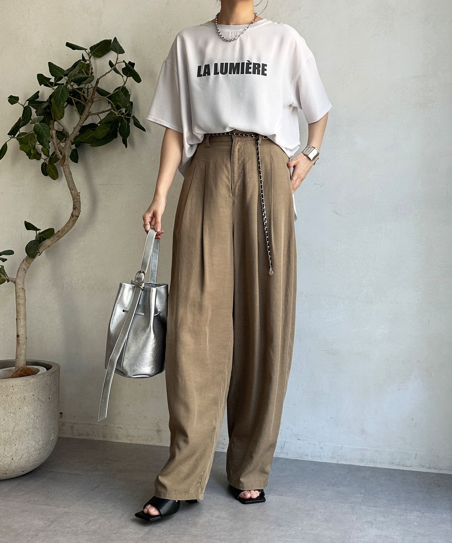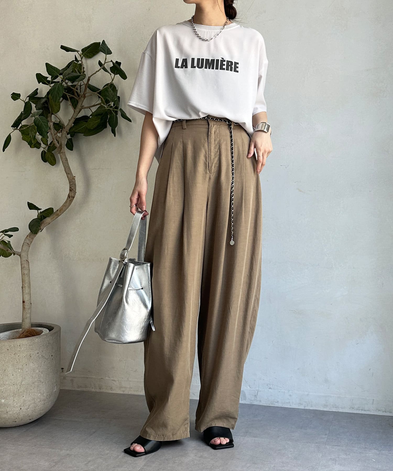 カジュアルさもありながら、ジョーゼット素材のきれいめな印象もプラスし、大人なスタイルに仕上がります。