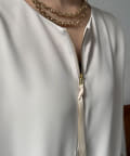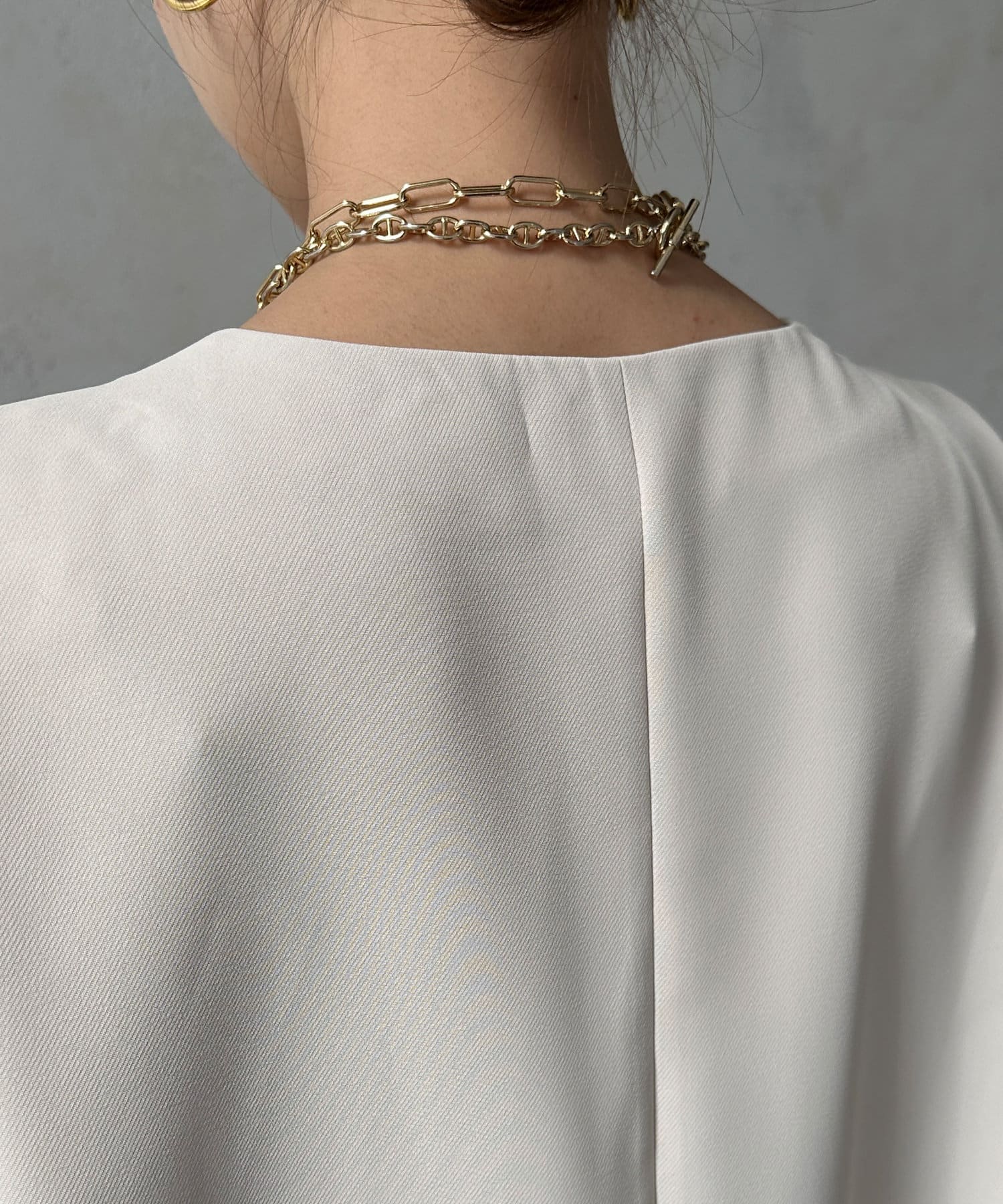 ショルダー部分にはタックデザインを入れ、二の腕を包み込むような立体的なシルエットに。