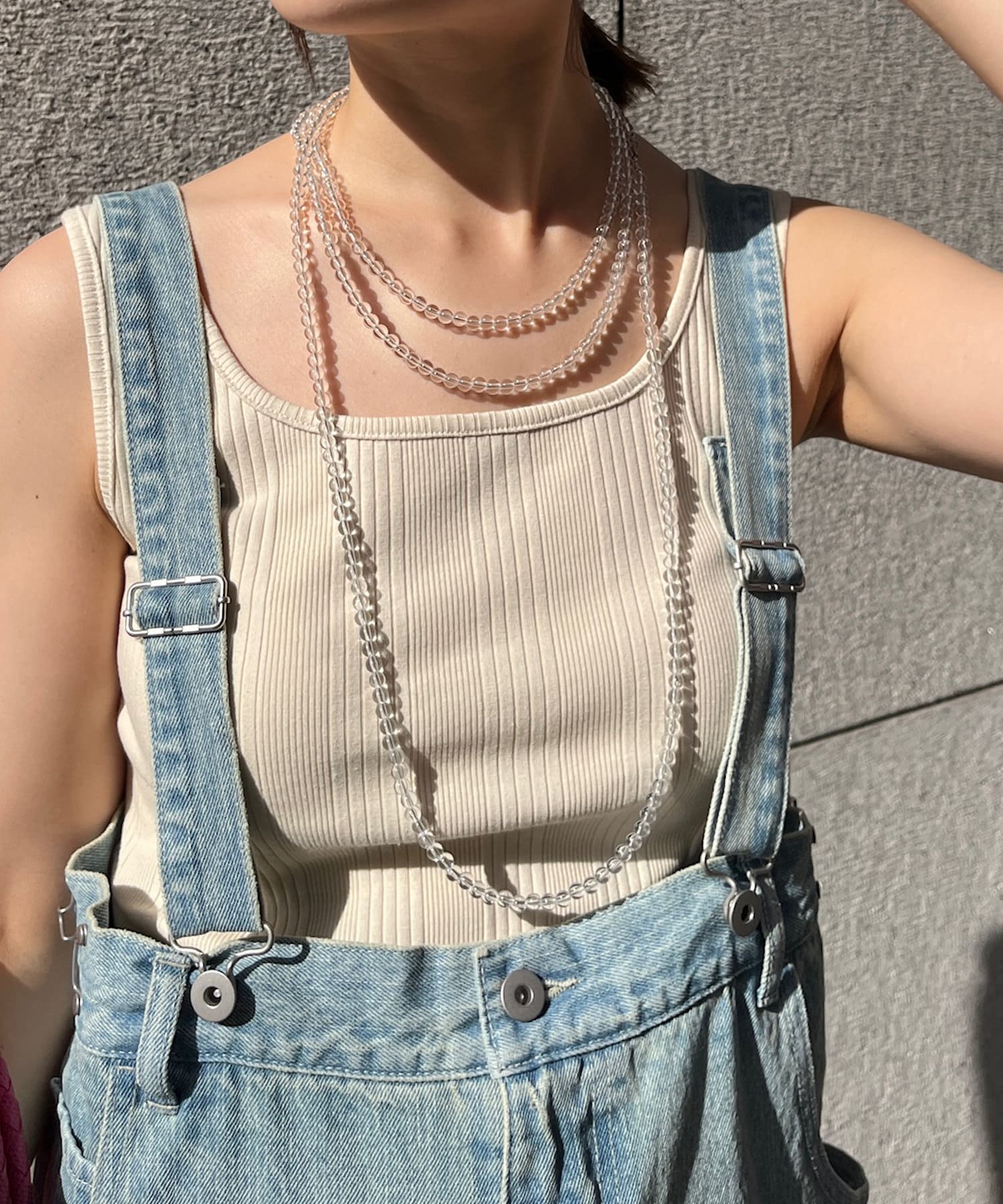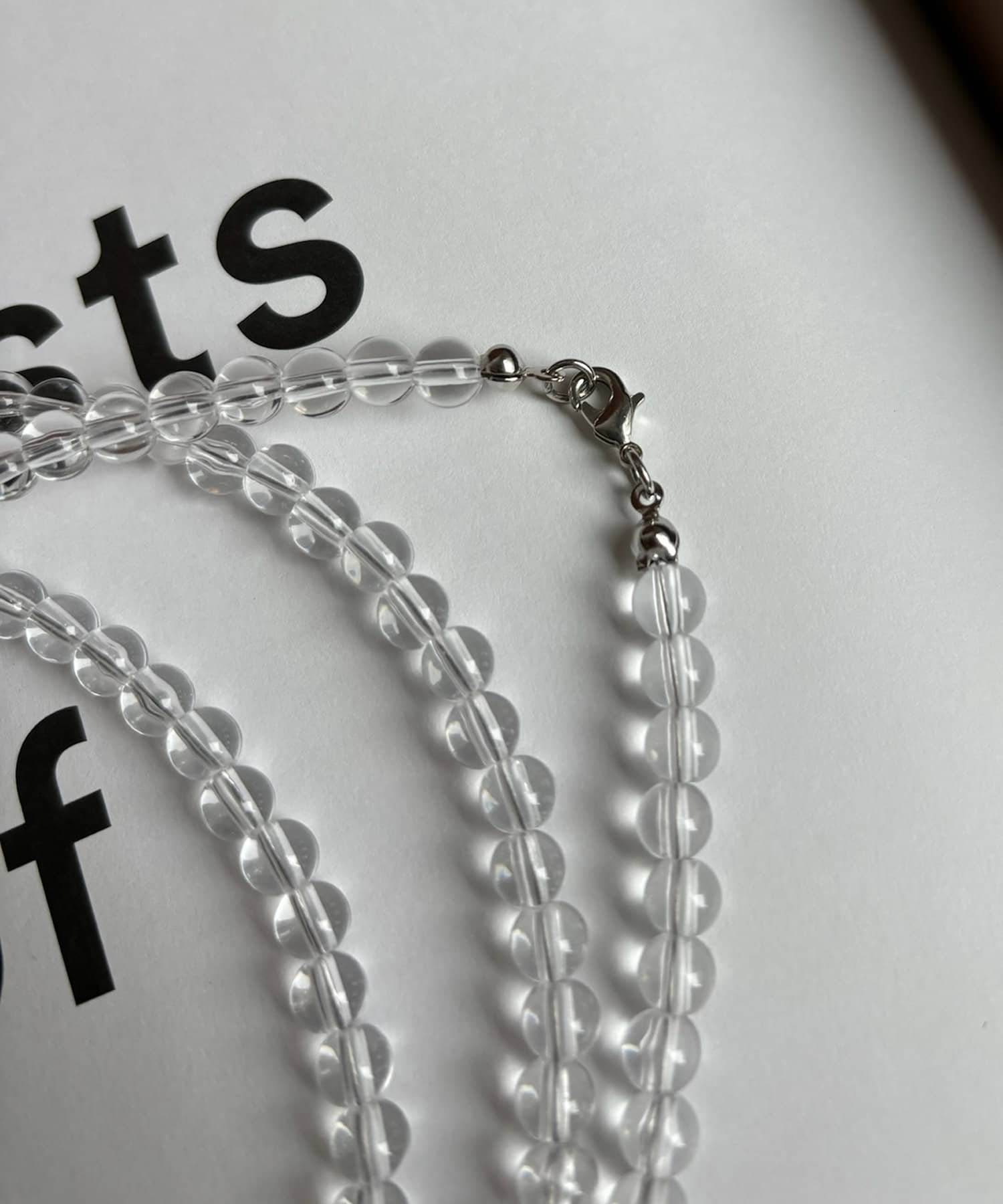 顔周りを涼しげに見せてくれるクリアボールのネックレス。