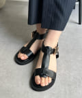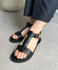 フラットで履きやすい人気のサンダルが登場!ベルト部分の金具がアクセントになり、シンプルになりすぎないのでオシャレ見えします。