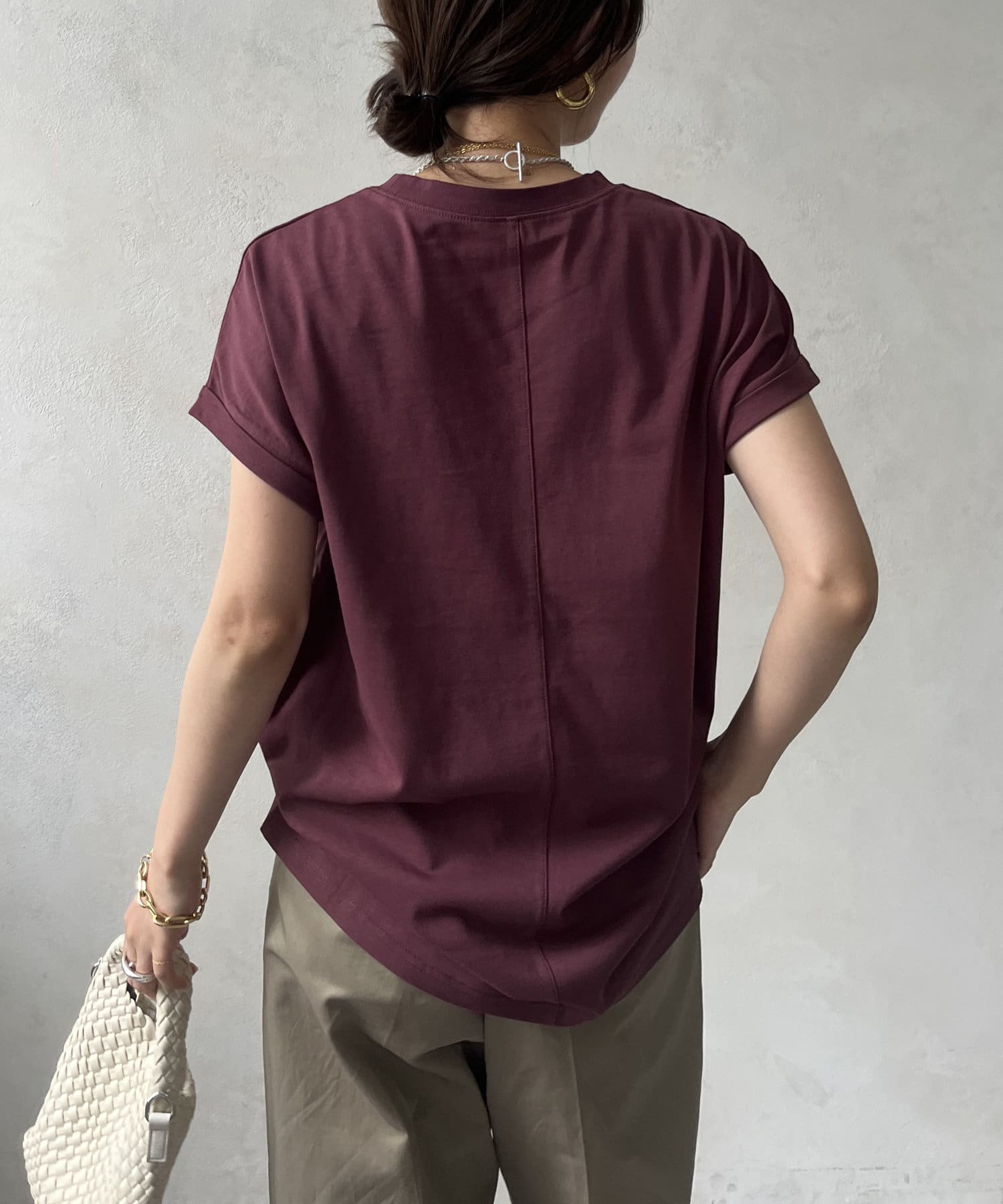 お袖は、折り返しデザインになっているので、二の腕との空間ができすっきりと見えます。