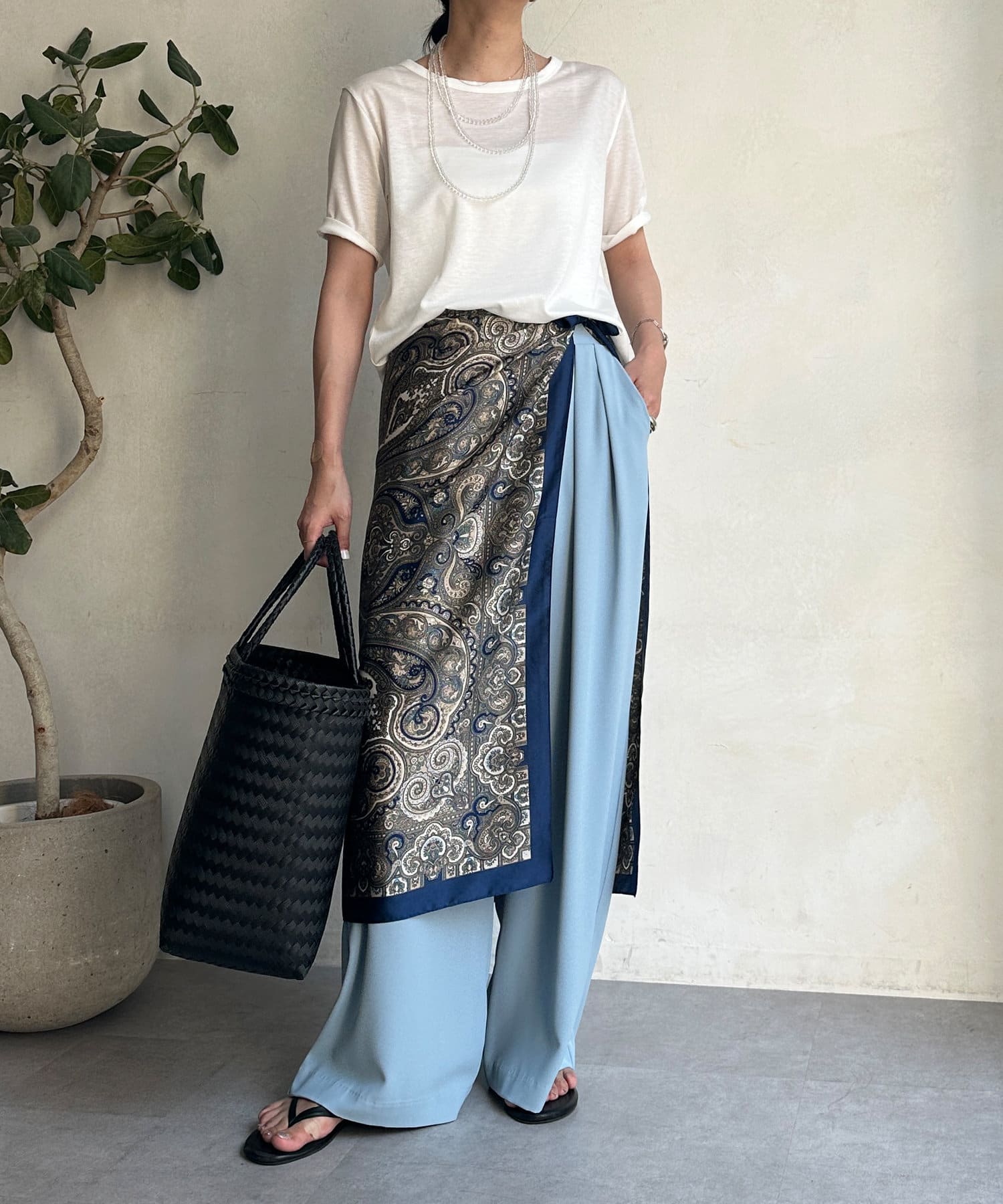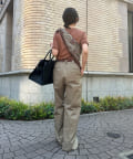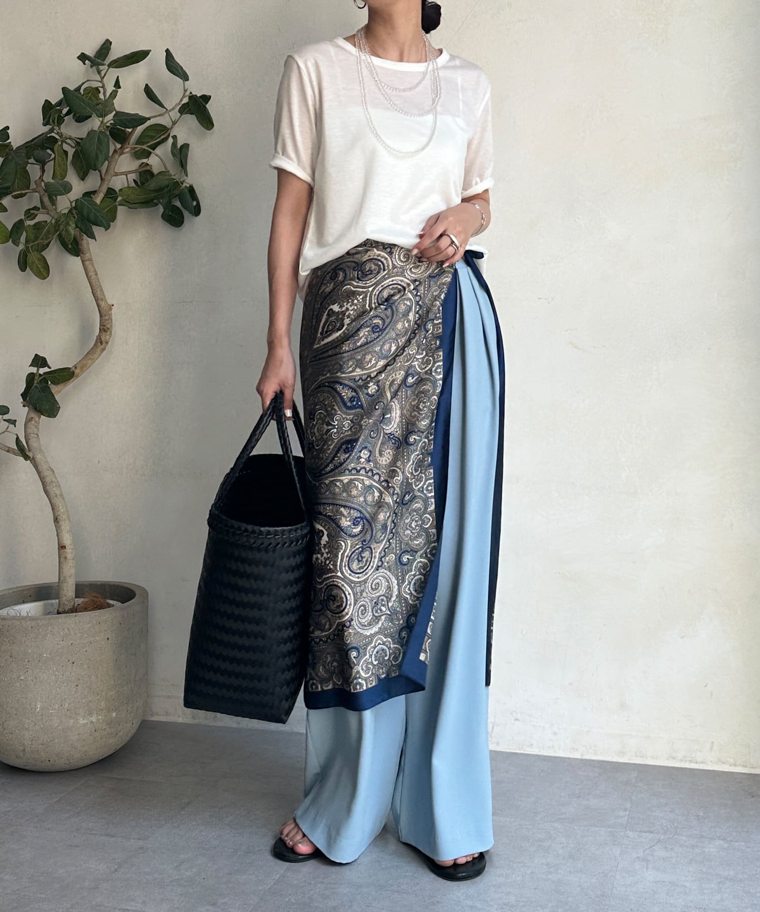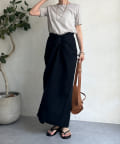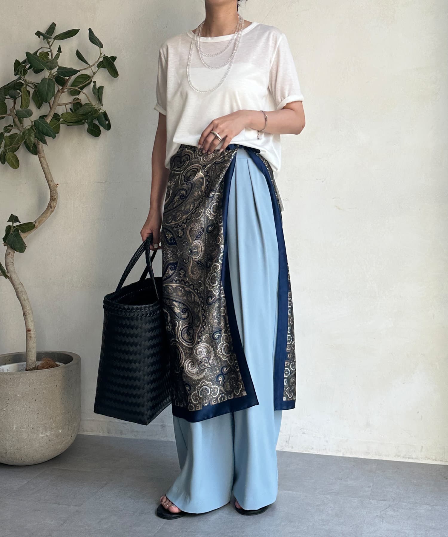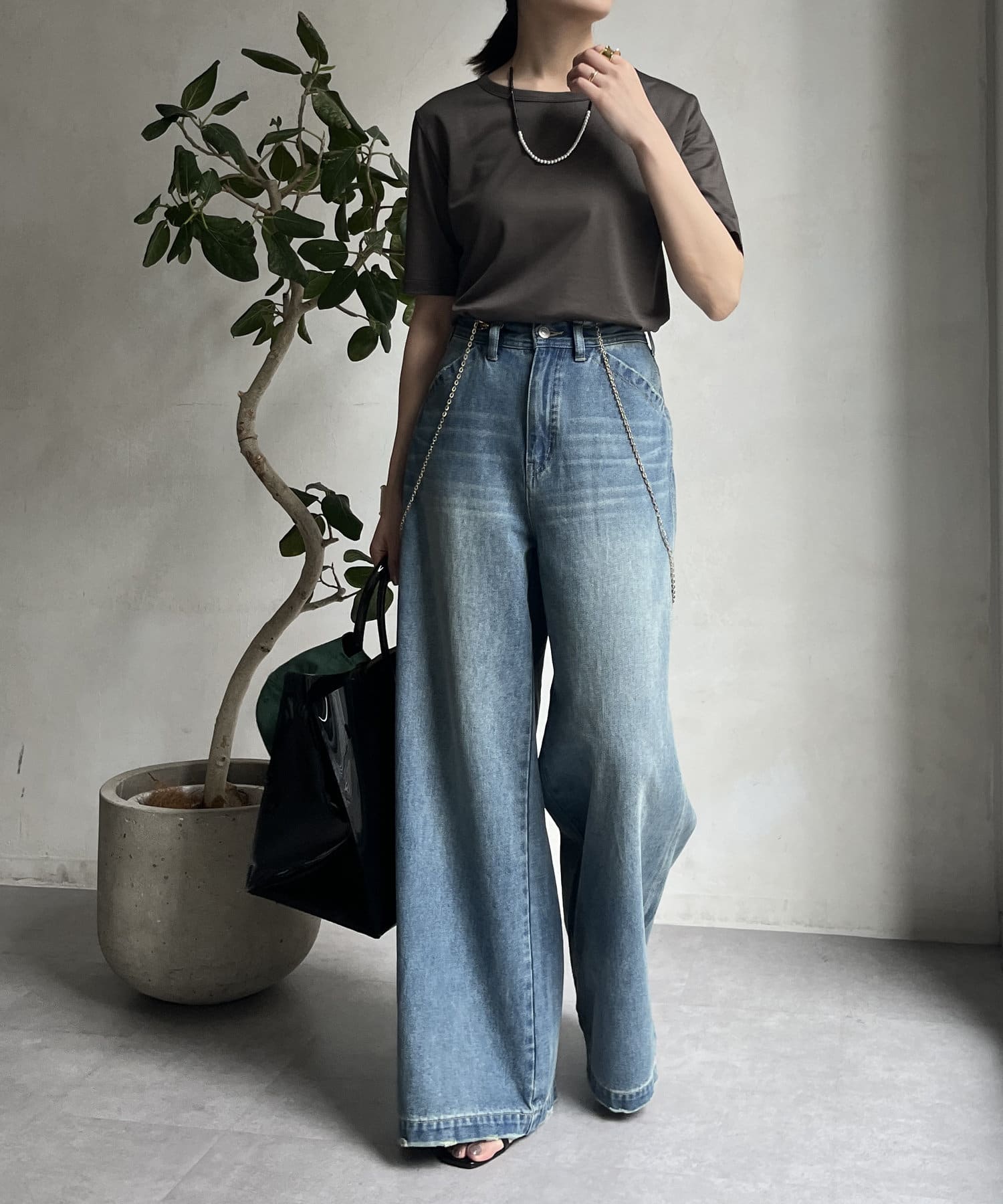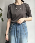 綿100%のTシャツとは違い、すこしつるっとした表面感でカジュアルになりすぎない新鮮な印象。