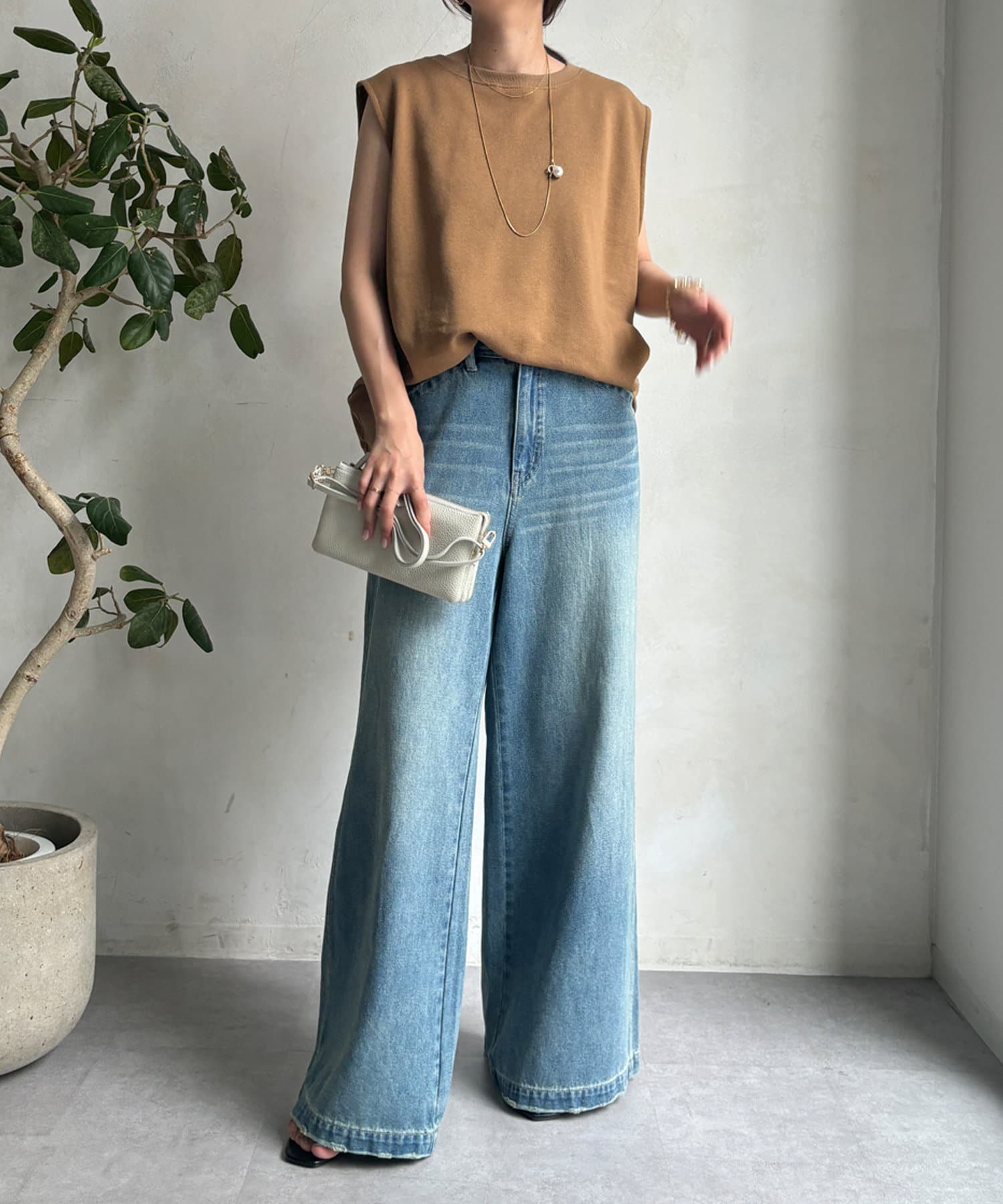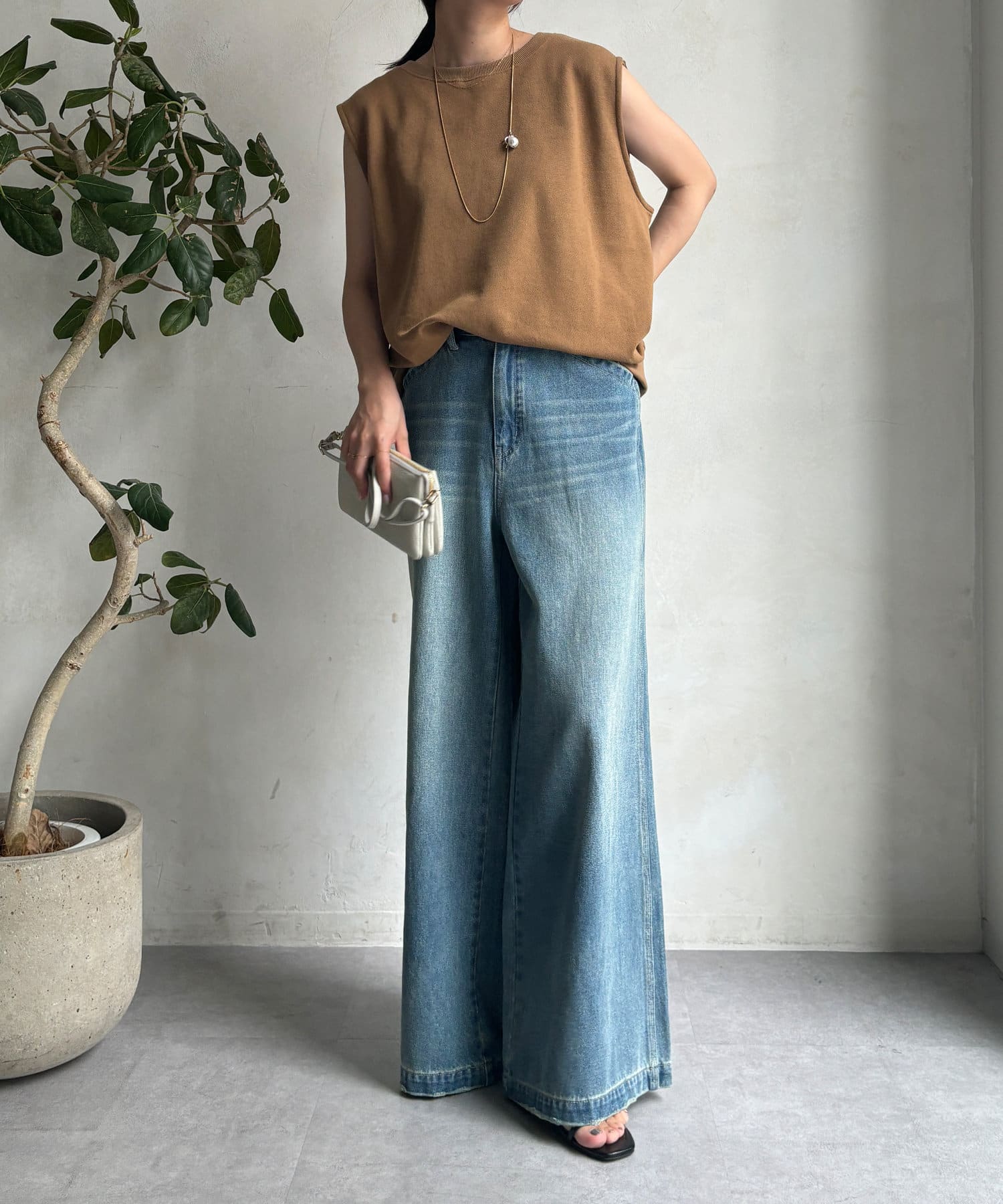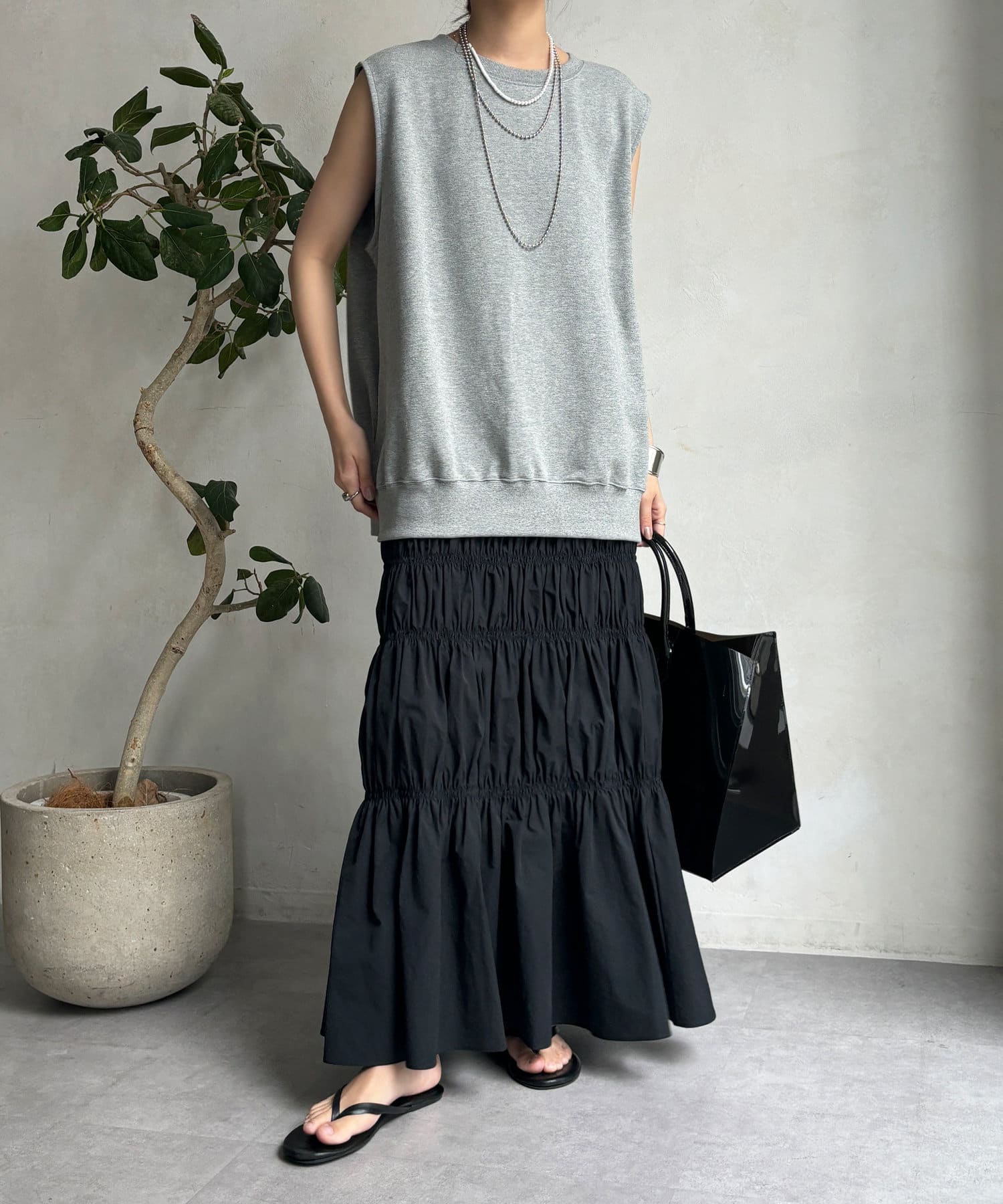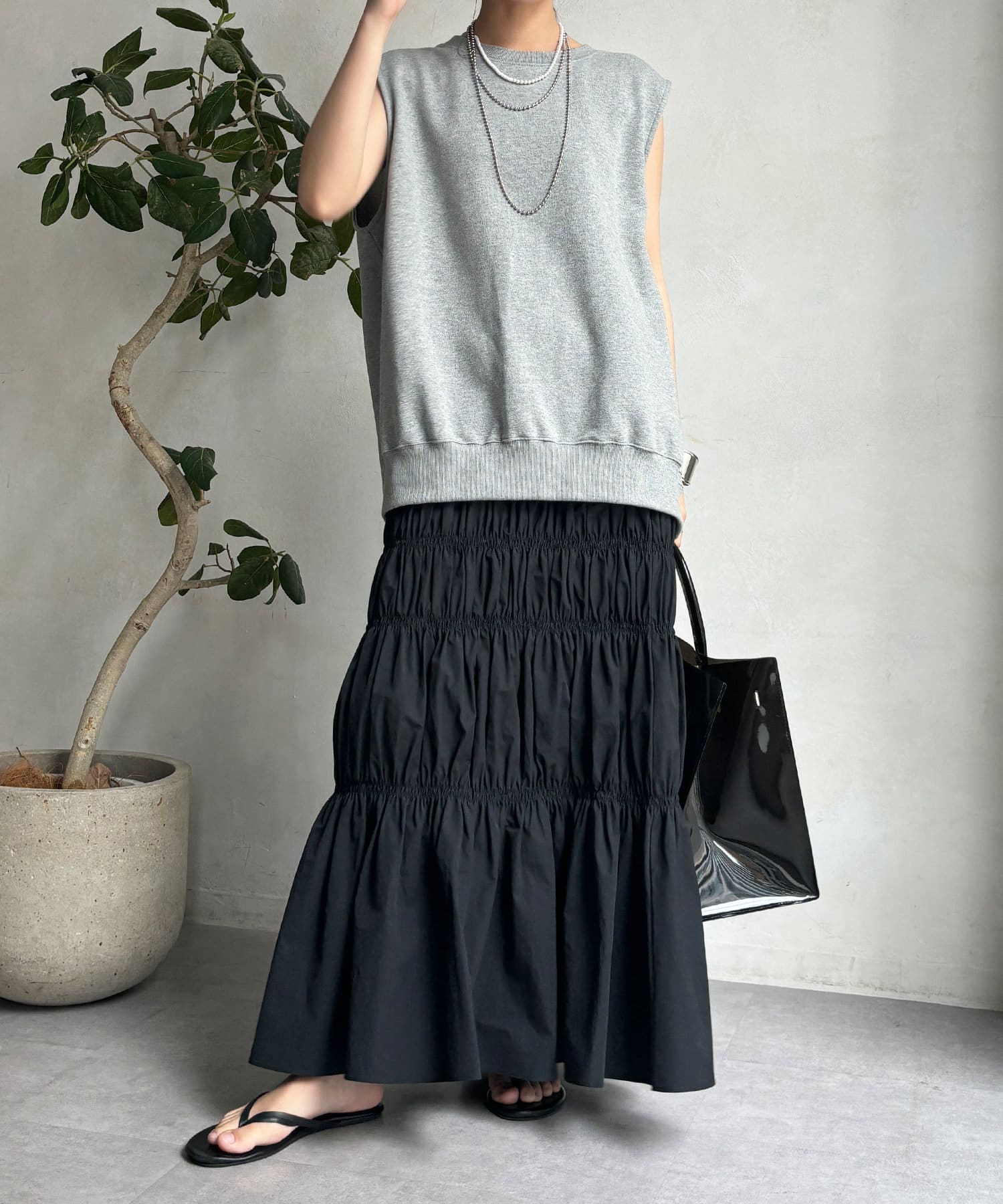 やや長めの丈感に仕上げ、ヒップや腰回りを自然とカバー。