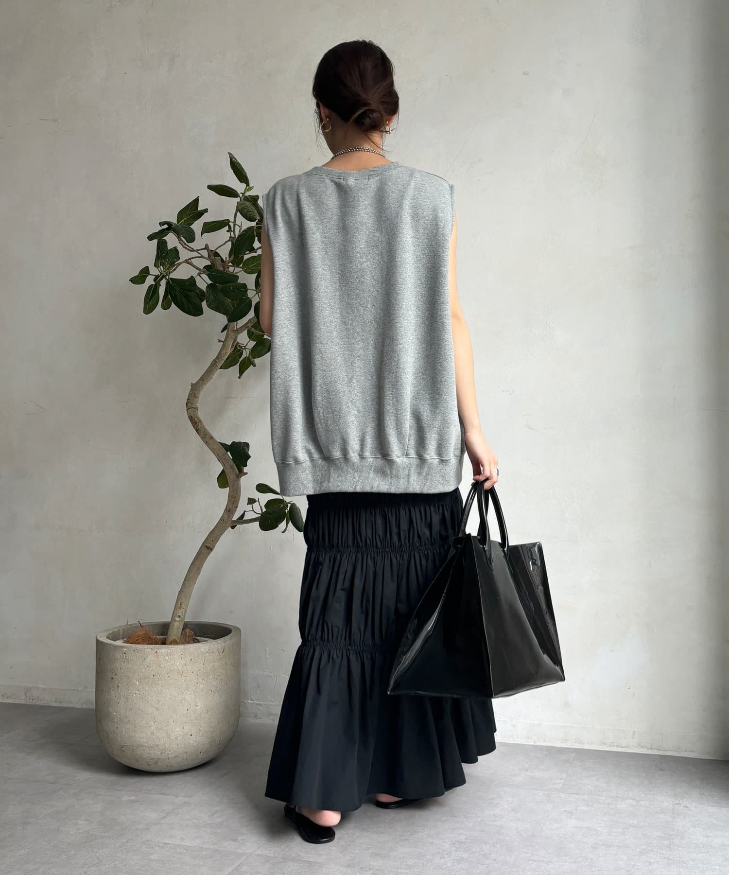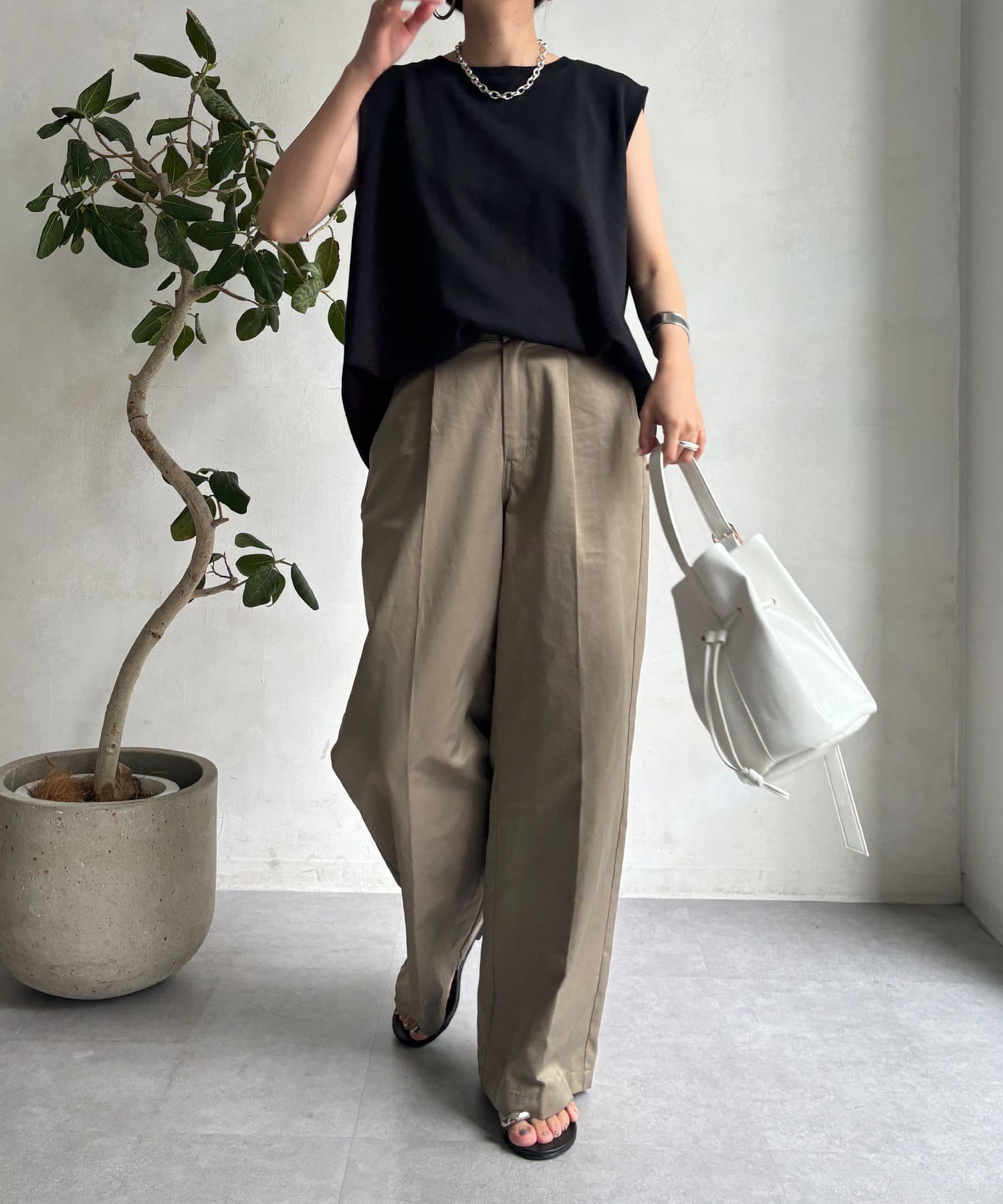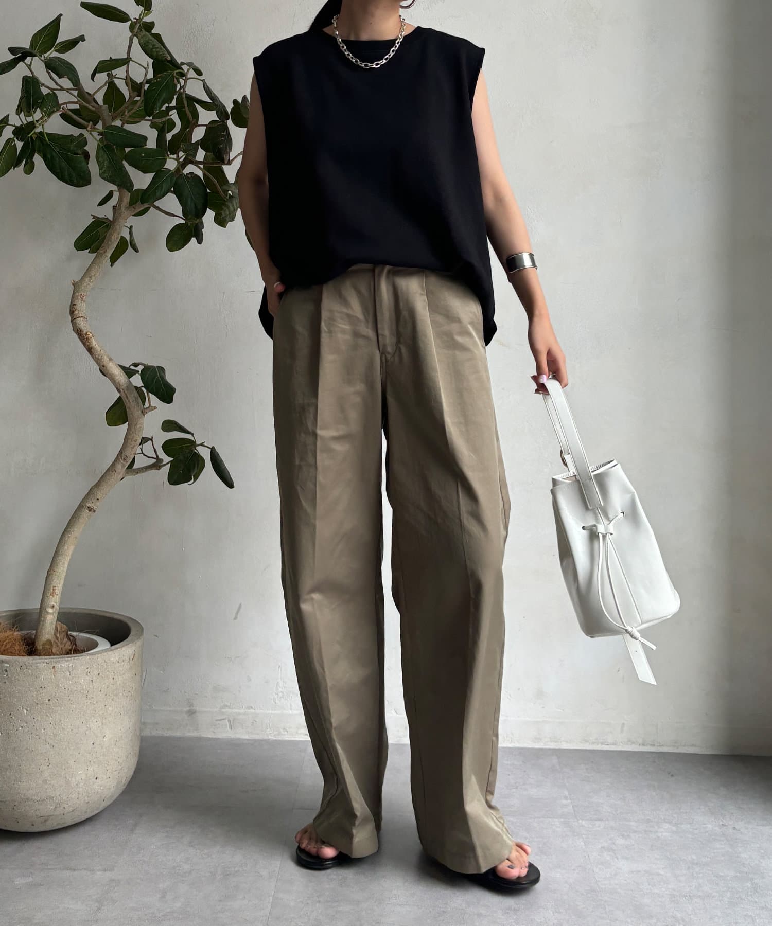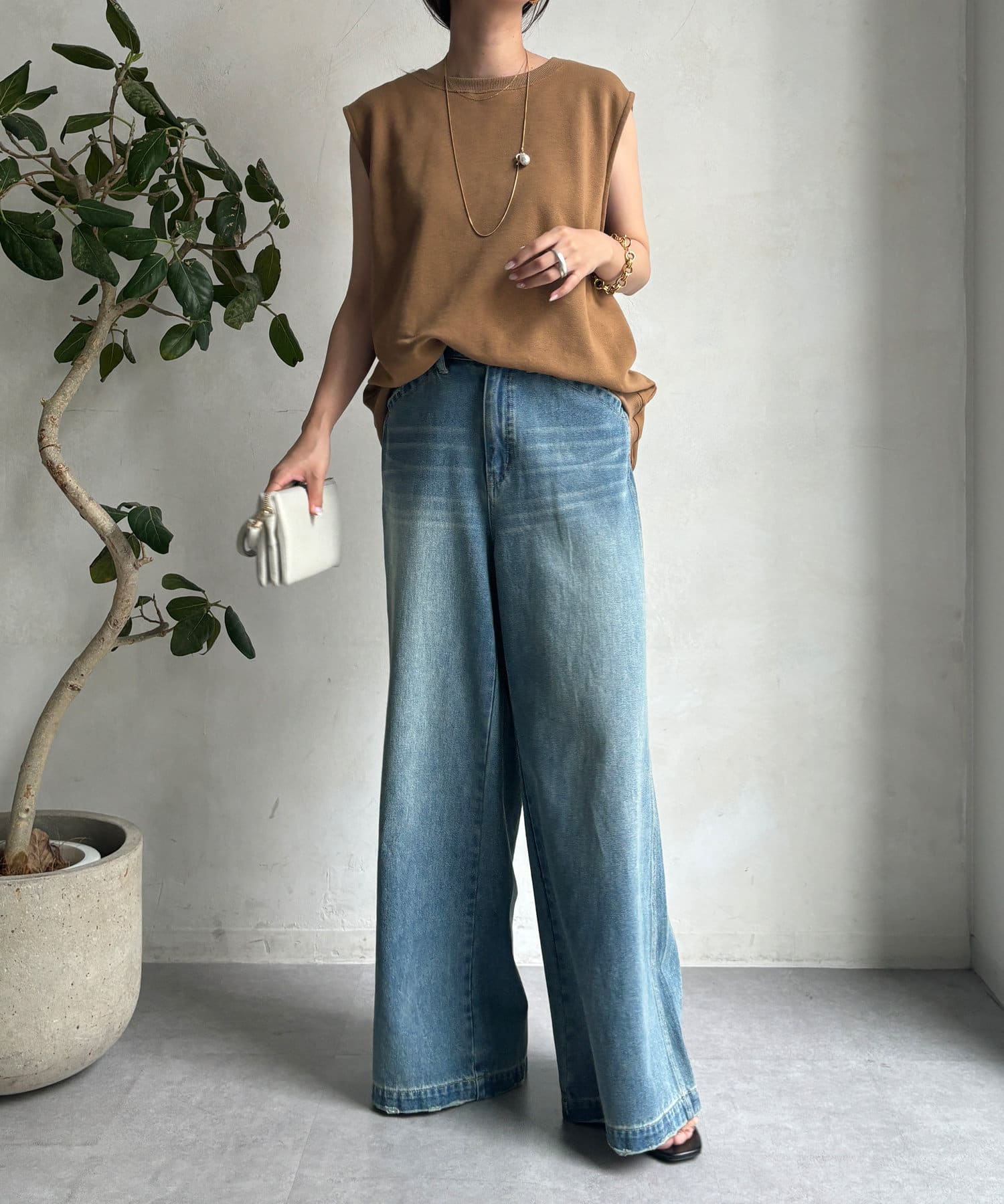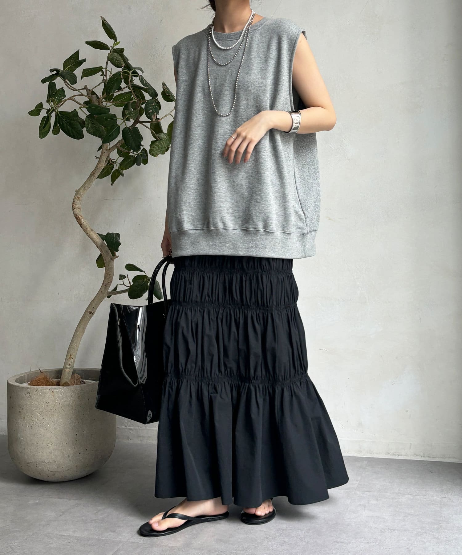 やや長めの丈感に仕上げ、ヒップや腰回りを自然とカバー。