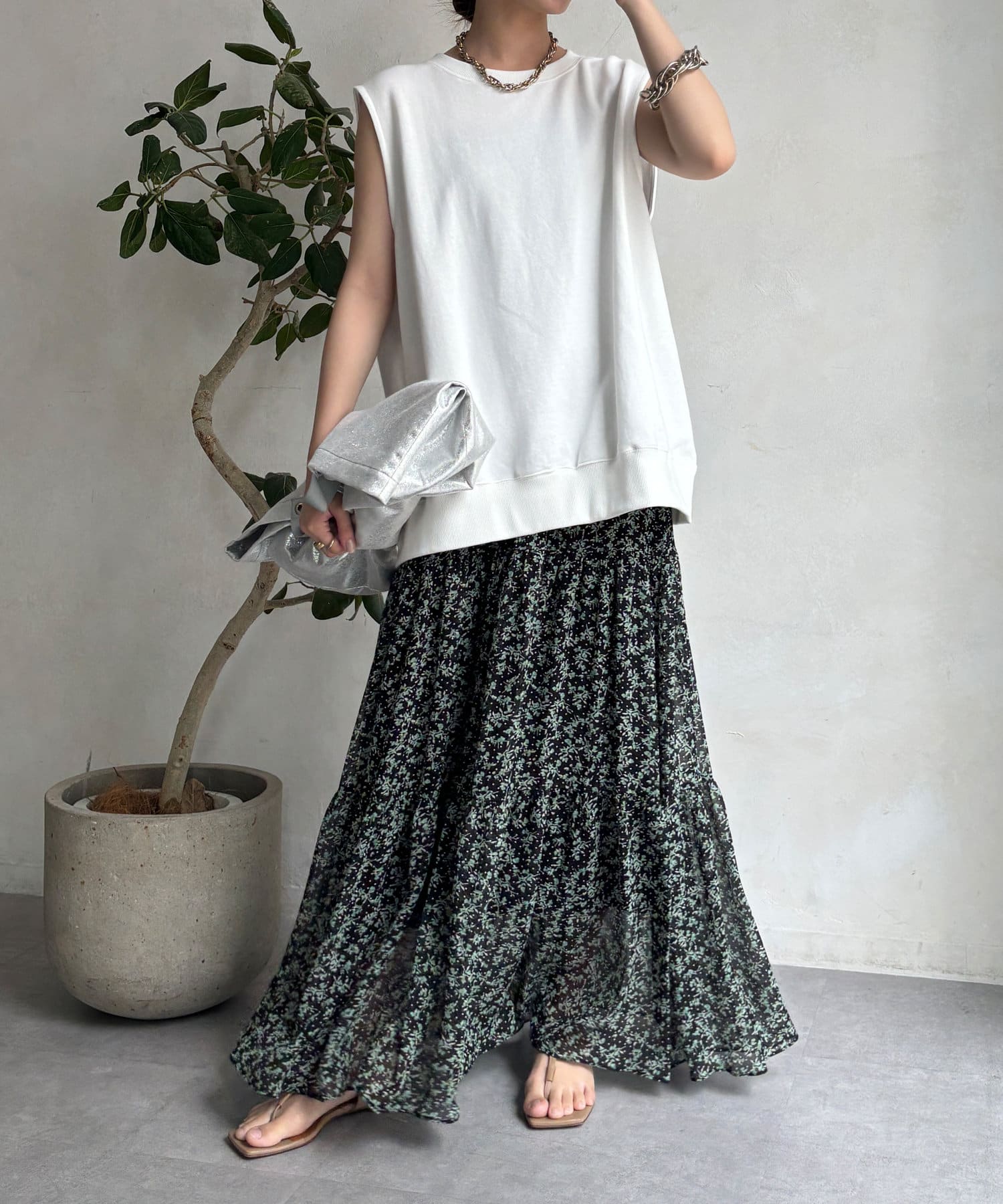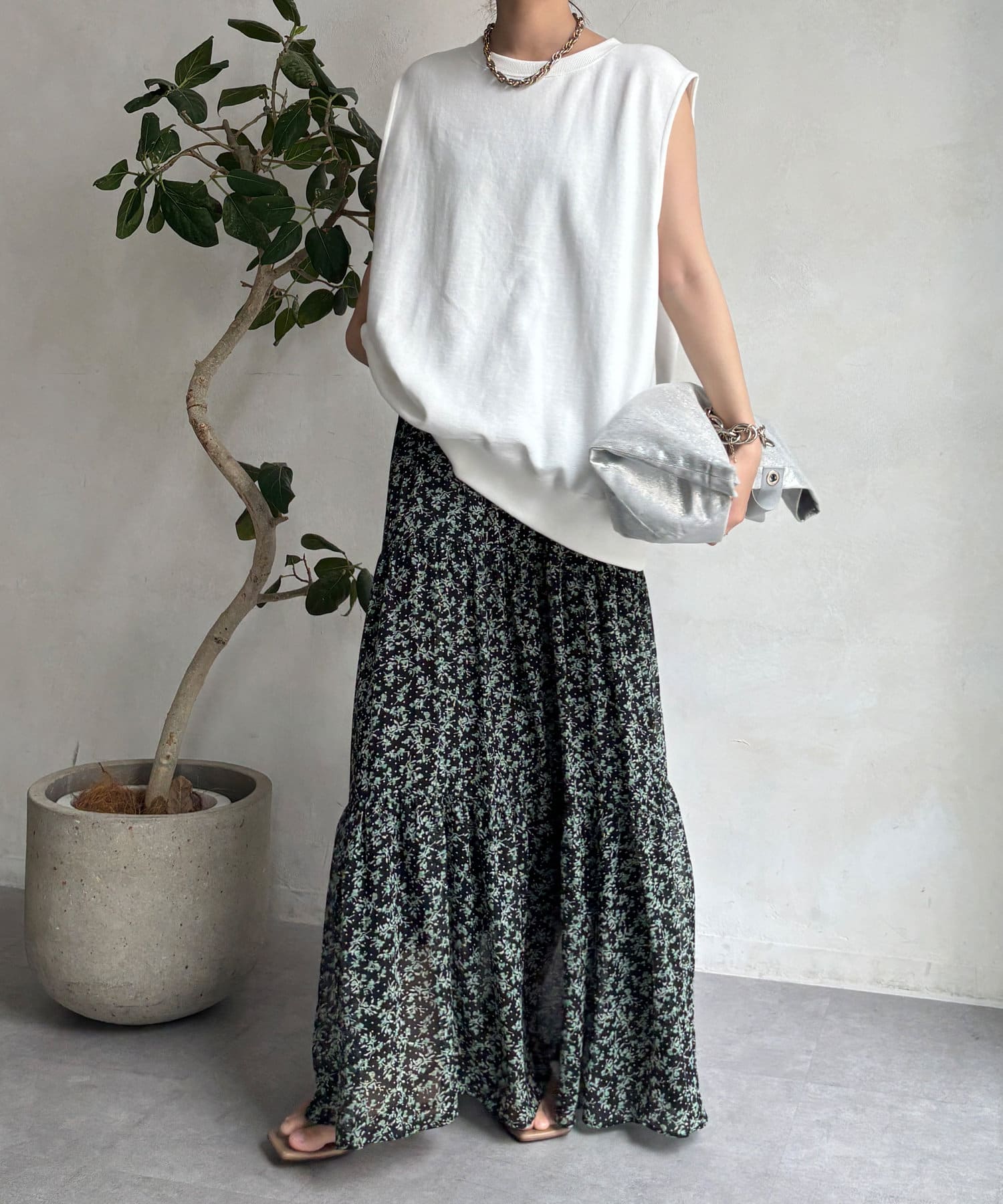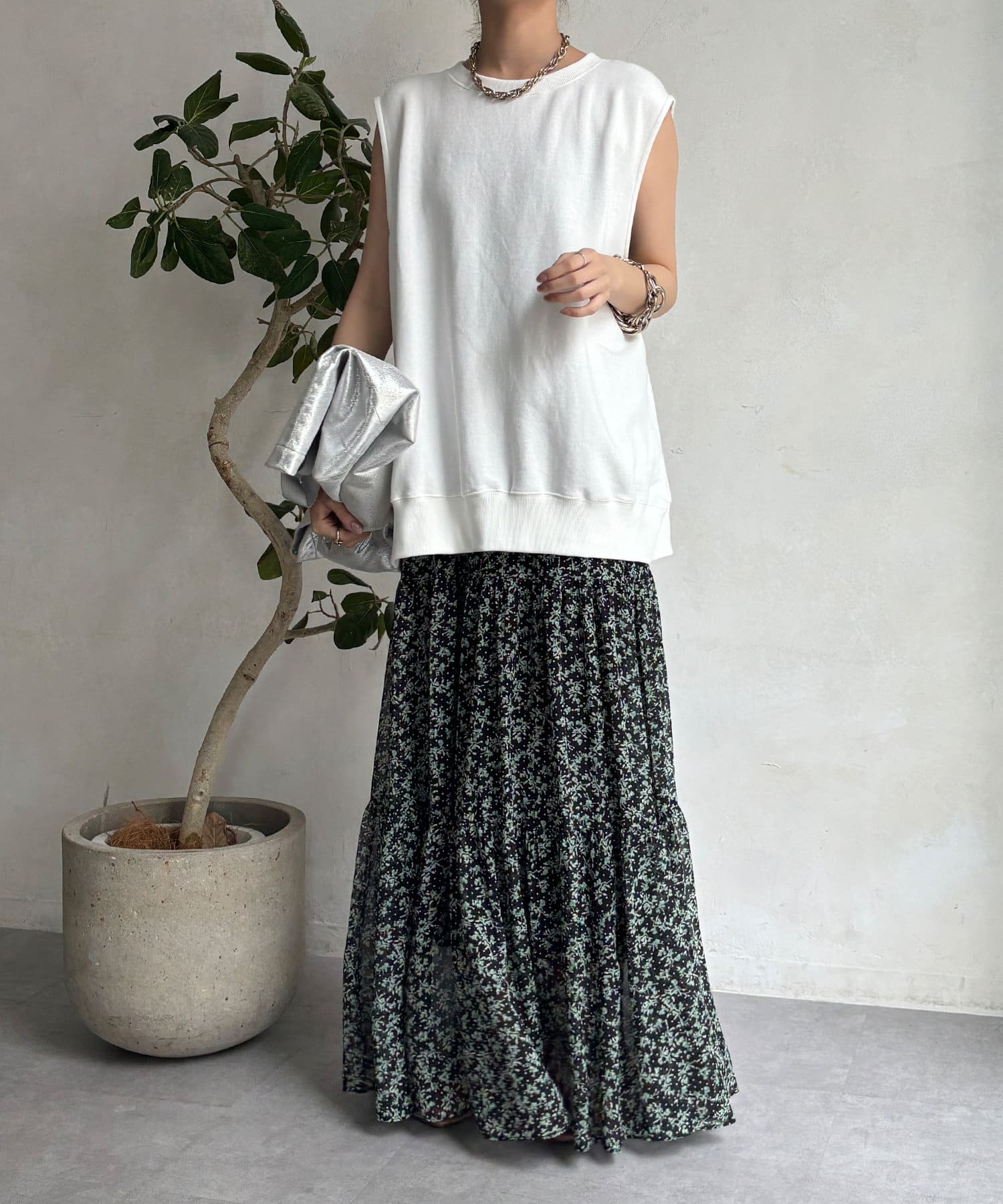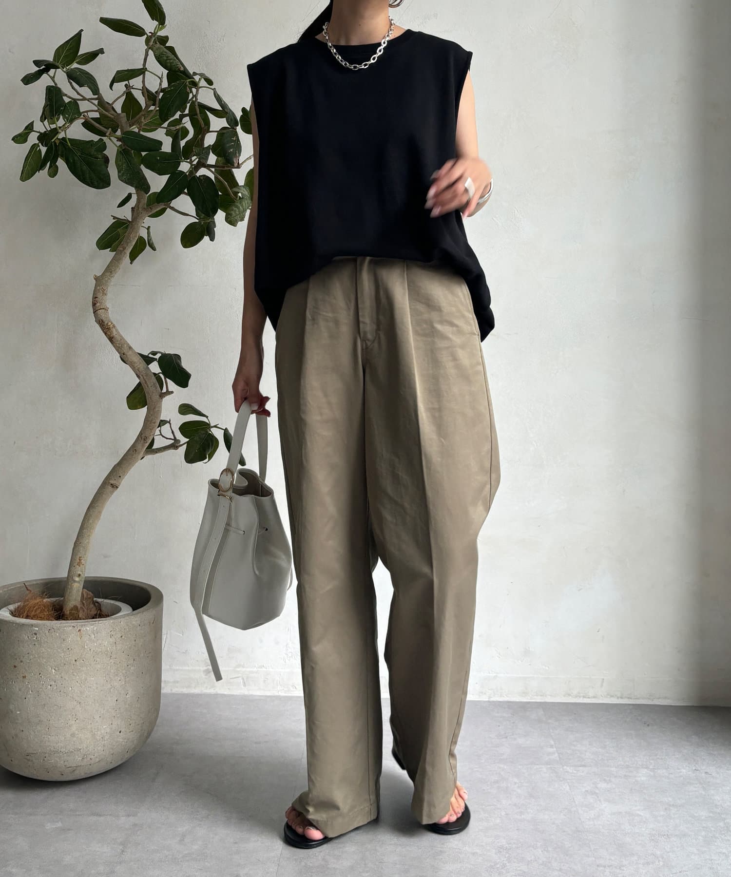 やや長めの丈感に仕上げ、ヒップや腰回りを自然とカバー。