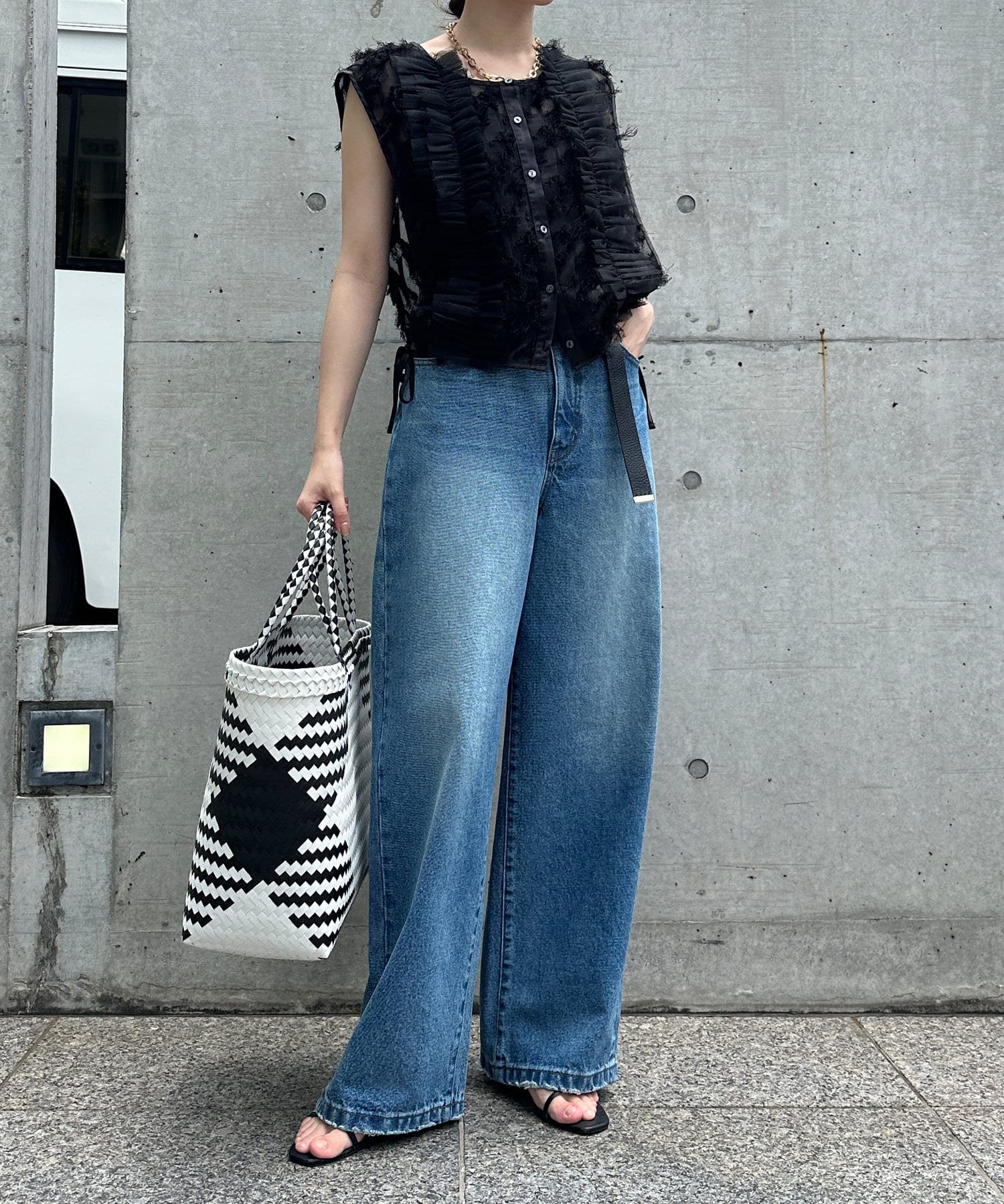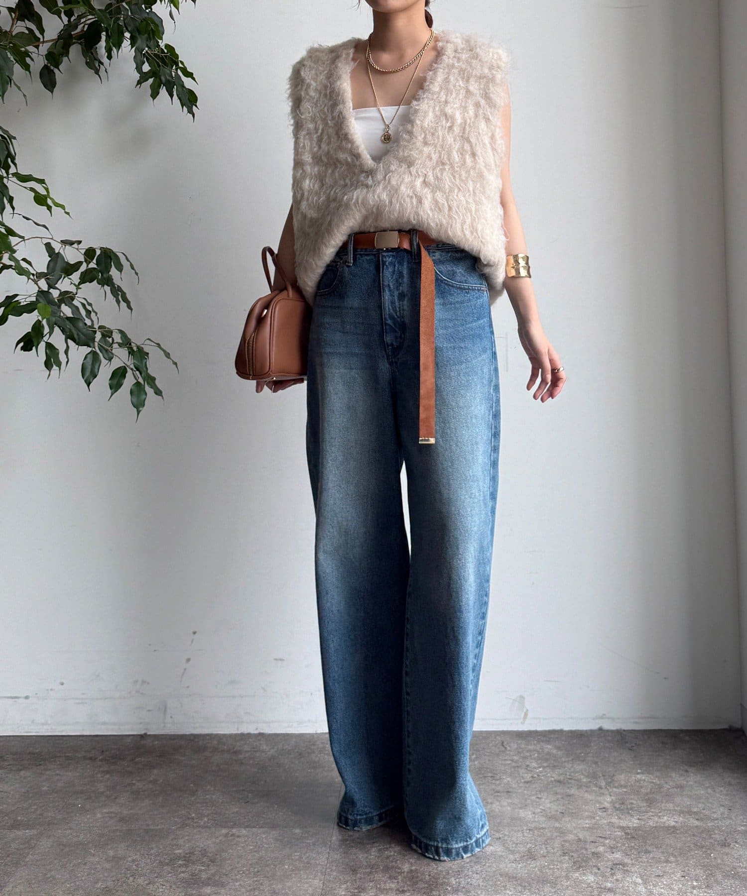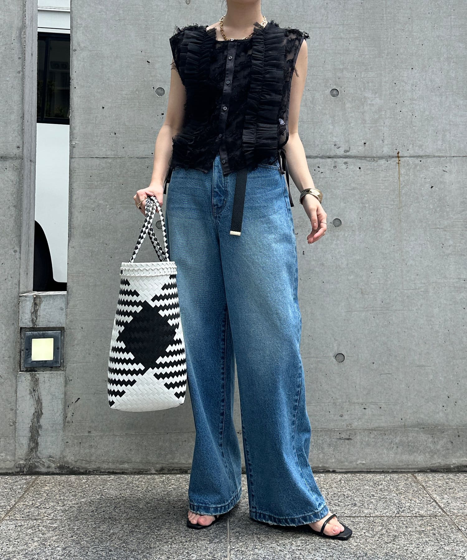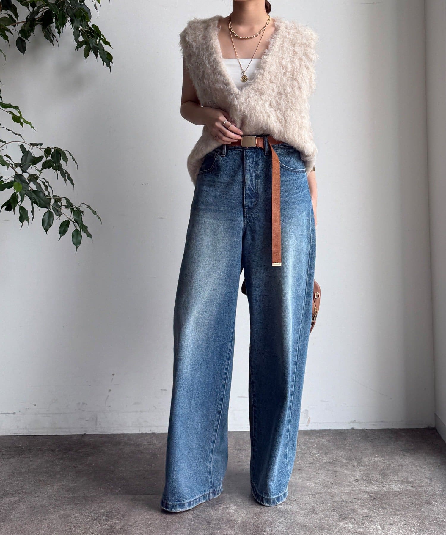 身体のラインを拾わずに、全体的にゆったりとしたシルエットのデニムはいつものコーデをブラッシュアップしてくれます。