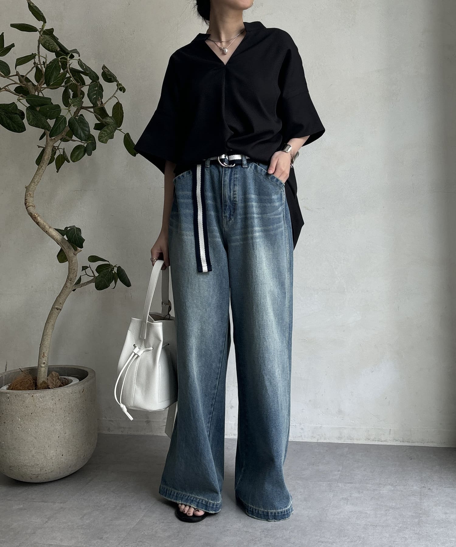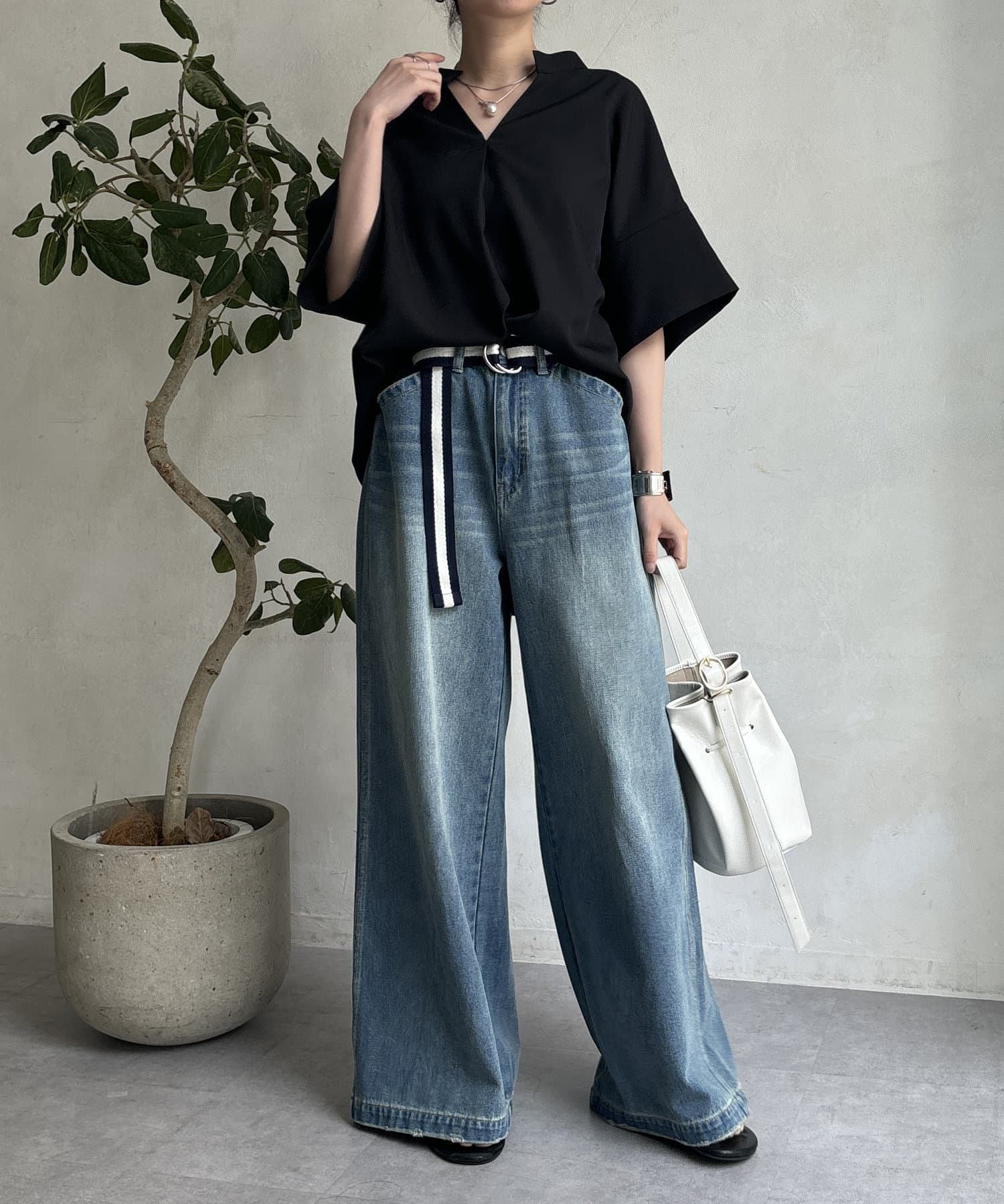 スタイリングにはシンプルにデニムやワイドパンツ合わせがおすすめですよ。