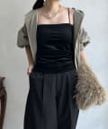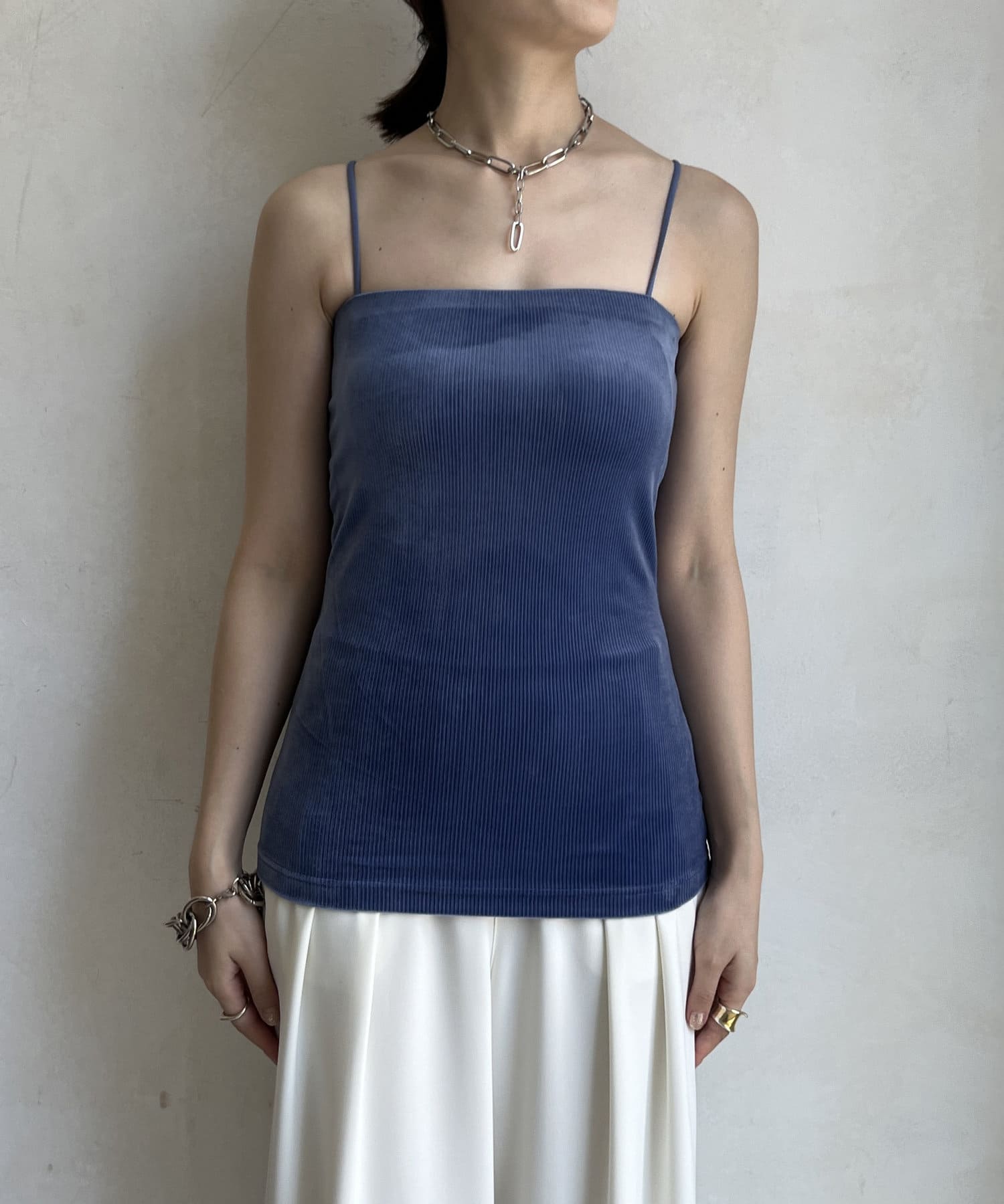 コーデュロイ特有の微光沢感と、生地のの凹凸感がポイントのカップ付きキャミ。